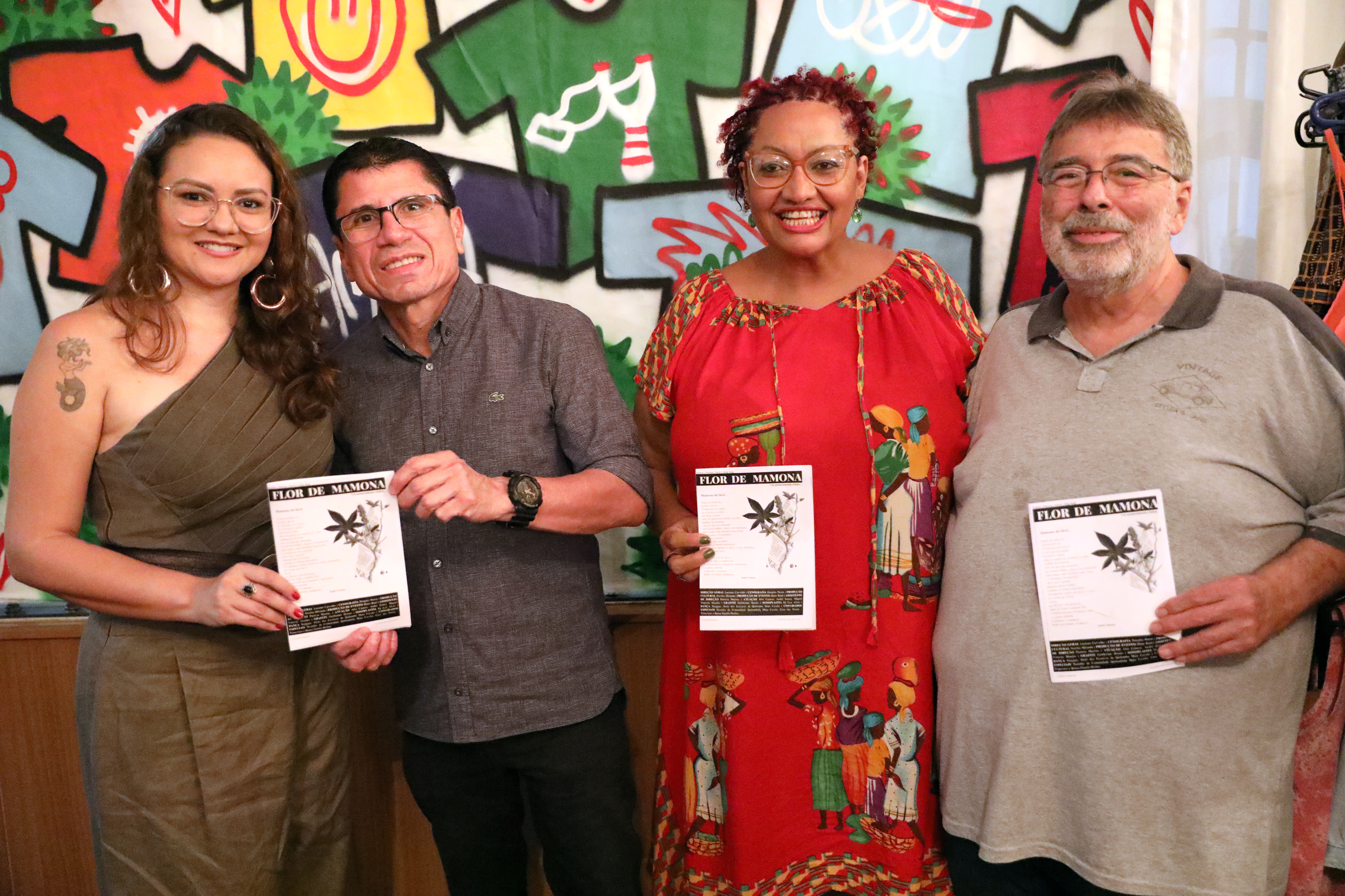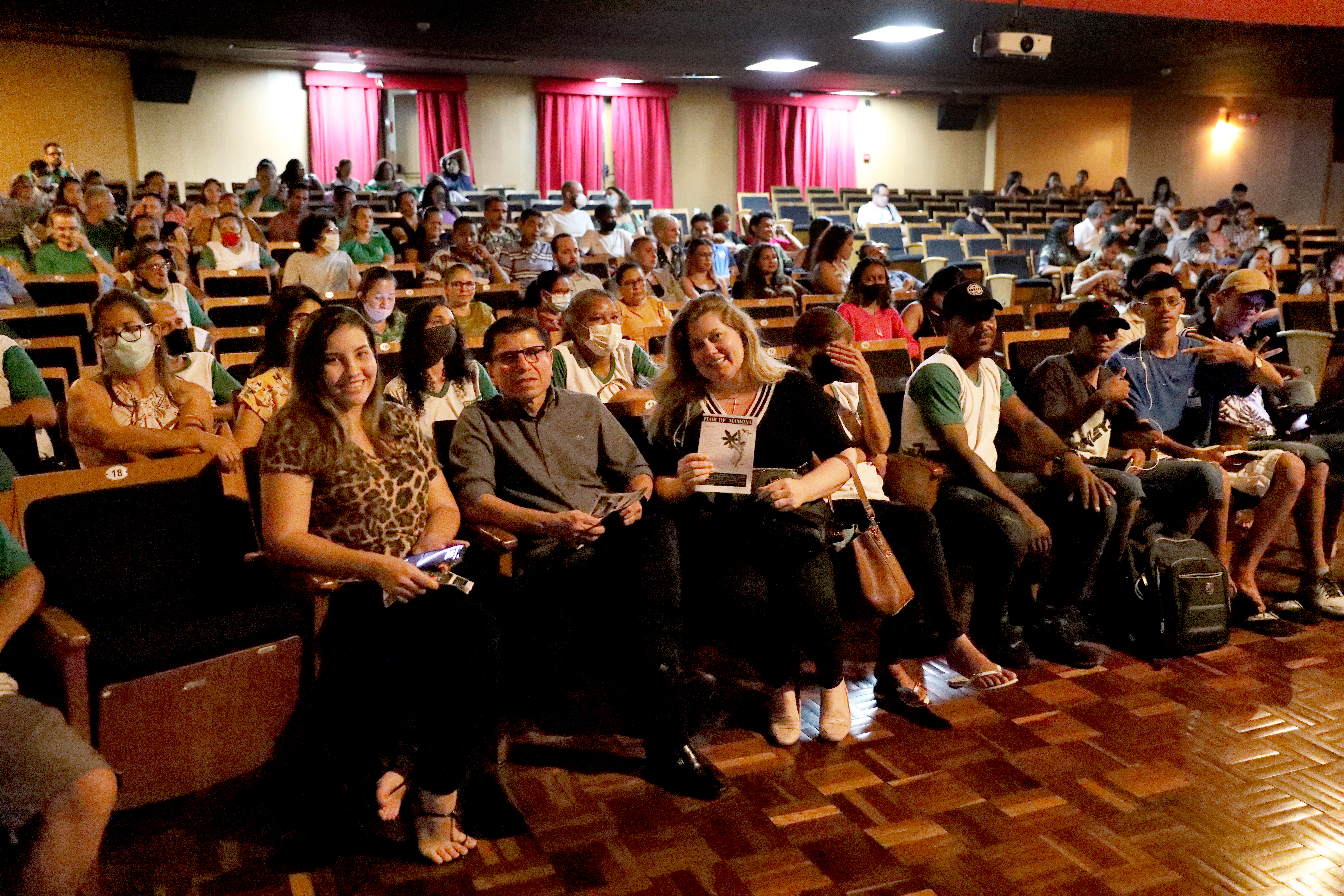 O secretário de Cultura, Esporte e Lazer, Aluízio Leite, prestigiou na noite desta quarta-feira (27), a estreia do espetáculo “Flor de Mamona” do Coletivo Quilombo de Quintal, apresentado no Cine Teatro Cuiabá. As apresentações marcam as comemorações dos 303 anos de Cuiabá.