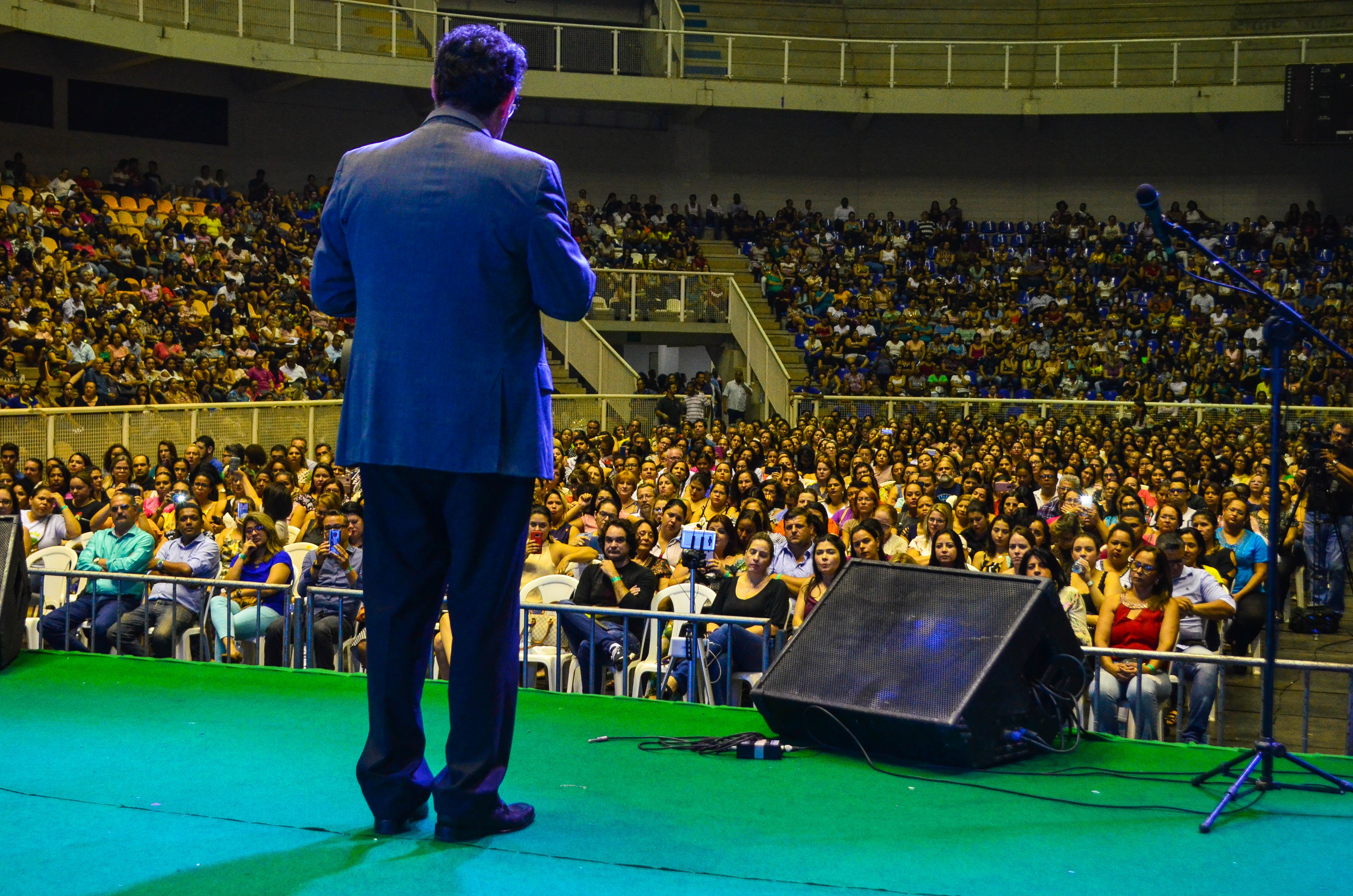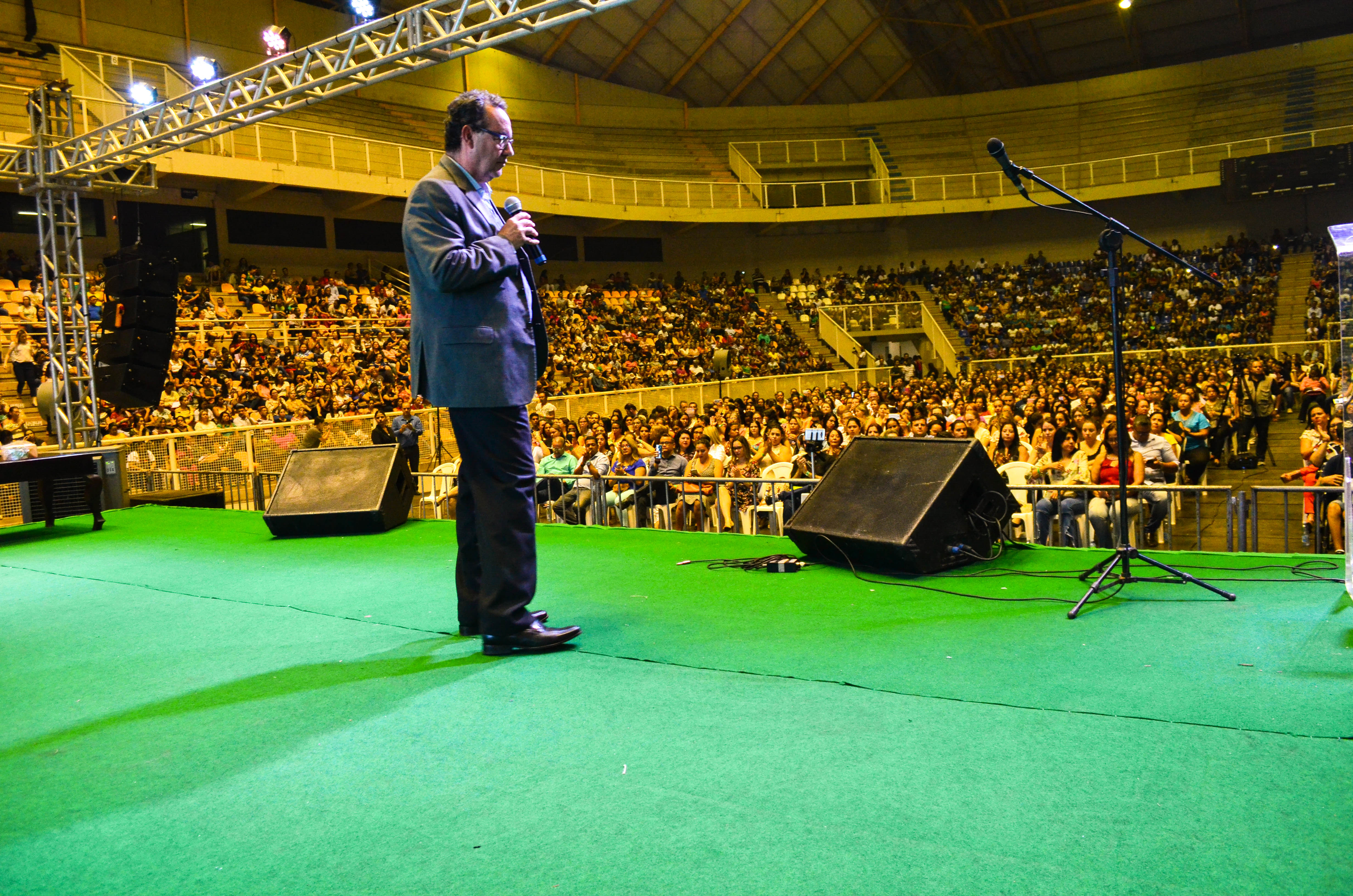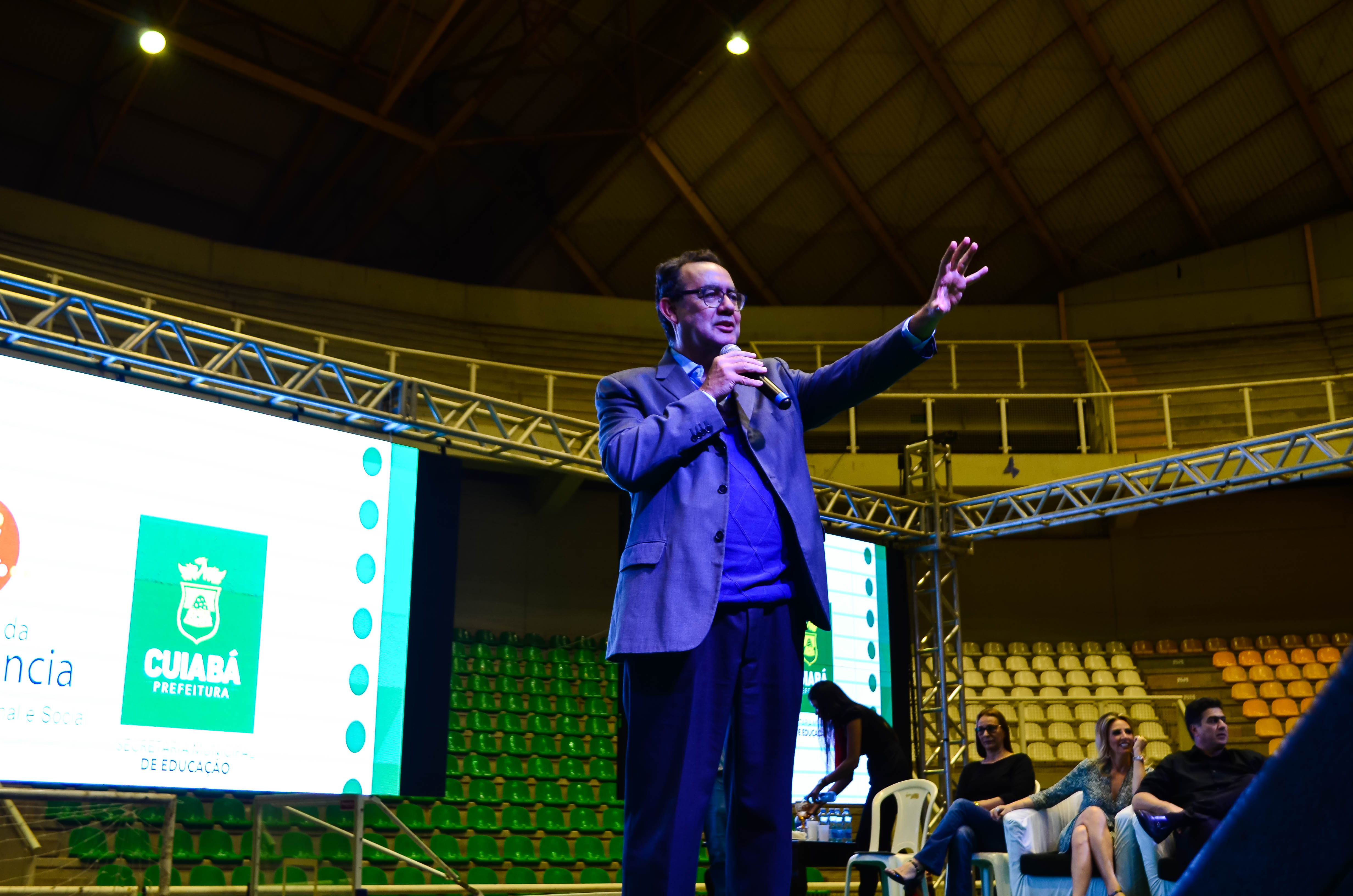Pouco mais de seis mil pessoas lotaram o ginásio Aecim Tocantins na noite de quarta-feira (12) para assistir a palestra ministrada pelo professor e escritor Augusto Cury. O tema abordado por ele foi ‘Inteligência Emocional como um fundamento da Educação Humanizadora de Cuiabá’. Sua metodologia de ensino é aplicada em oito escolas municipais de Cuiabá.