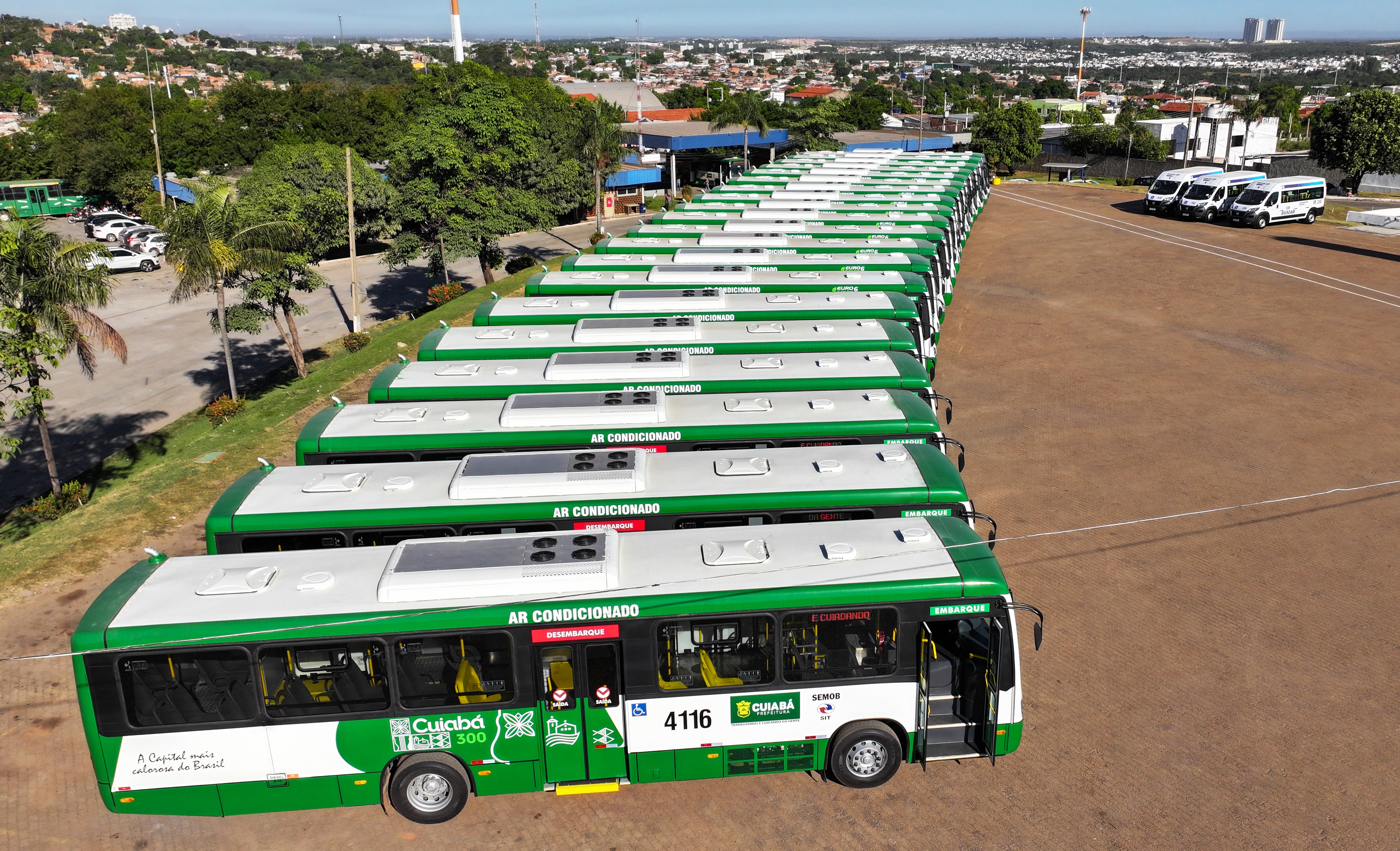 Cuiabá é a única capital do país a ter 90% da frota operacional com ar-condicionado. A informação foi divulgada na manhã desta sexta-feira (7) pelo prefeito da capital mato-grossense, Emanuel Pinheiro, durante o ato de entrega de mais 22 novos ônibus e três vans para o atendimento exclusivo do programa Buscar. A frota de transporte público na capital atende a cerca de 200 mil pessoas diariamente. São 304 veículos operacionais rodando todos os dias.