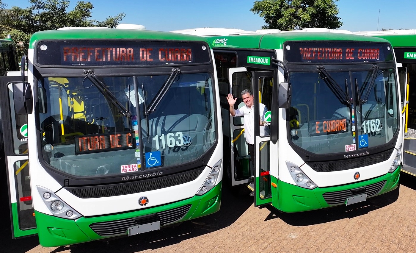 “São trinta e oito já entregues. E nesse mês de junho, até o início de julho, eu entrego mais cerca de trinta ônibus zero quilômetro, todos com ar-condicionado. Sabe o que é isso, gente? É meu compromisso com você. Eu fiz esse compromisso com você, com a população cuiabana. Com os milhares de usuários do transporte coletivo”, disse o prefeito.