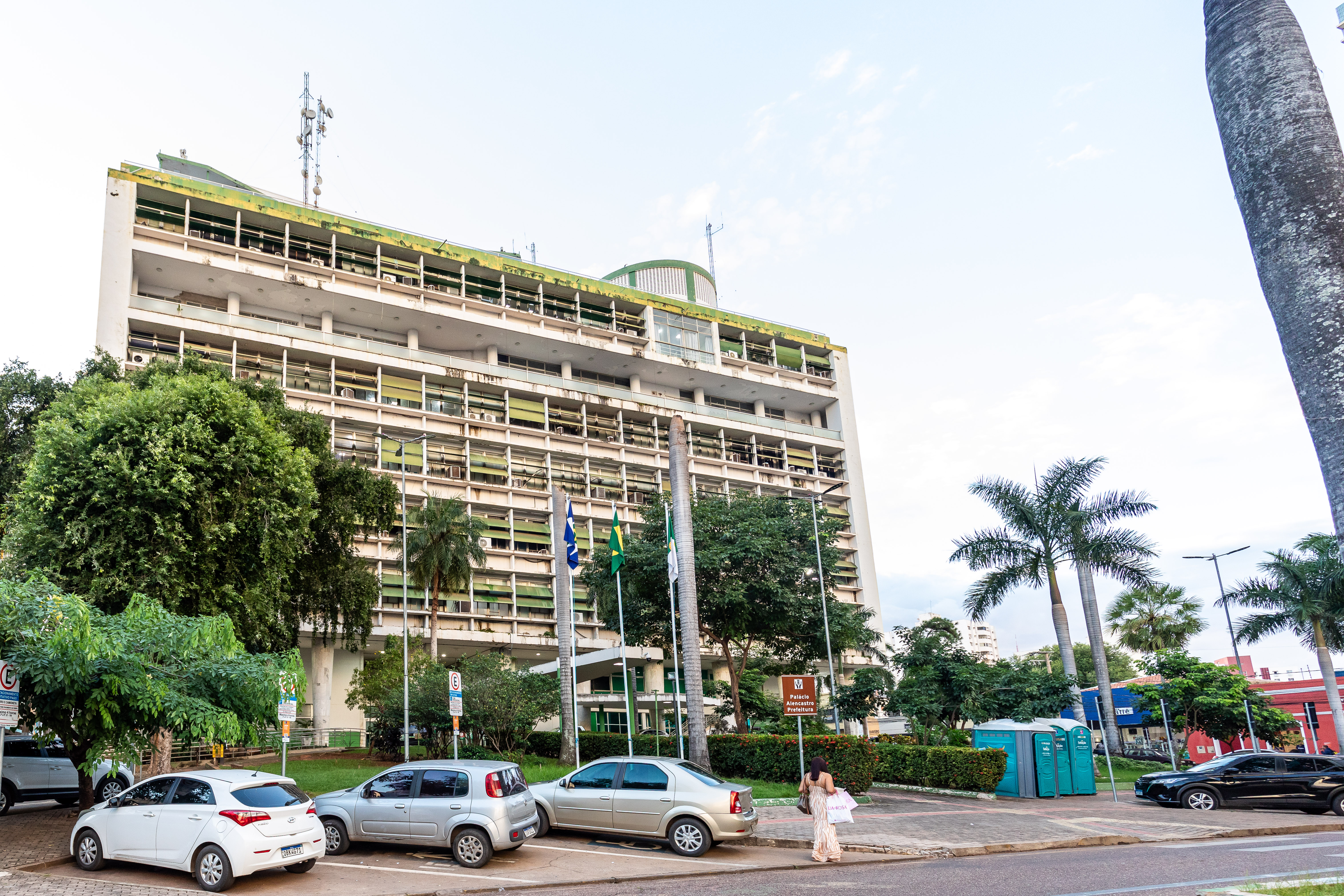 A imagem mostra a fachada da Prefeitura de Cuiabá, que também abriga outras secretarias municipais, entre elas, a de Meio Ambiente.
