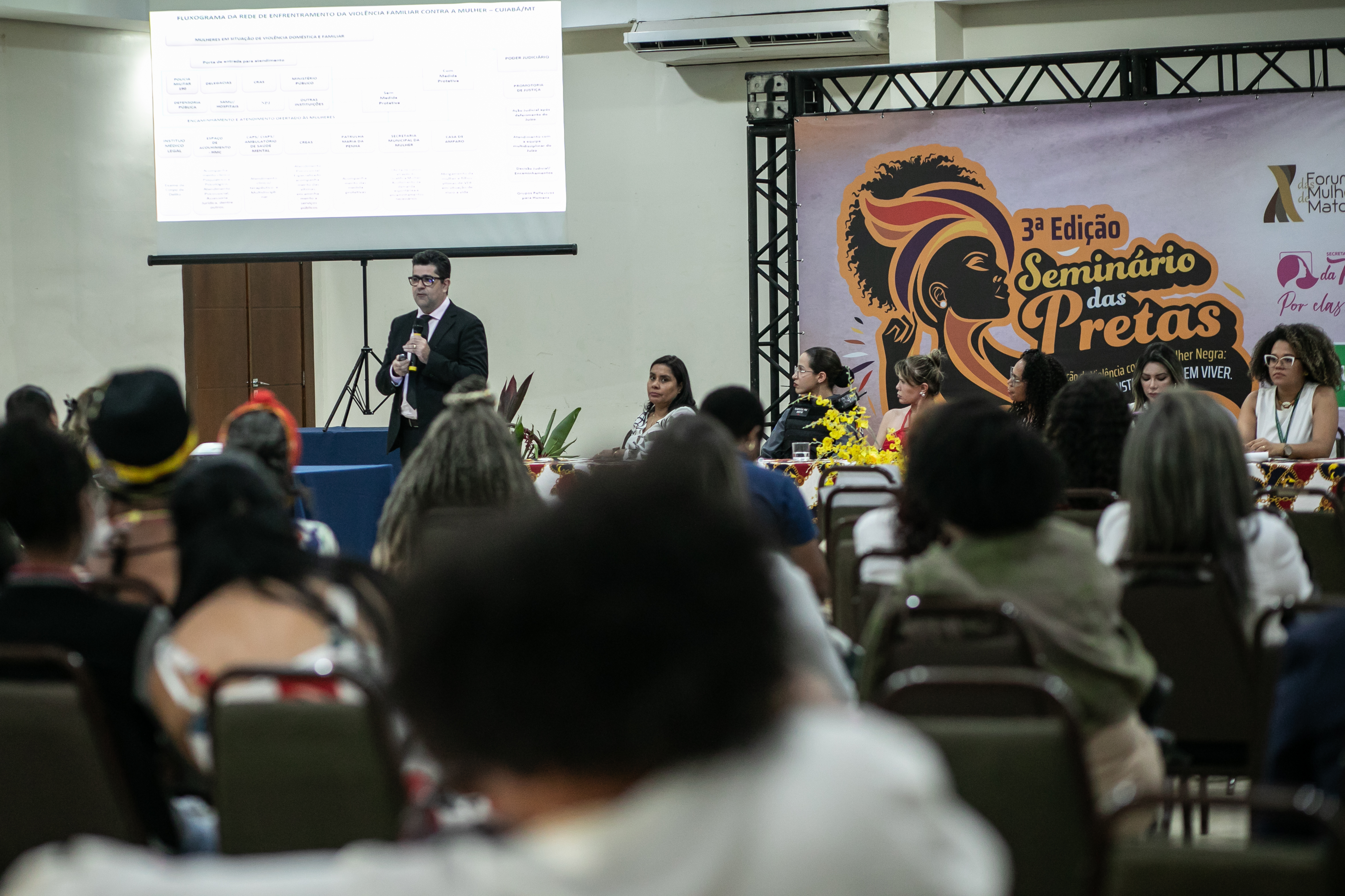 Além de estimular a reflexão social sobre os desafios contínuos enfrentados pela população feminina negra, o seminário buscou debater os altos índices de violência doméstica e feminicídio que afetam esse grupo.
