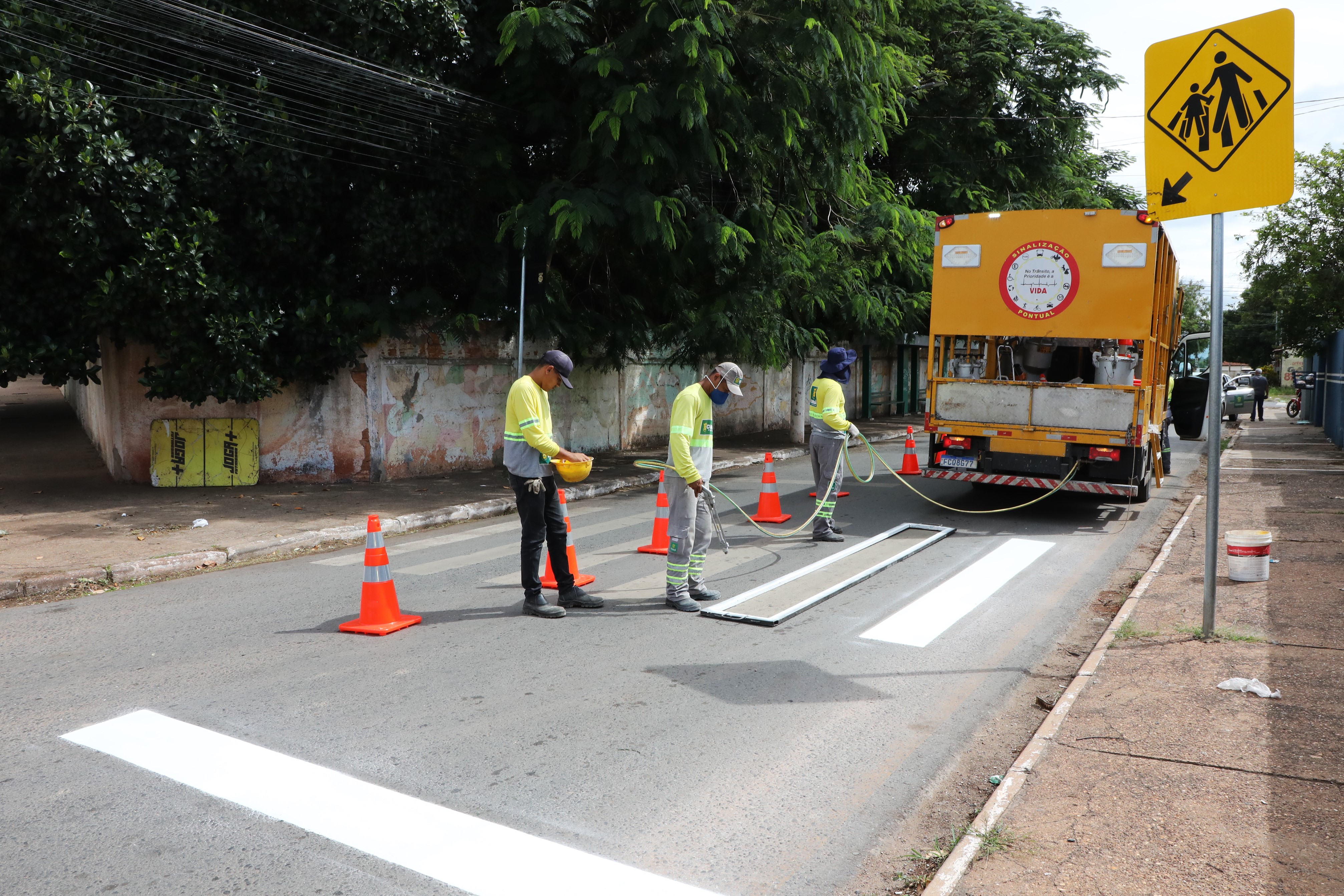 Com o retorno às aulas, a Secretaria de Mobilidade Urbana tem reforçado ações para revitalizar faixas de pedestres, aperfeiçoando a sinalização nas proximidades das escolas municipais e estaduais.