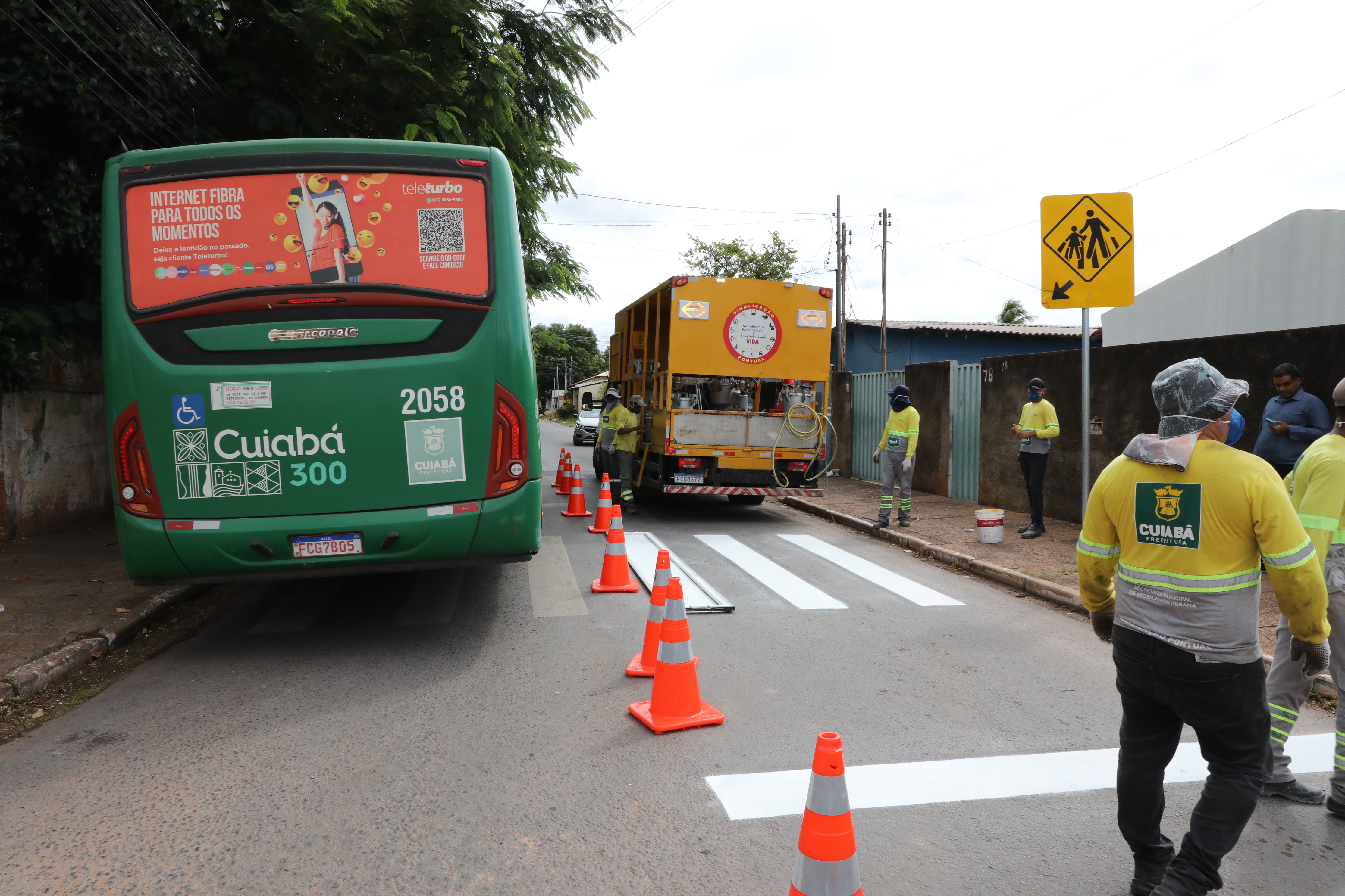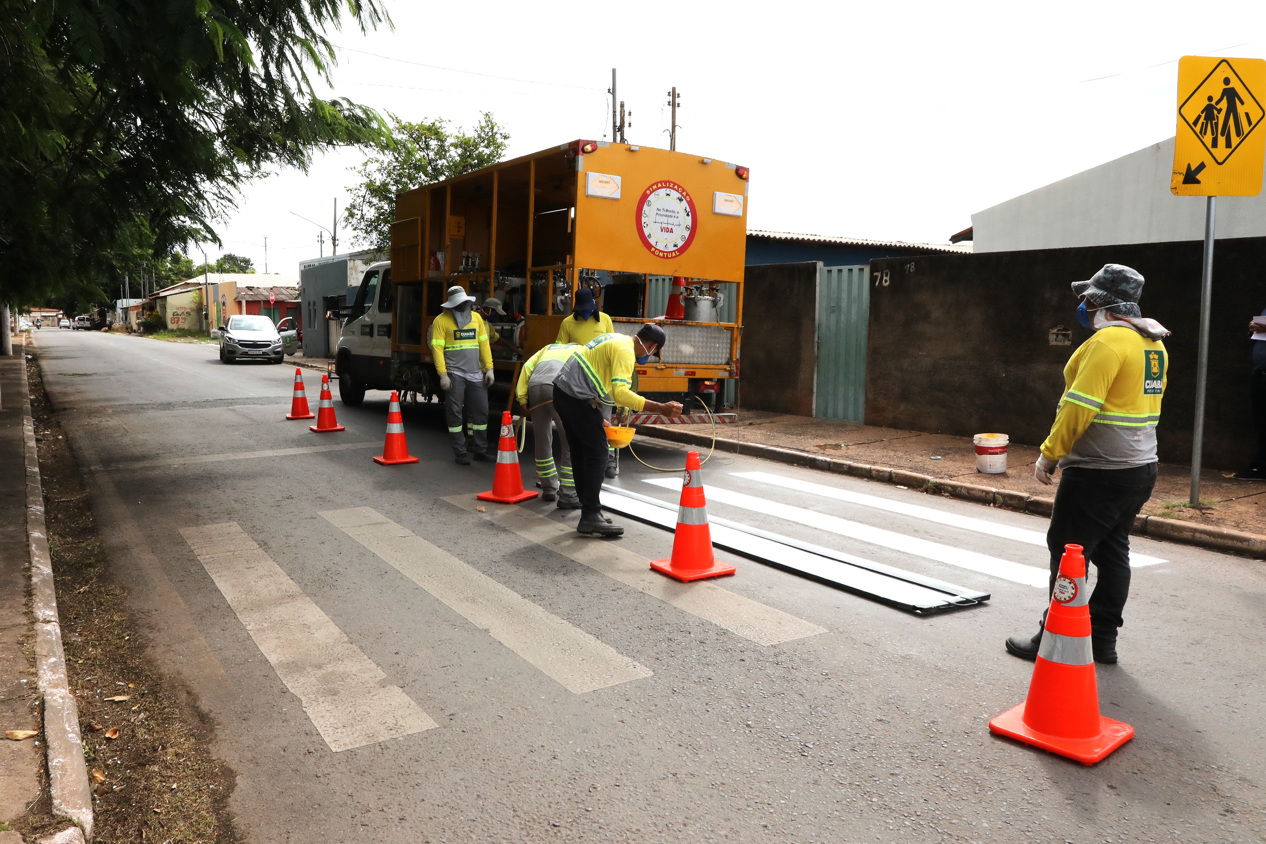 Na manhã de quarta-feira (12), houve a pintura de uma faixa de pedestre em frente ao CEIC (Centro Educacional Infantil) Rosângela Campos, localizado na Rua 8 de maio, nº 123 do bairro Pedregal.
