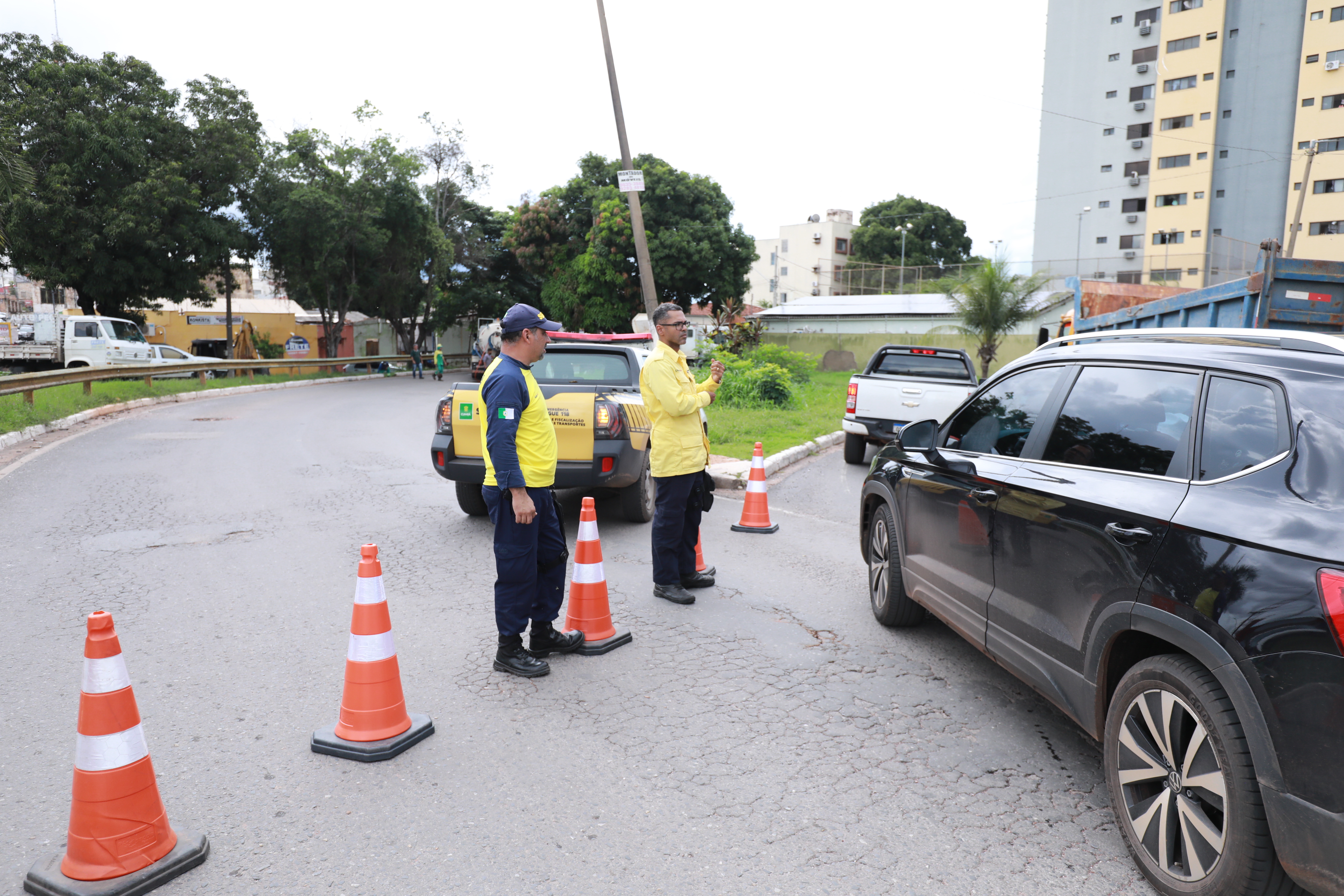 A Prefeitura de Cuiabá, por meio da Secretaria de Mobilidade Urbana (Semob), orienta os motoristas sobre as rotas alternativas durante a interdição na Avenida Miguel Sutil, próxima à YAKAO distribuidora.