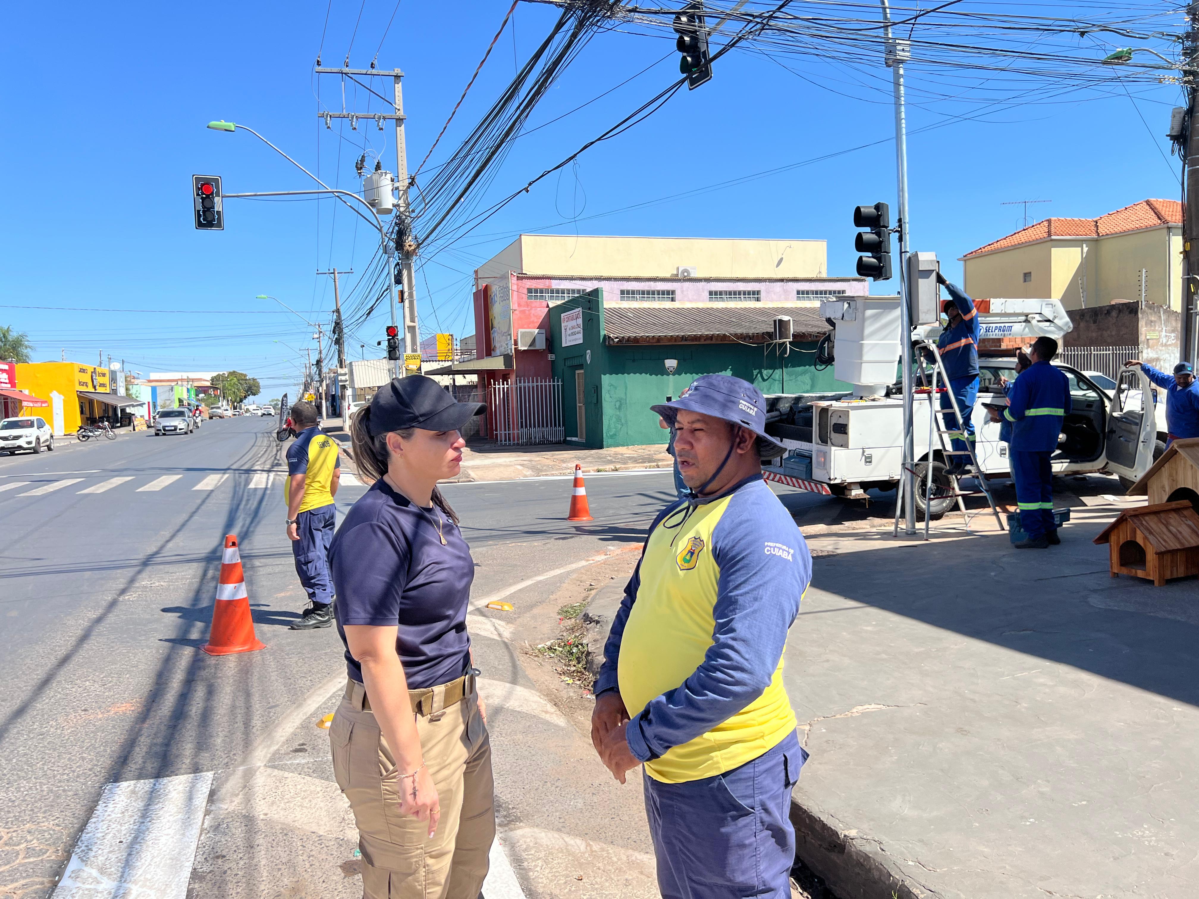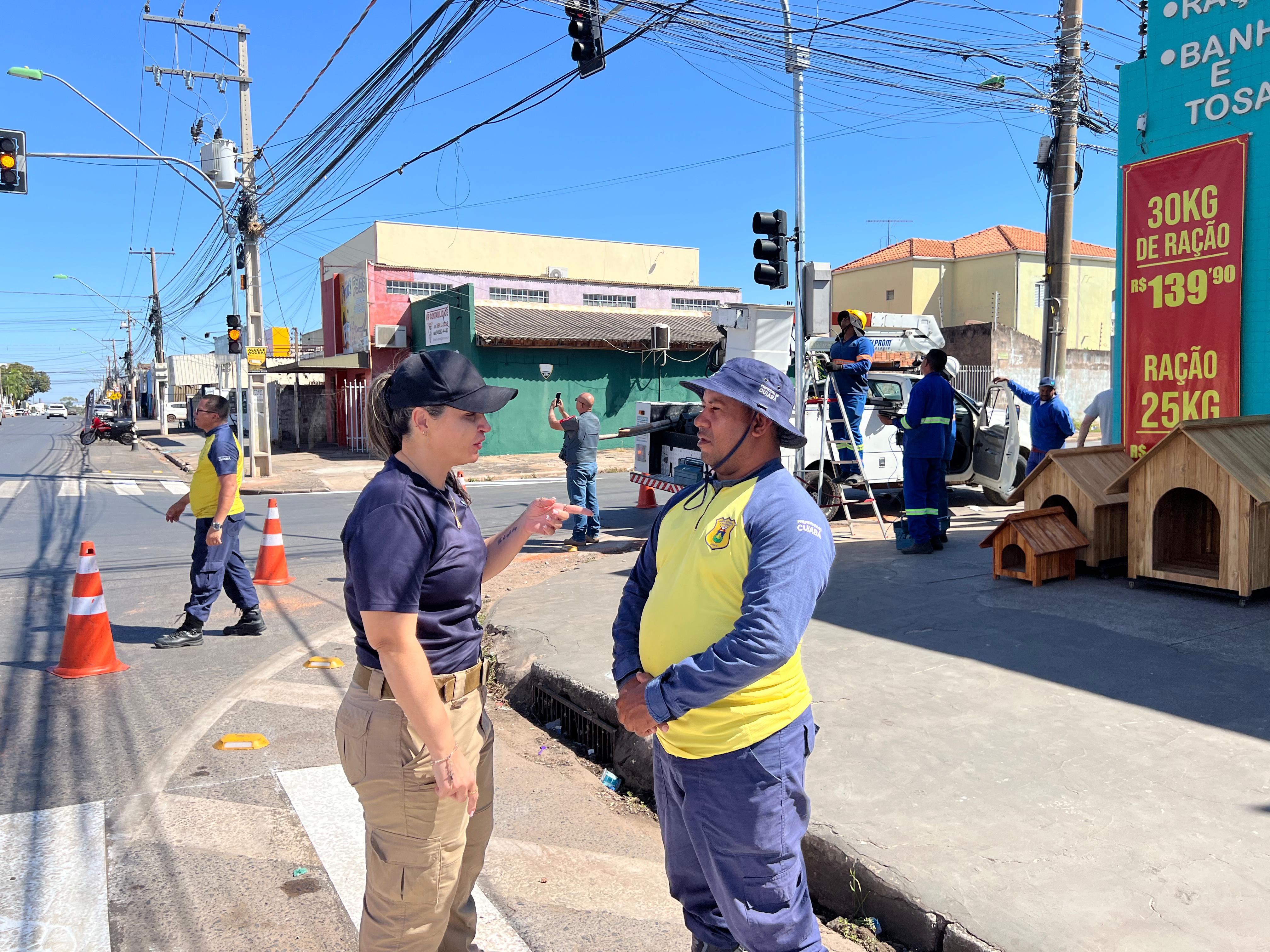 A secretária conferiu in loco o funcionamento do semáforo ainda nas primeiras horas após a instalação, conversou com a equipe e observou a conduta de quem passava pelo trajeto.