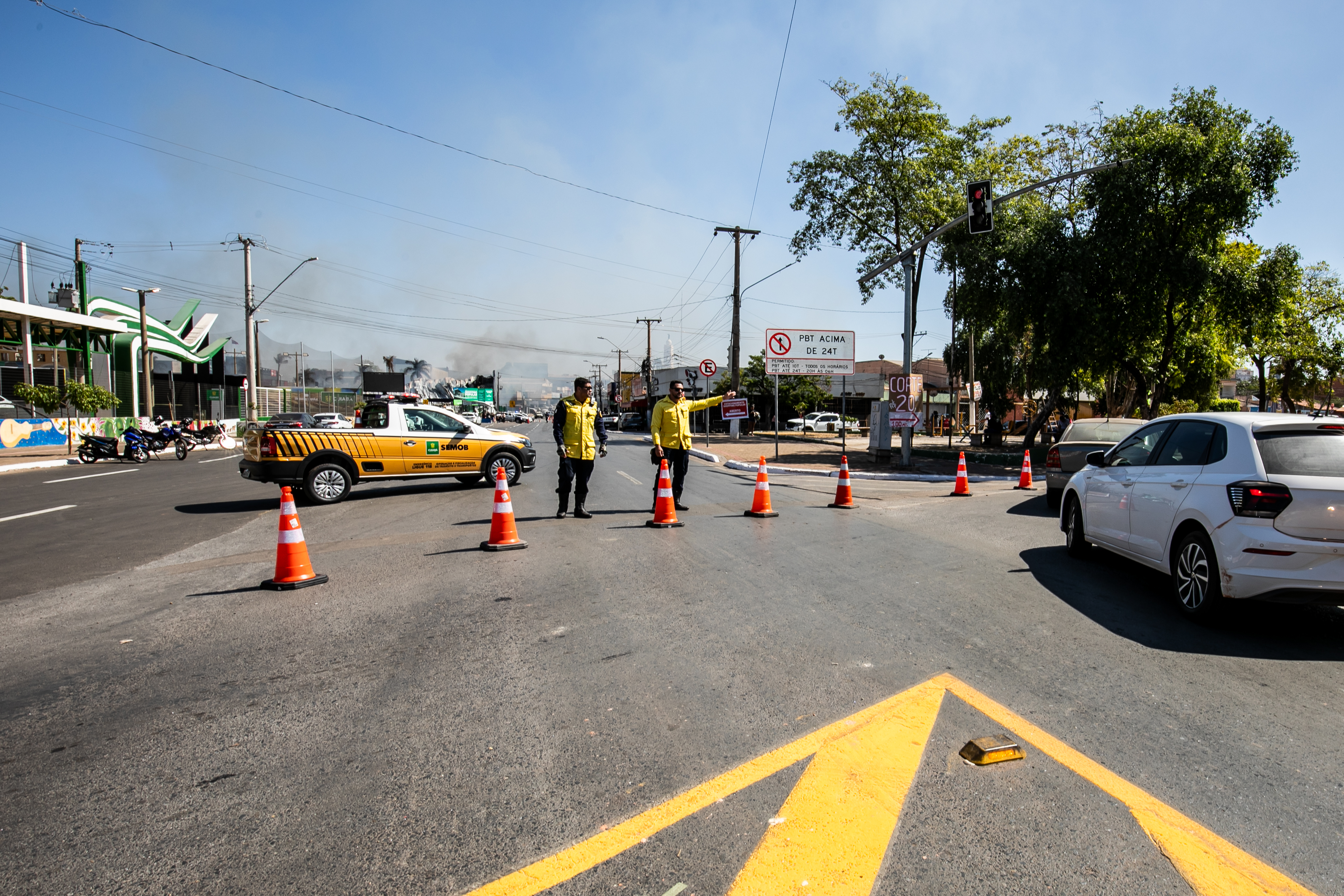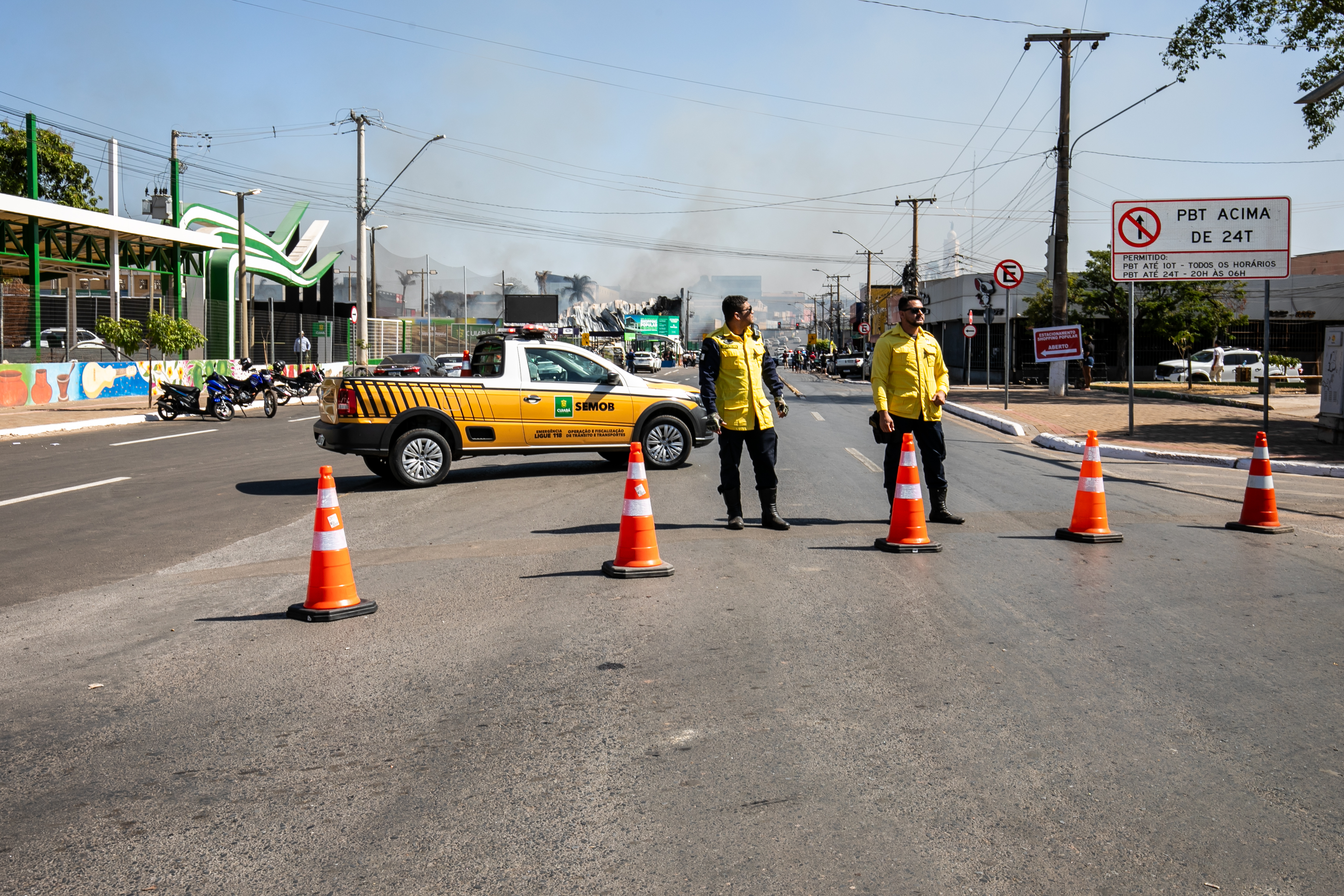 Semob interdita vias próximas ao Shopping Popular em ação de suporte ao Corpo de Bombeiros
