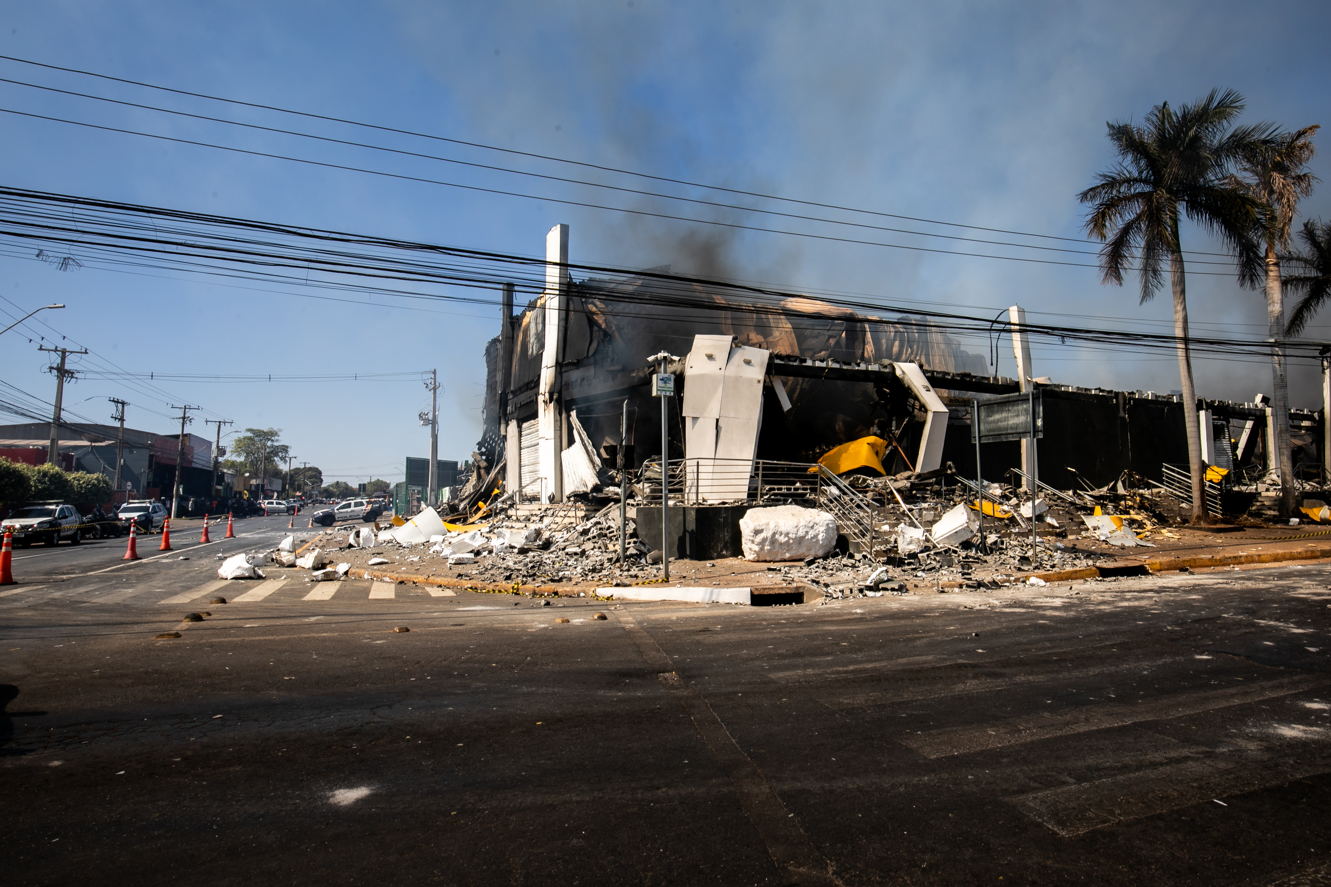 Devido ao incêndio que atingiu o Shopping Popular de Cuiabá, na madrugada desta segunda-feira (15), a Secretaria de Mobilidade Urbana de Cuiabá, realizou a interdição de algumas ruas próximas ao estabelecimento comercial.