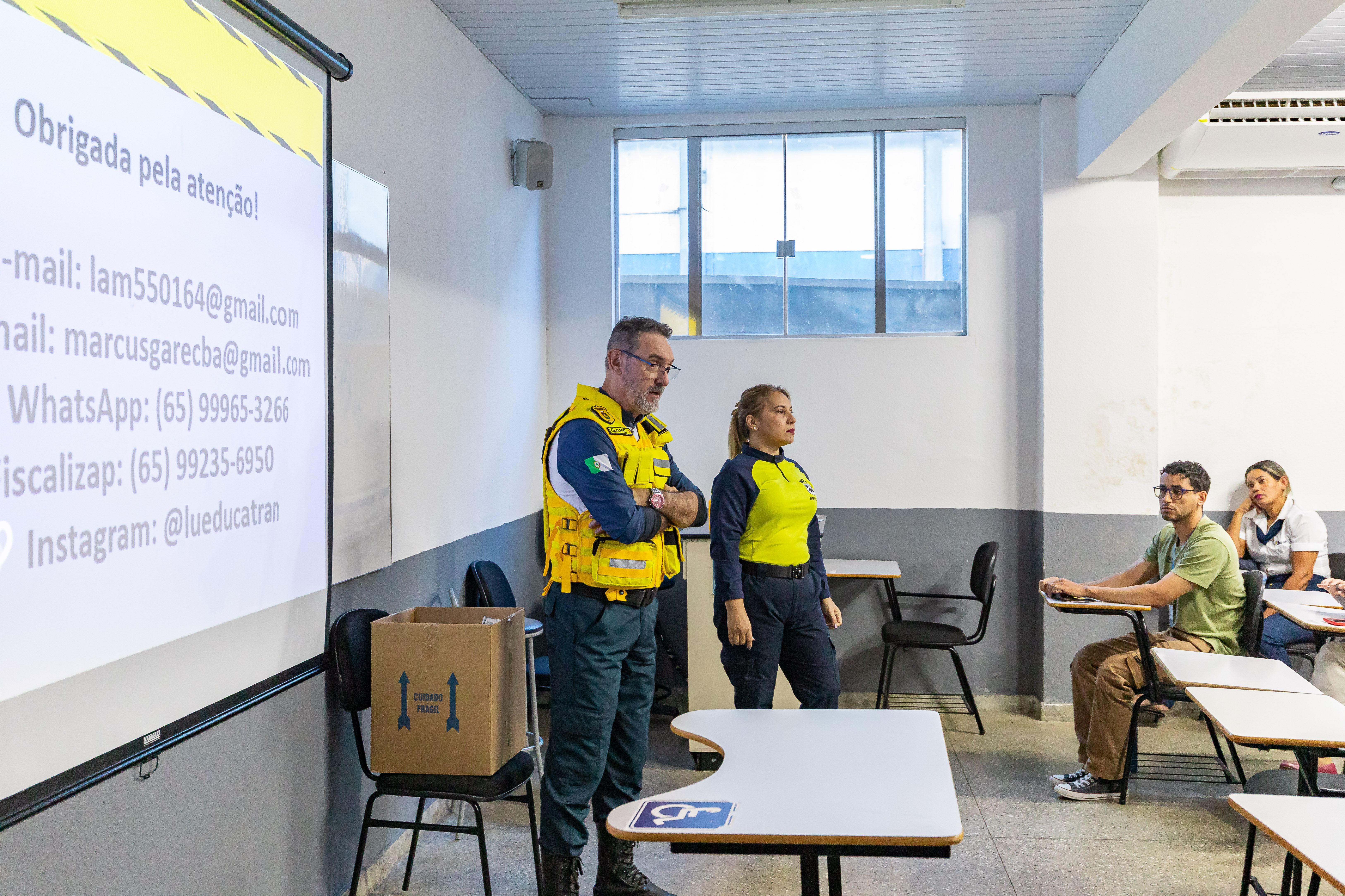 A Secretaria Municipal de Mobilidade Urbana (Semob) promoveu, nesta quarta-feira (25), uma palestra para funcionários da Universidade de Cuiabá (Unic), com o tema “Sinistro de Percurso”. A ação faz parte de uma série de atividades educativas que buscam conscientizar sobre a importância da segurança no trânsito e da direção defensiva. O assunto despertou a atenção, e praticamente os 60 convidados marcaram presença.