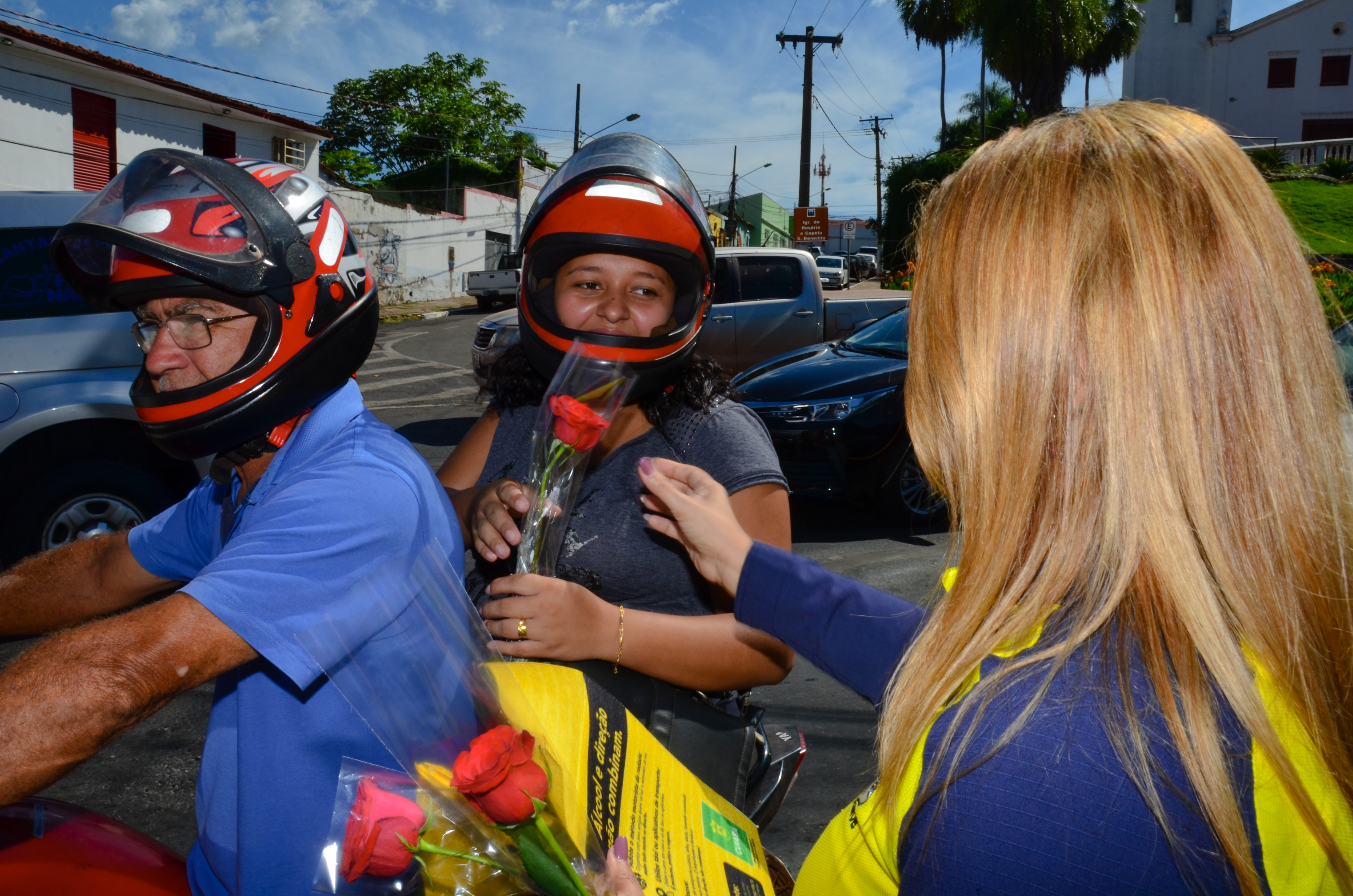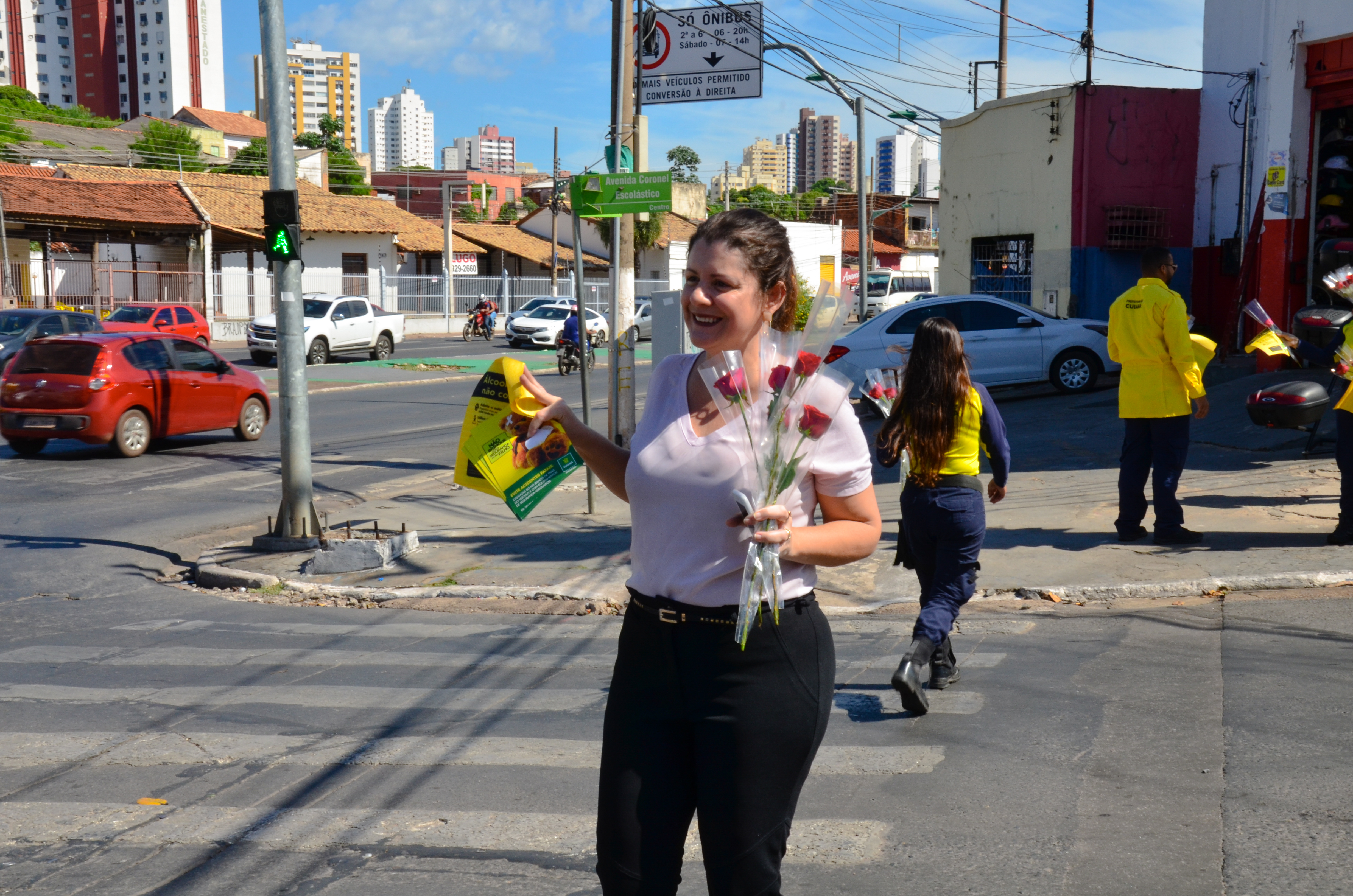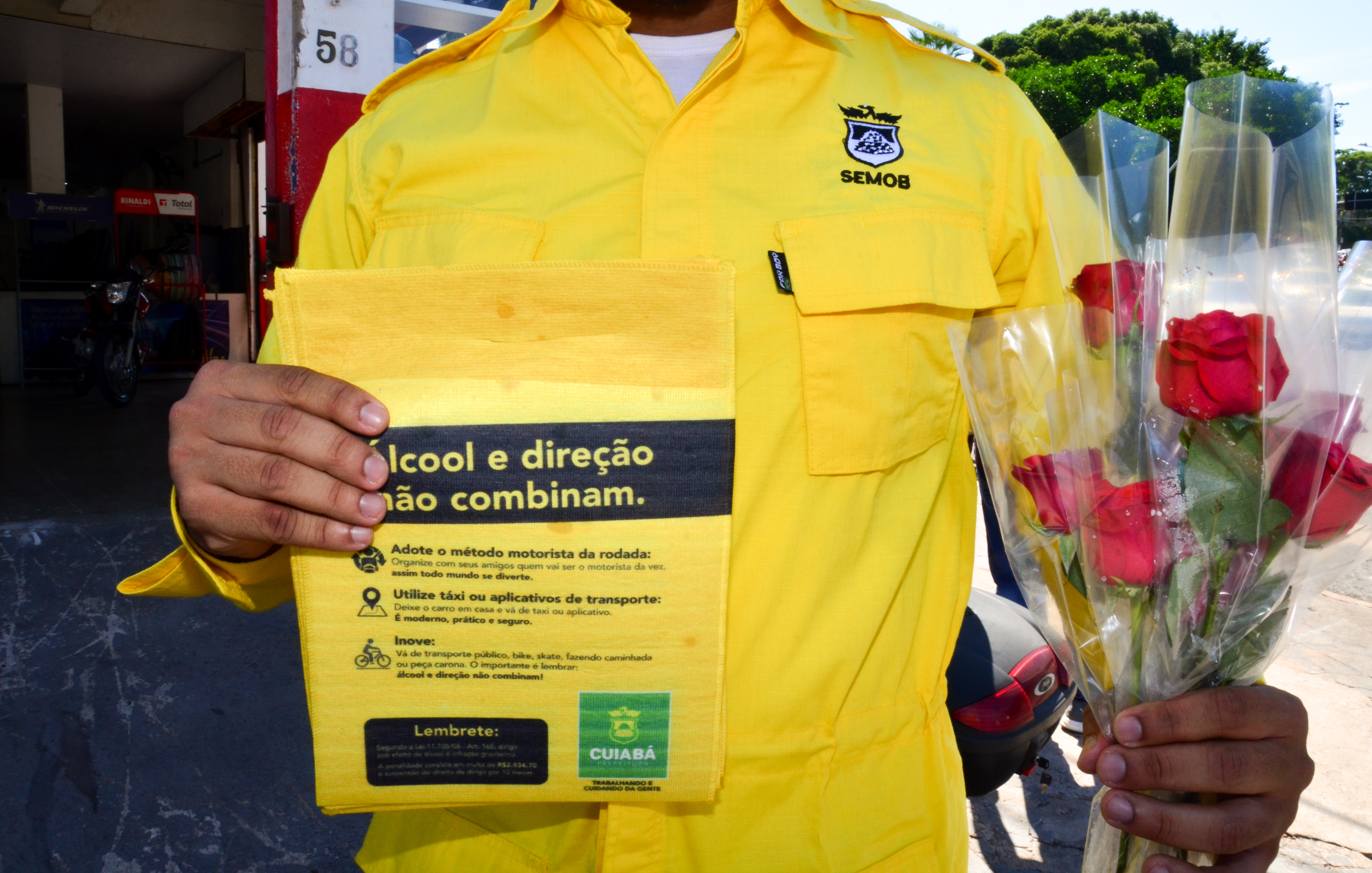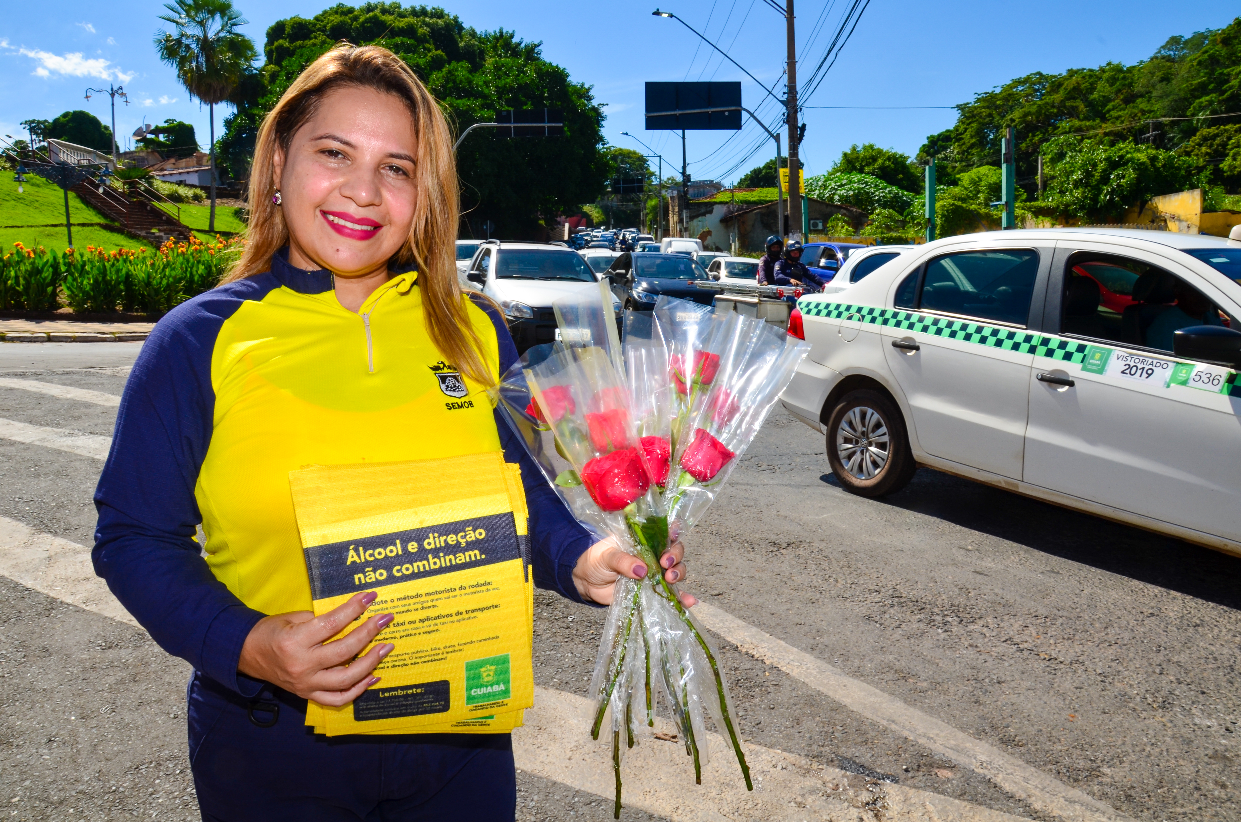 Além da distribuição de botões de rosas vermelhas para condutoras e pedestres, a equipe da Secretaria realizou a entrega de panfletos e prestou orientações sobre os cuidados a serem seguidos no trânsito.