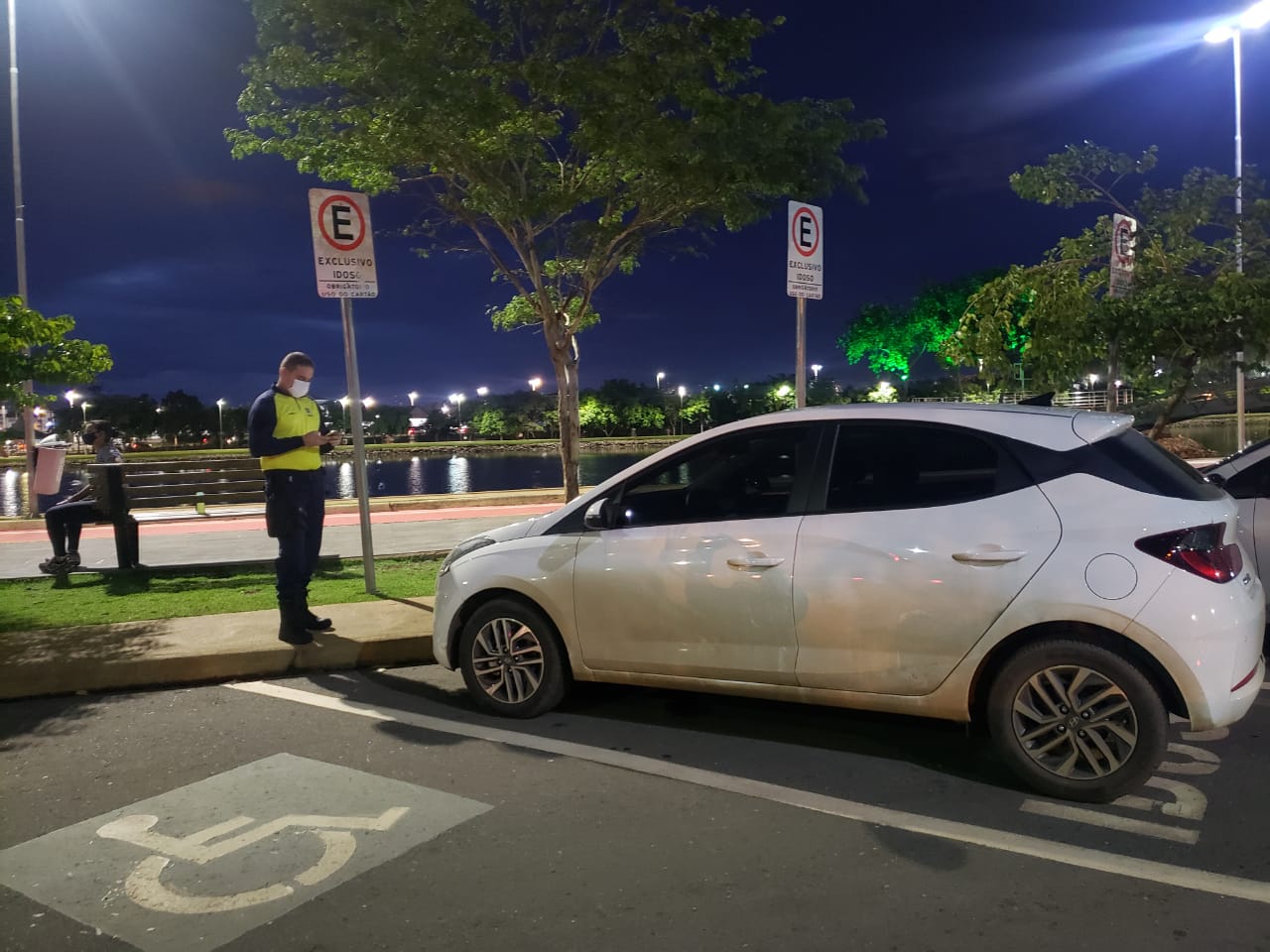 Os agentes realizaram na noite dessa segunda-feira (15), uma 'blitz' nos parques, Centro e principais avenidas da capital. Estacionar em vagas reservadas aos deficientes e idosos sem credencial pode resultar na remoção do veículo, 7 pontos na Carteira Nacional de Habilitação (CNH) e R$293,47 de multa.