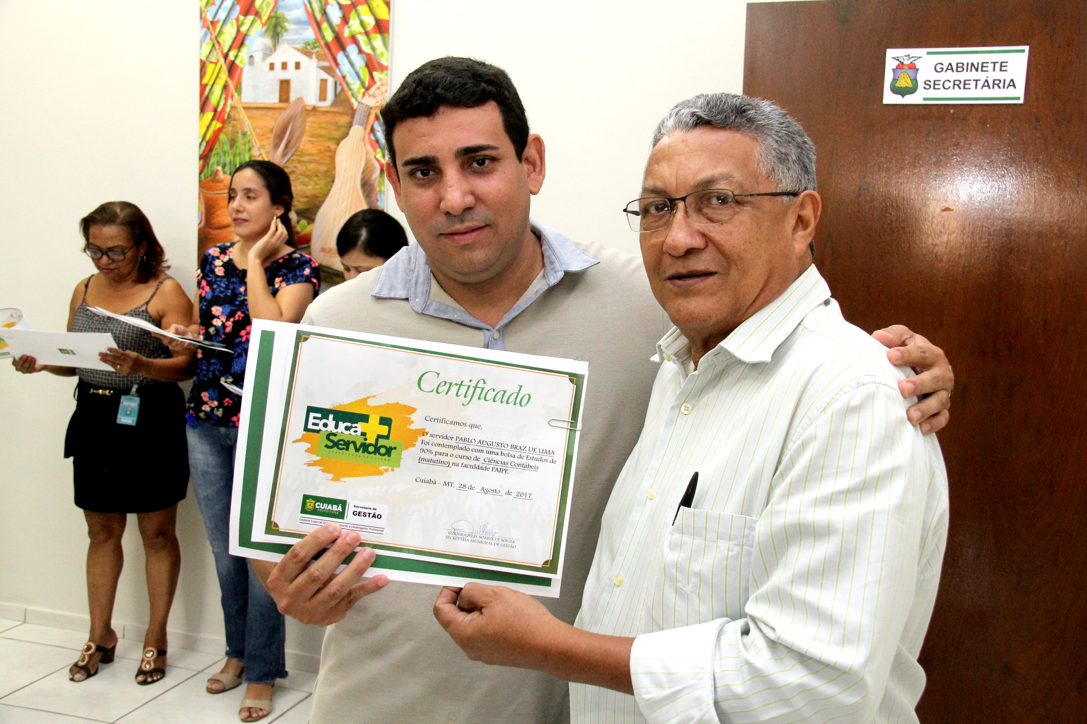 Mais seis servidores sorteados com bolsas de estudo com 90% receberam nesta segunda-feira (28) os documentos para efetuar a matrícula ingressar no curso superior, por meio do programa “Educa Mais Servidor” da Prefeitura de Cuiabá.