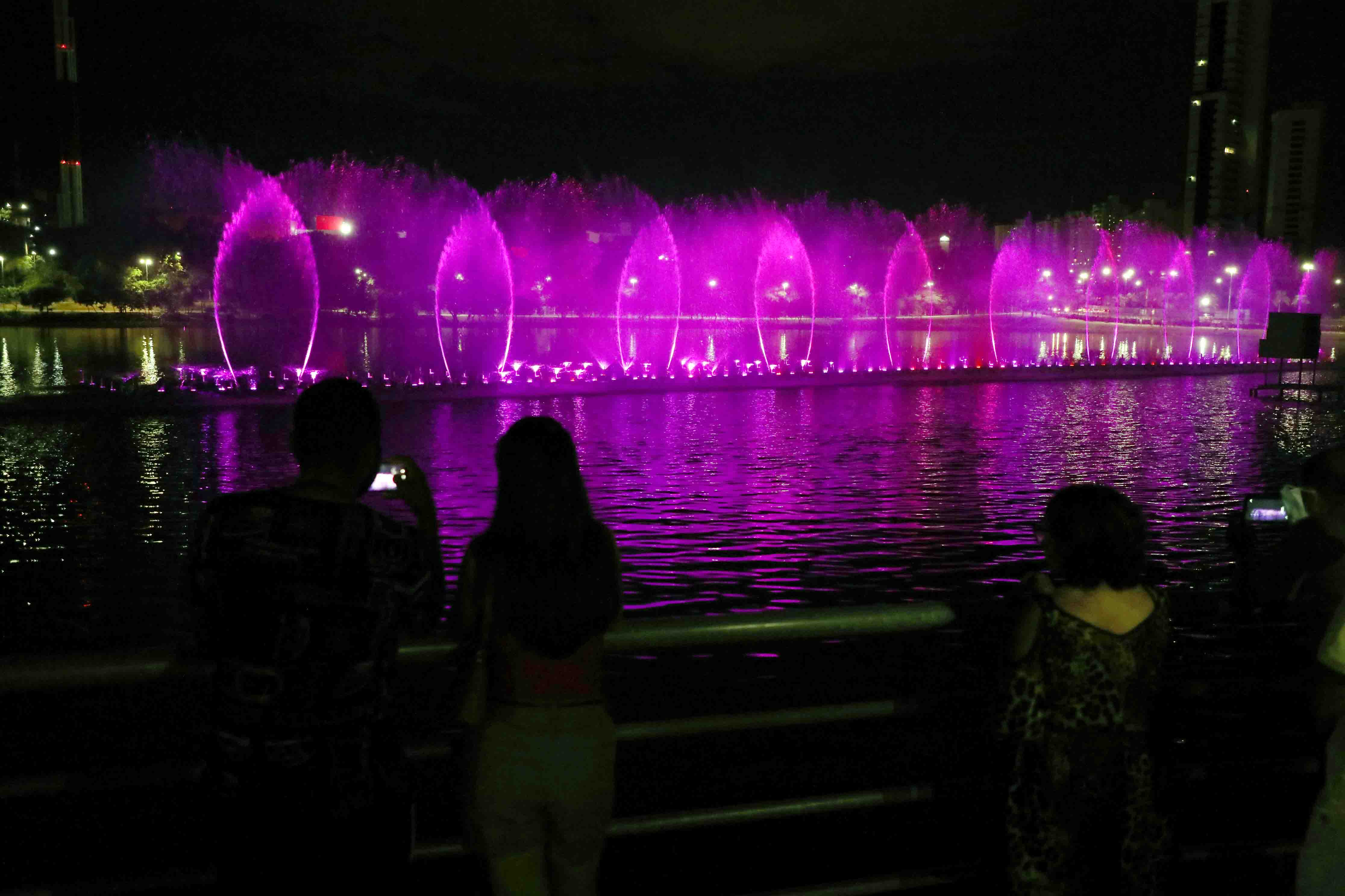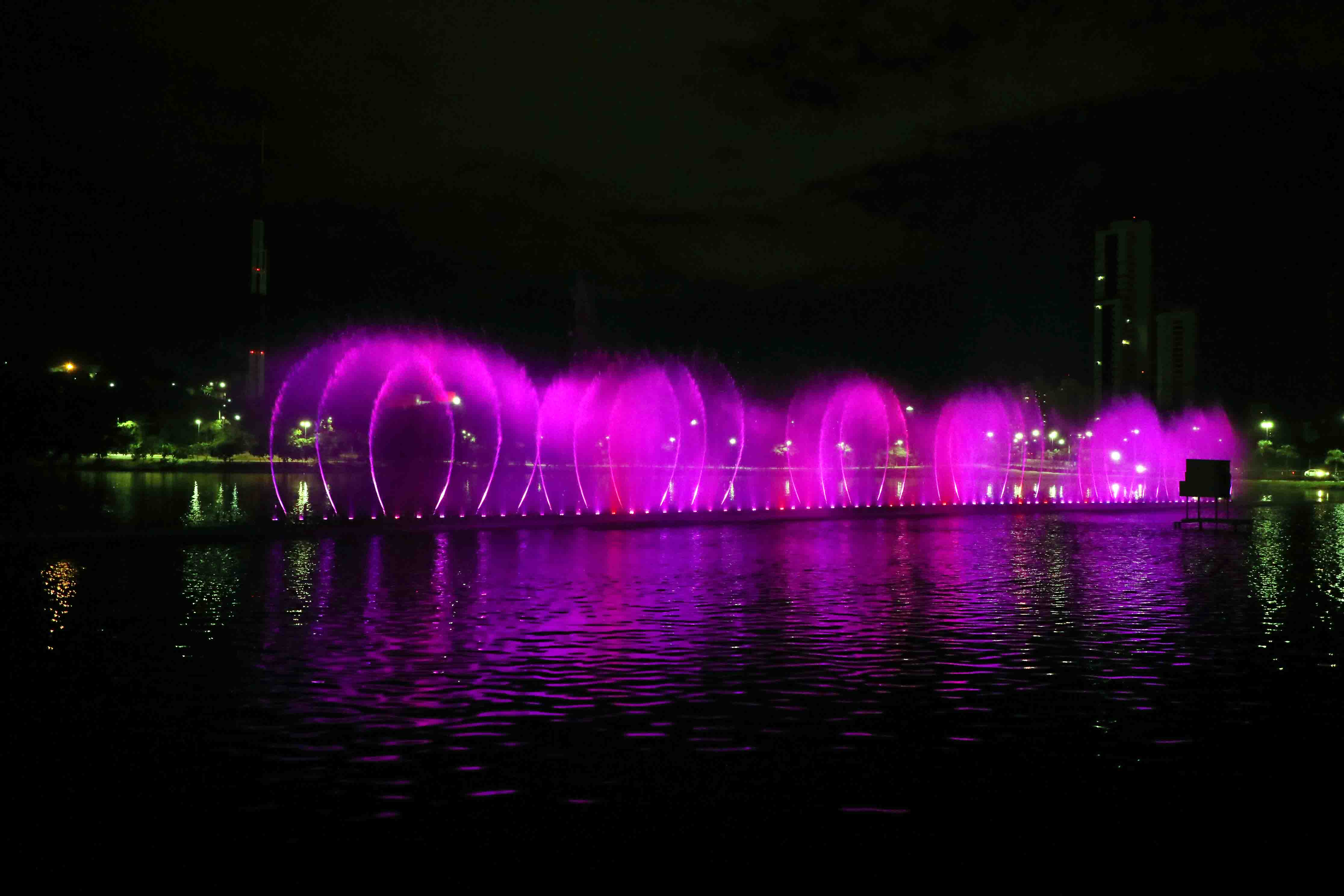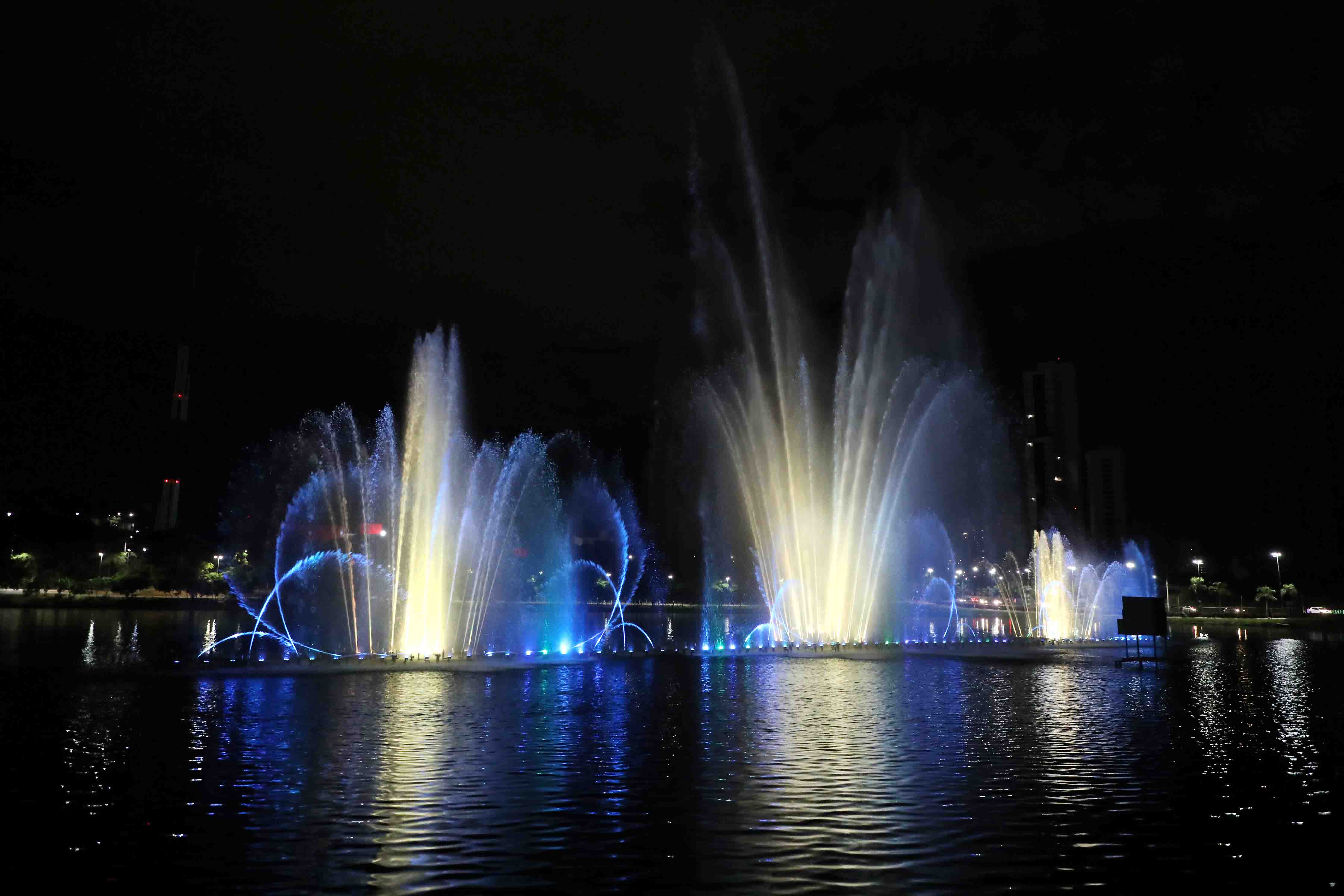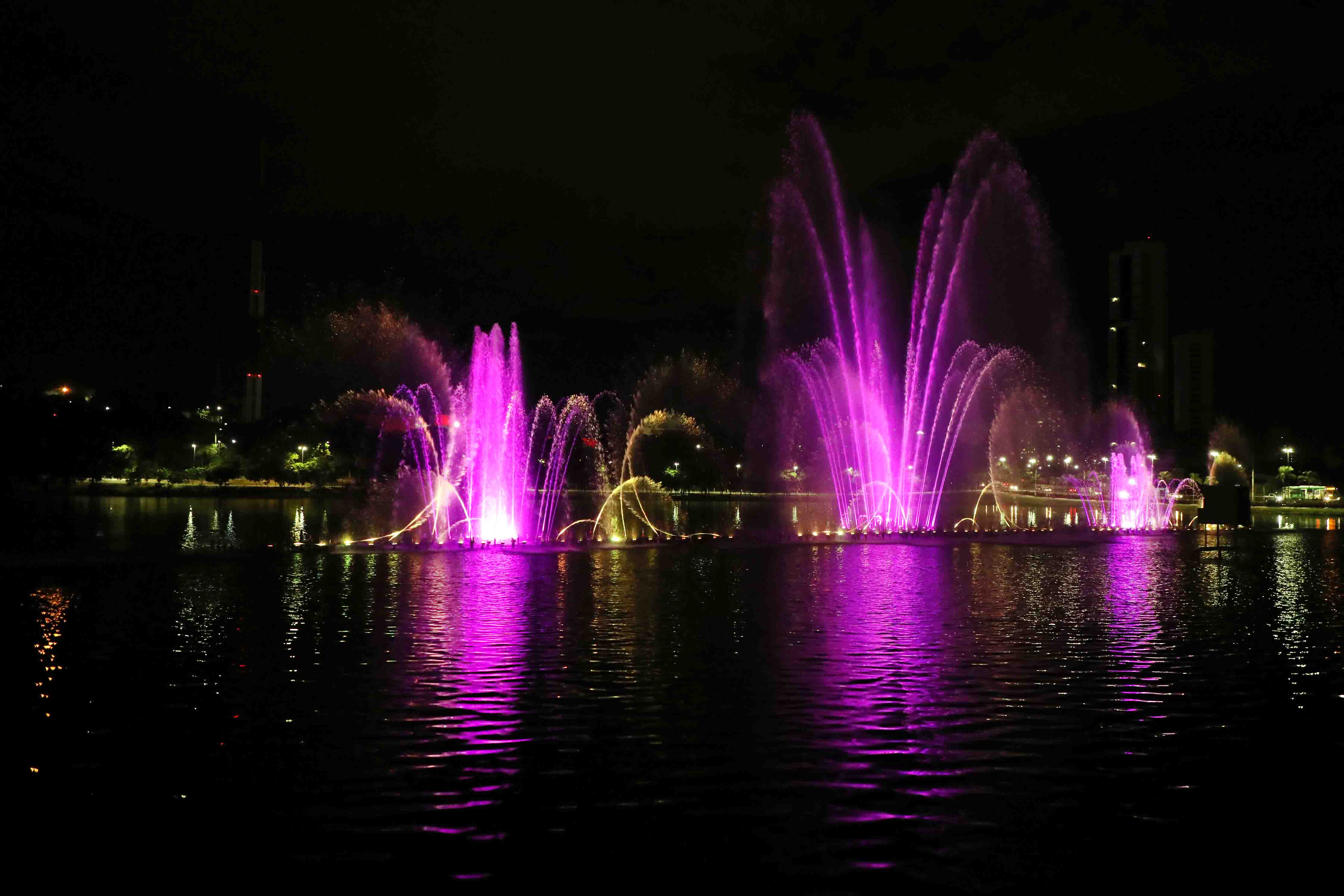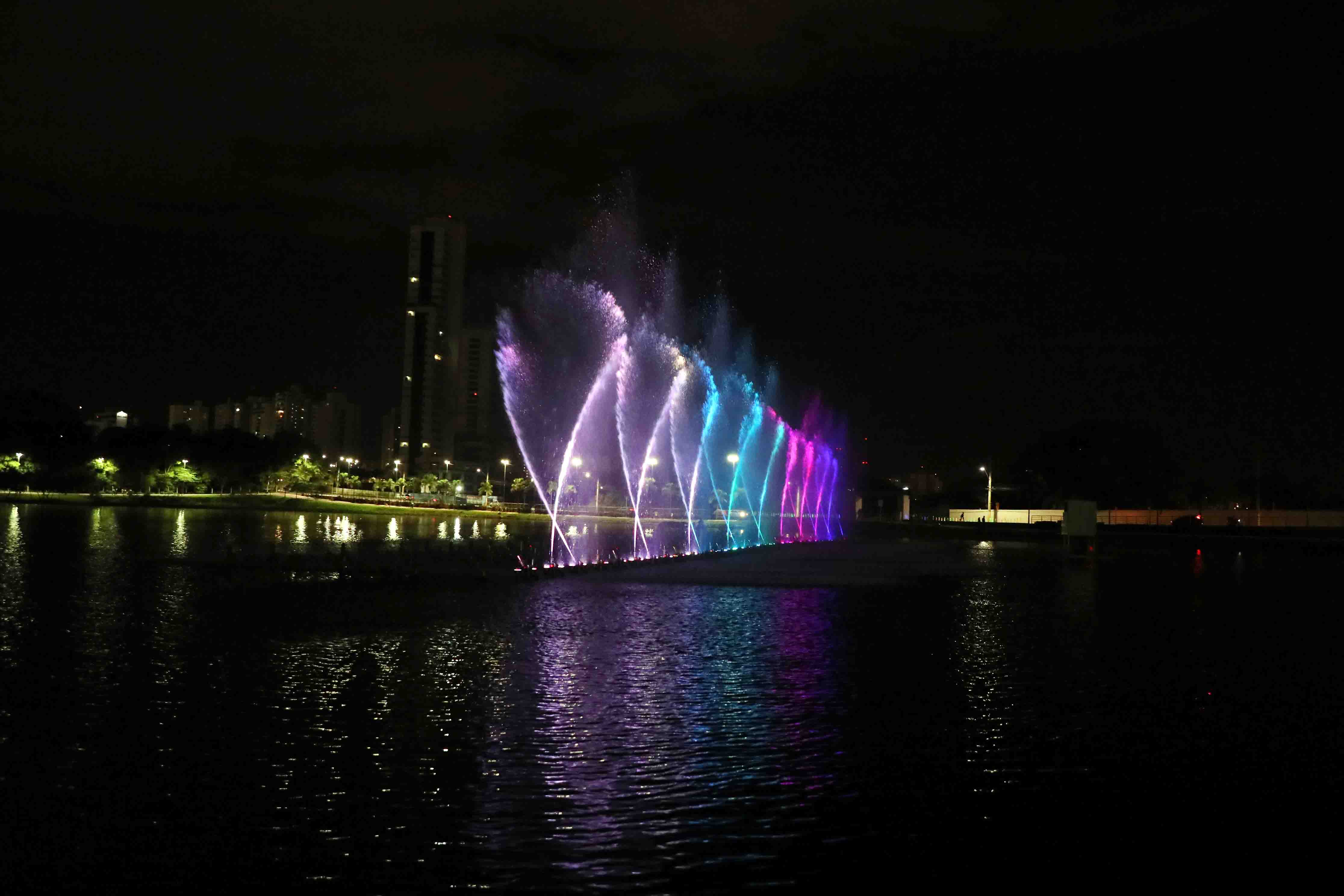 A fonte luminosa tem 70 metros de extensão e está instalada no centro da Lagoa Paiaguás. Durante as apresentações, são lançados jatos de água de até 70 metros de altura, todos iluminados coloridamente. O show pode ser contemplado todos os dias, sempre em três horários, sendo o primeiro às 19h. Logo depois, às 20h15 e o último horário é do das 21h15.