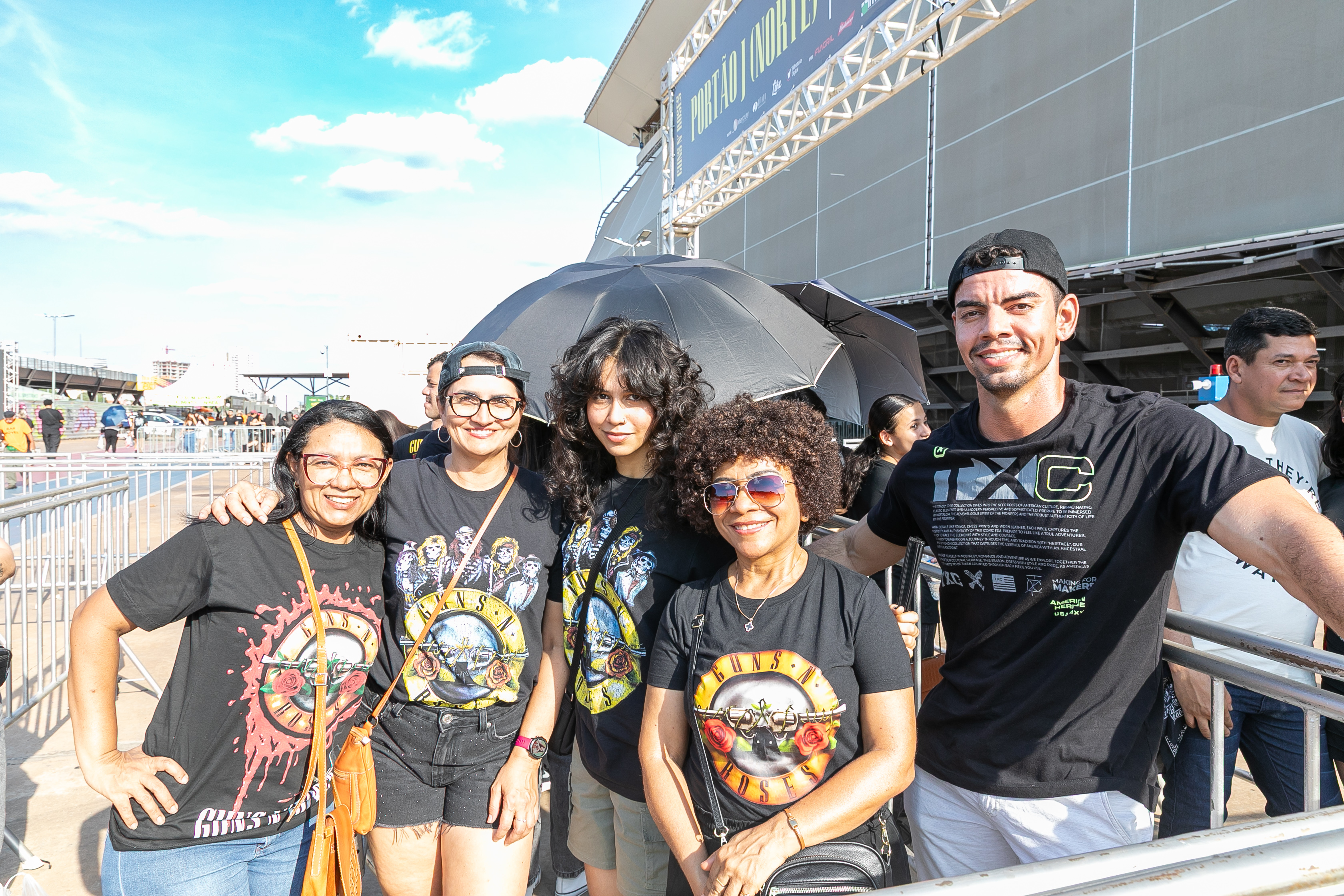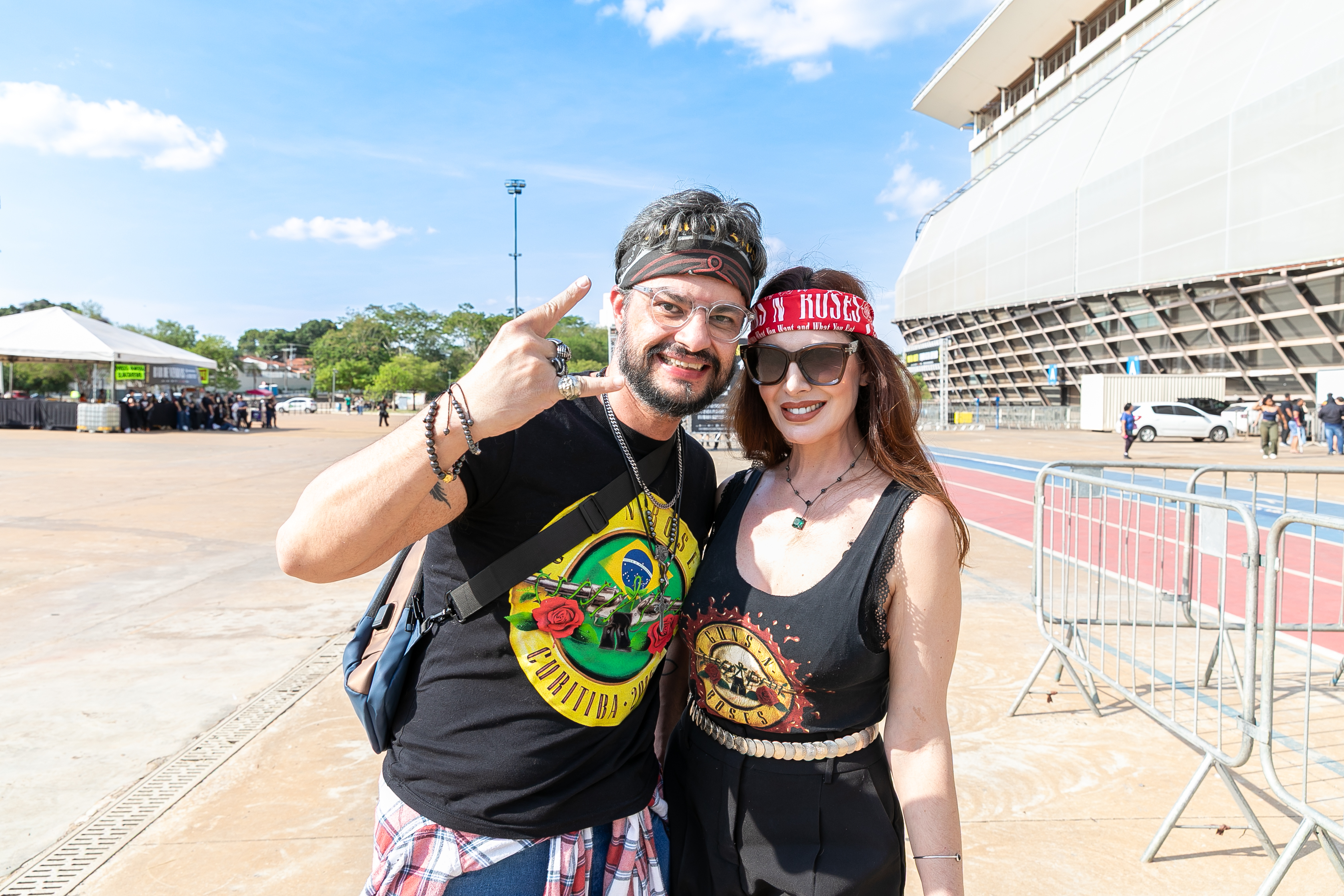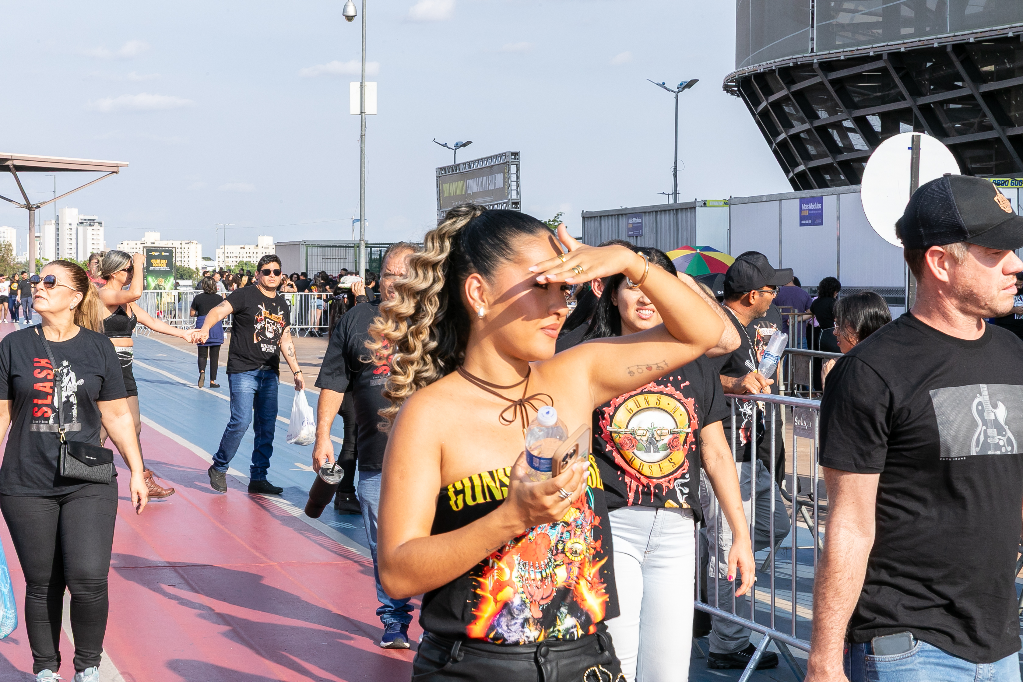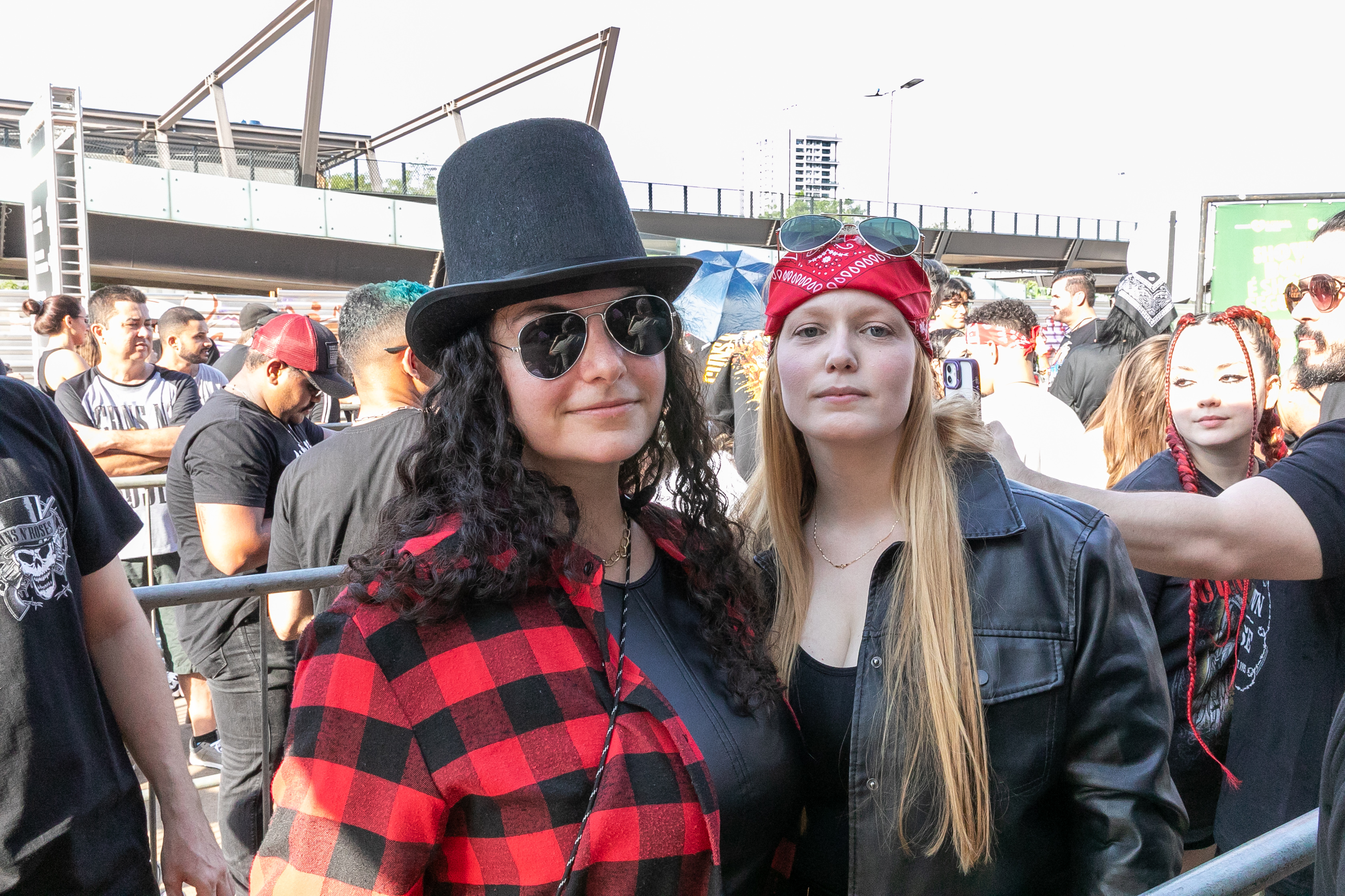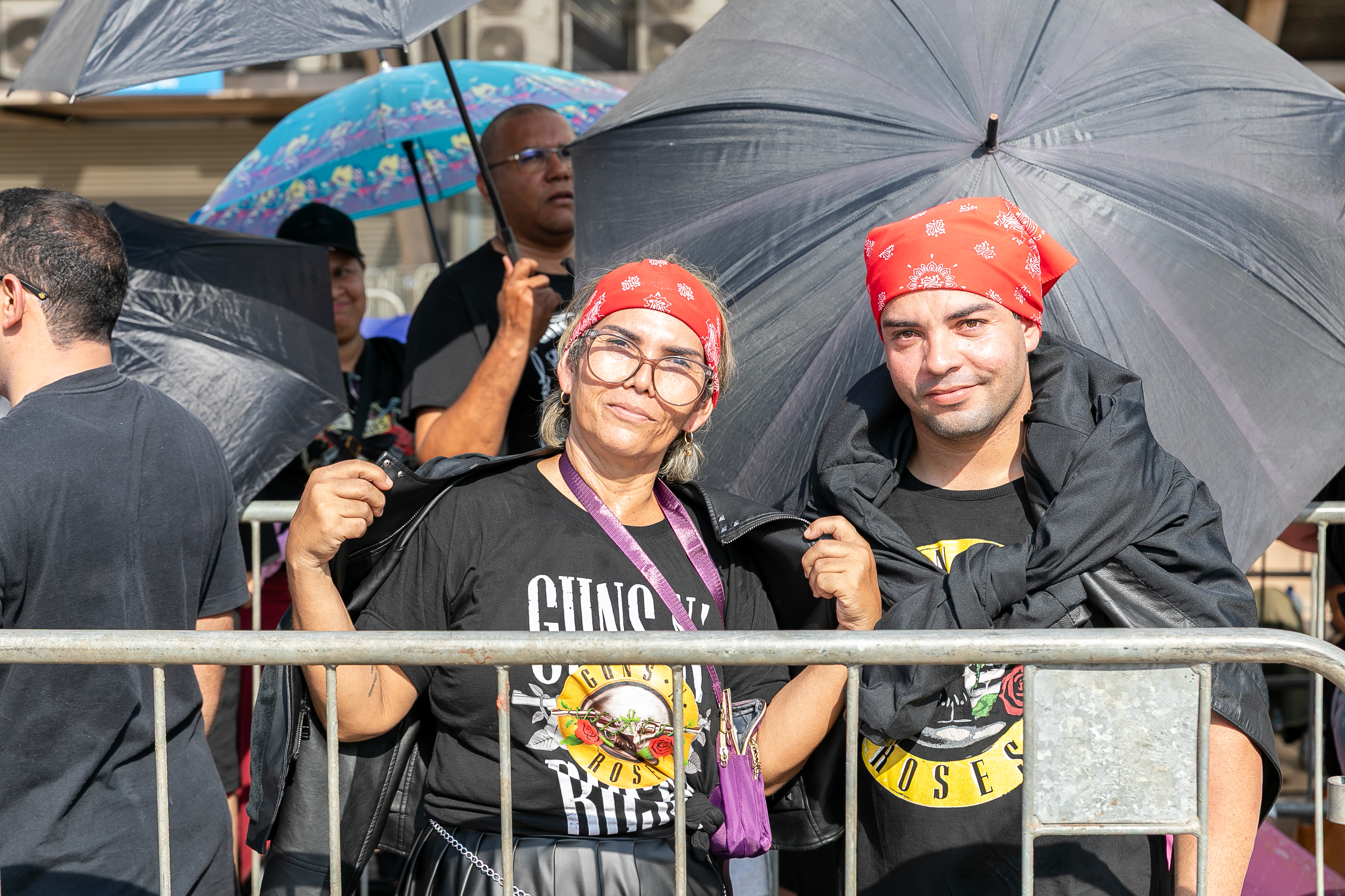 Fernanda Dettman e a filha Pietra, de 16 anos, vieram de Cacoal (RO). “Ela que me convenceu. Quando ouviu que teria o show, falou logo: ‘Mãe, a gente precisa ir!’”, contou Fernanda. Pietra, fã desde criança, cresceu ouvindo as músicas com o pai. “Quando tocar Don’t Cry ou November Rain, eu vou chorar, com certeza”, disse, com brilho nos olhos.