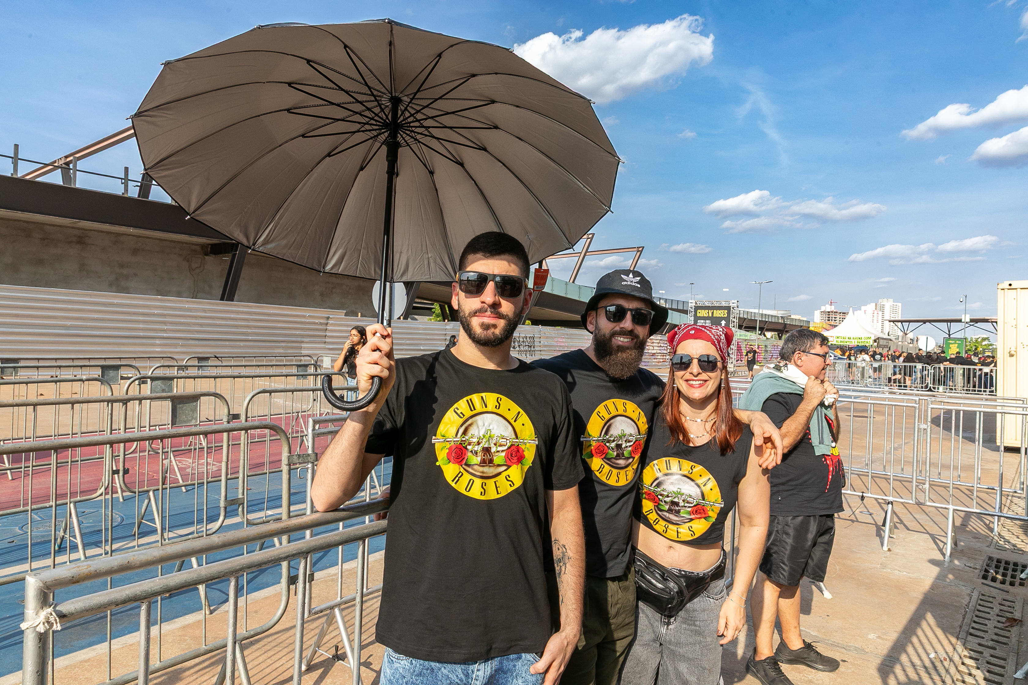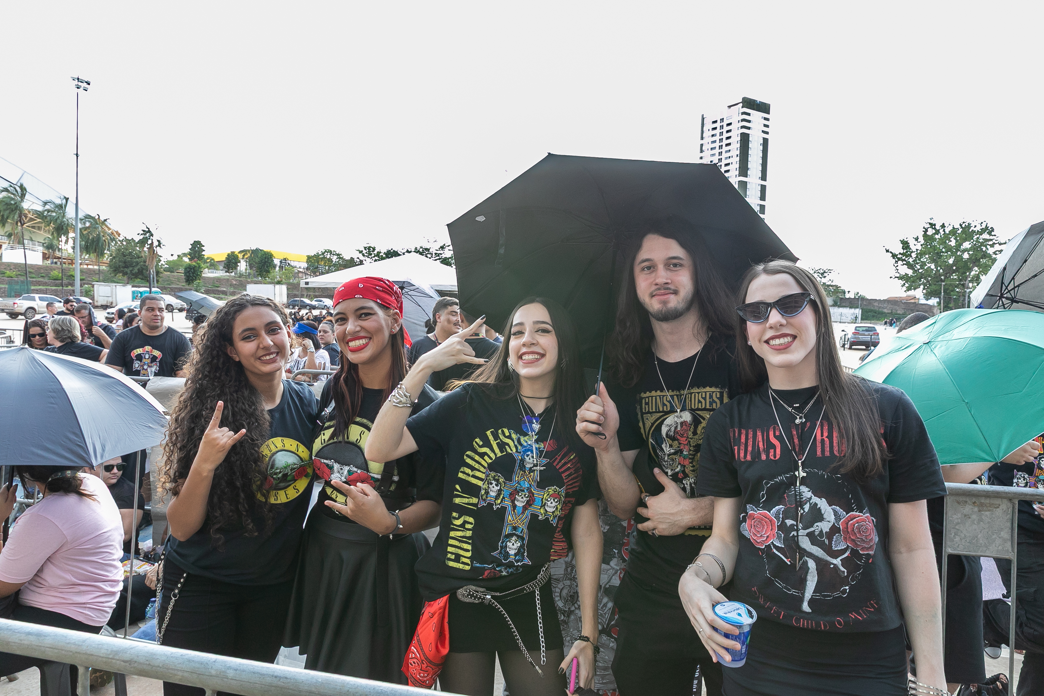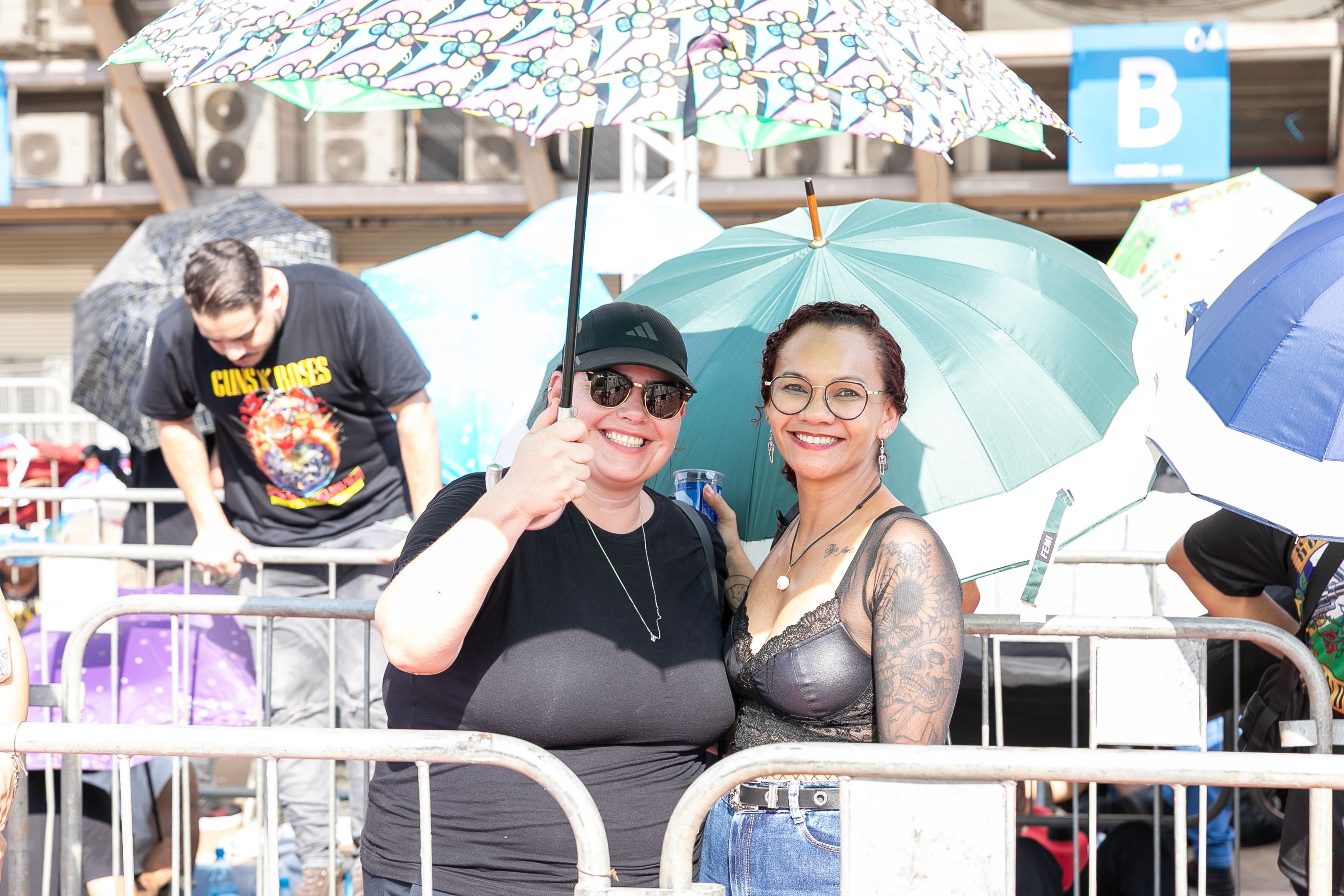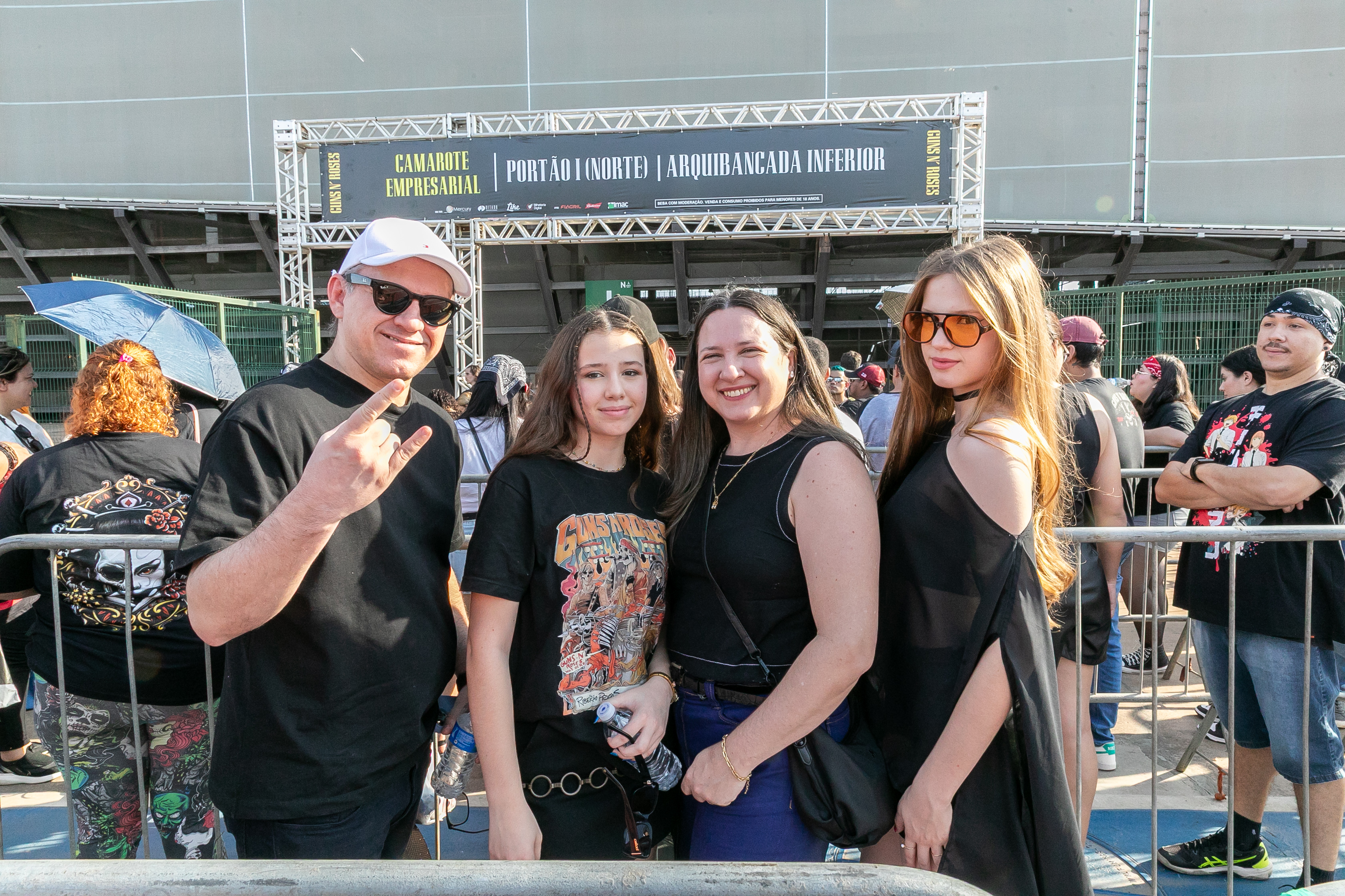 Fernanda Dettman e a filha Pietra, de 16 anos, vieram de Cacoal (RO). “Ela que me convenceu. Quando ouviu que teria o show, falou logo: ‘Mãe, a gente precisa ir!’”, contou Fernanda. Pietra, fã desde criança, cresceu ouvindo as músicas com o pai. “Quando tocar Don’t Cry ou November Rain, eu vou chorar, com certeza”, disse, com brilho nos olhos.