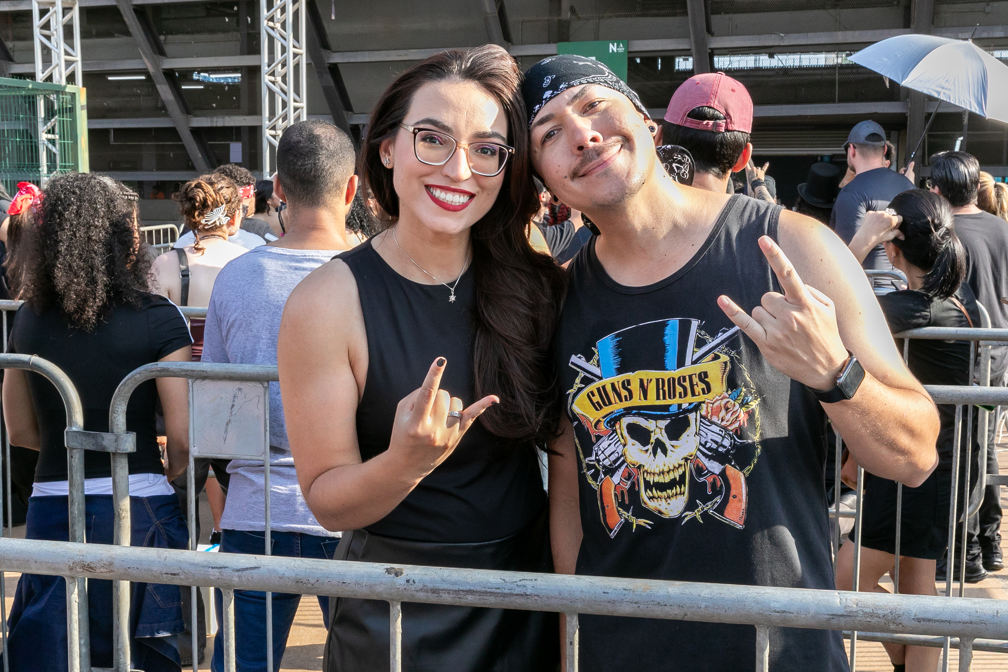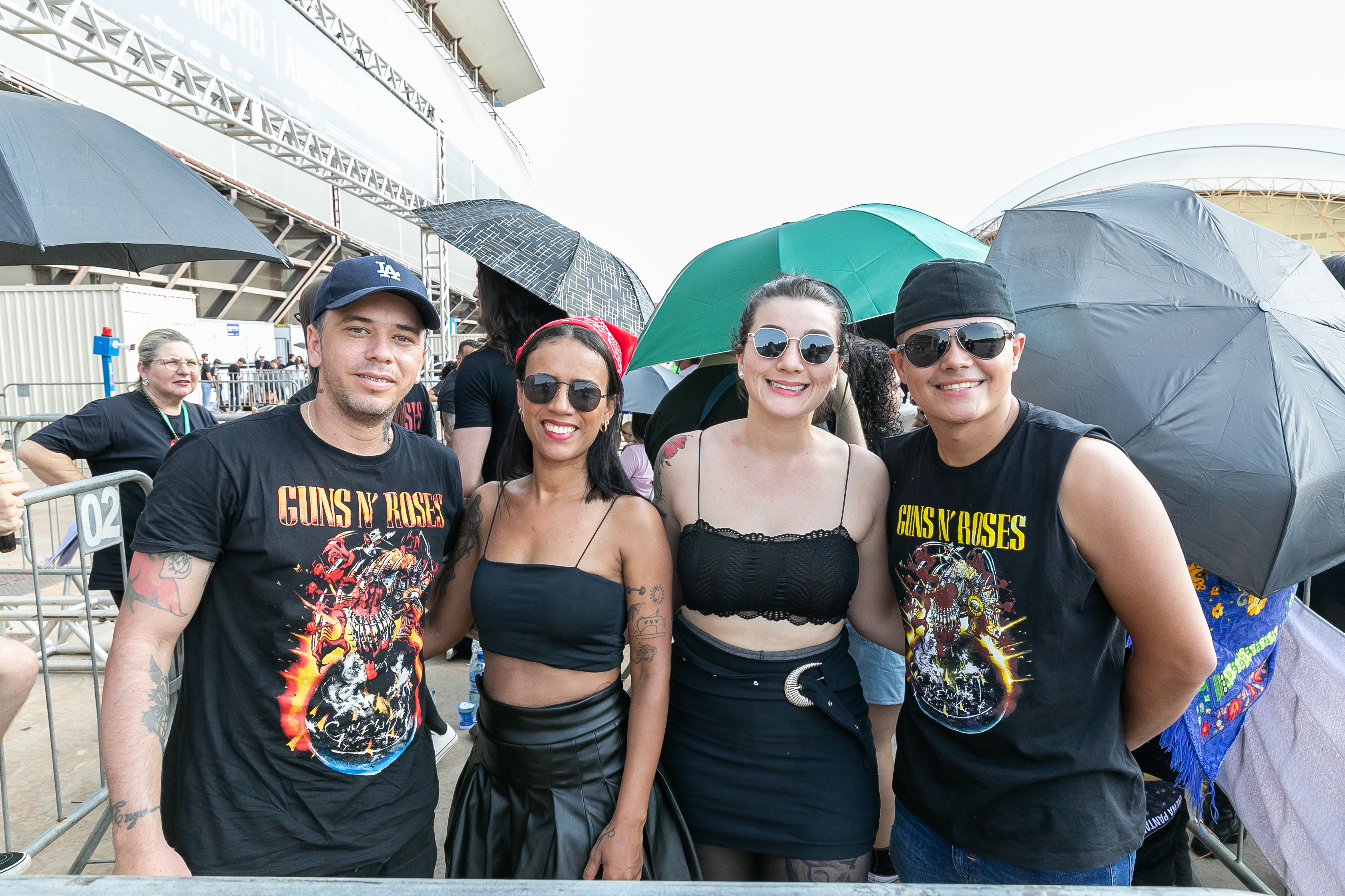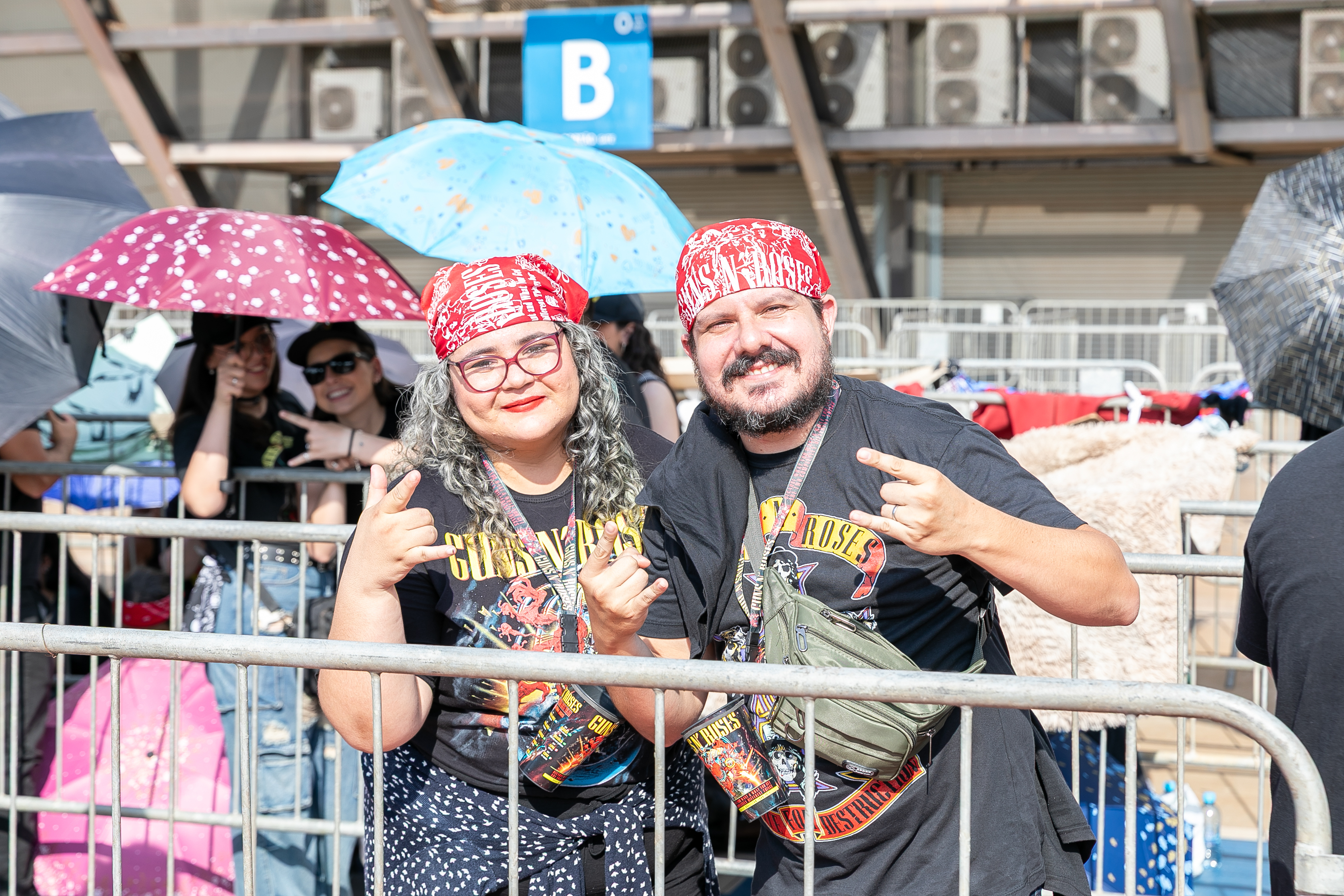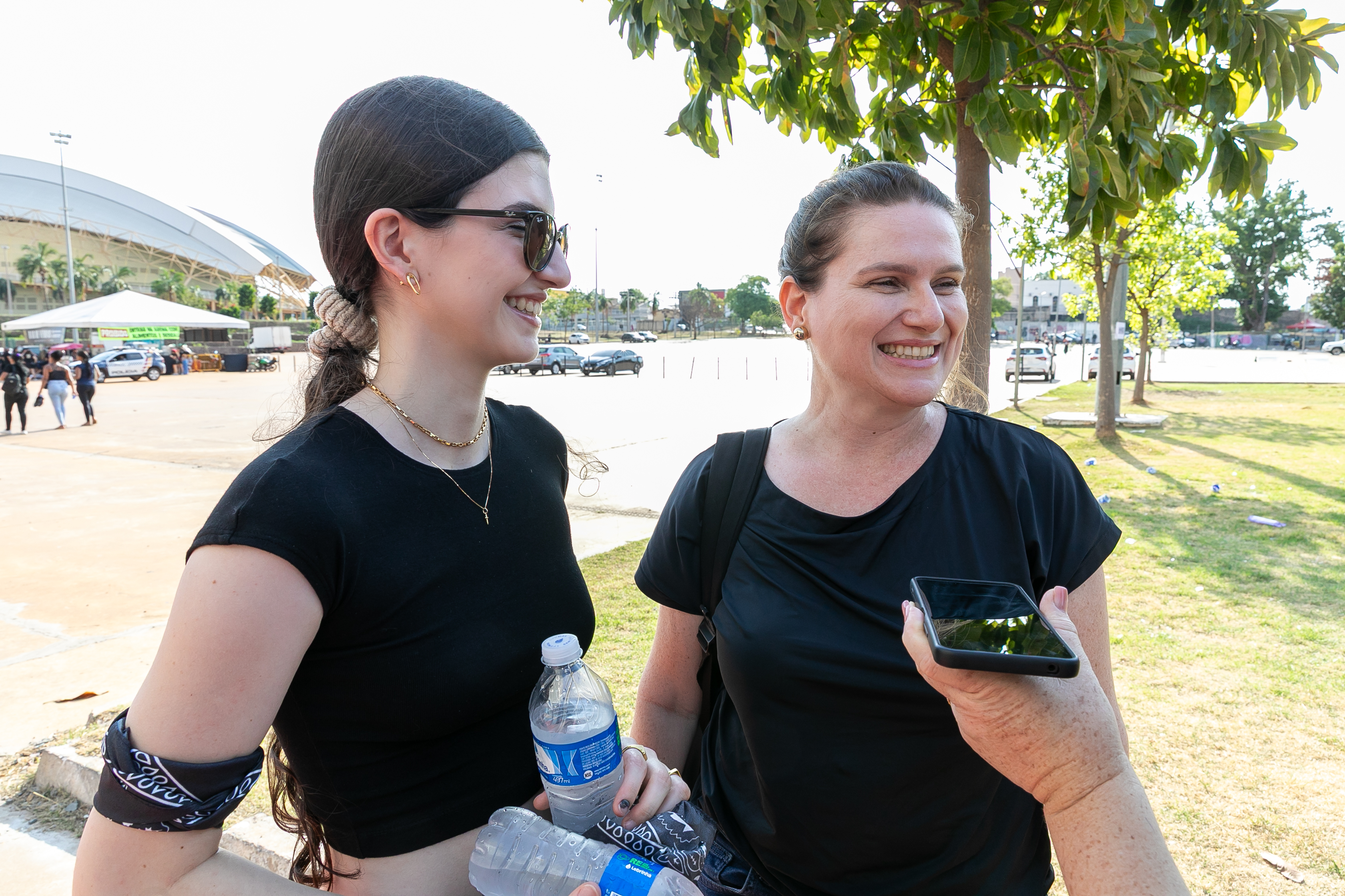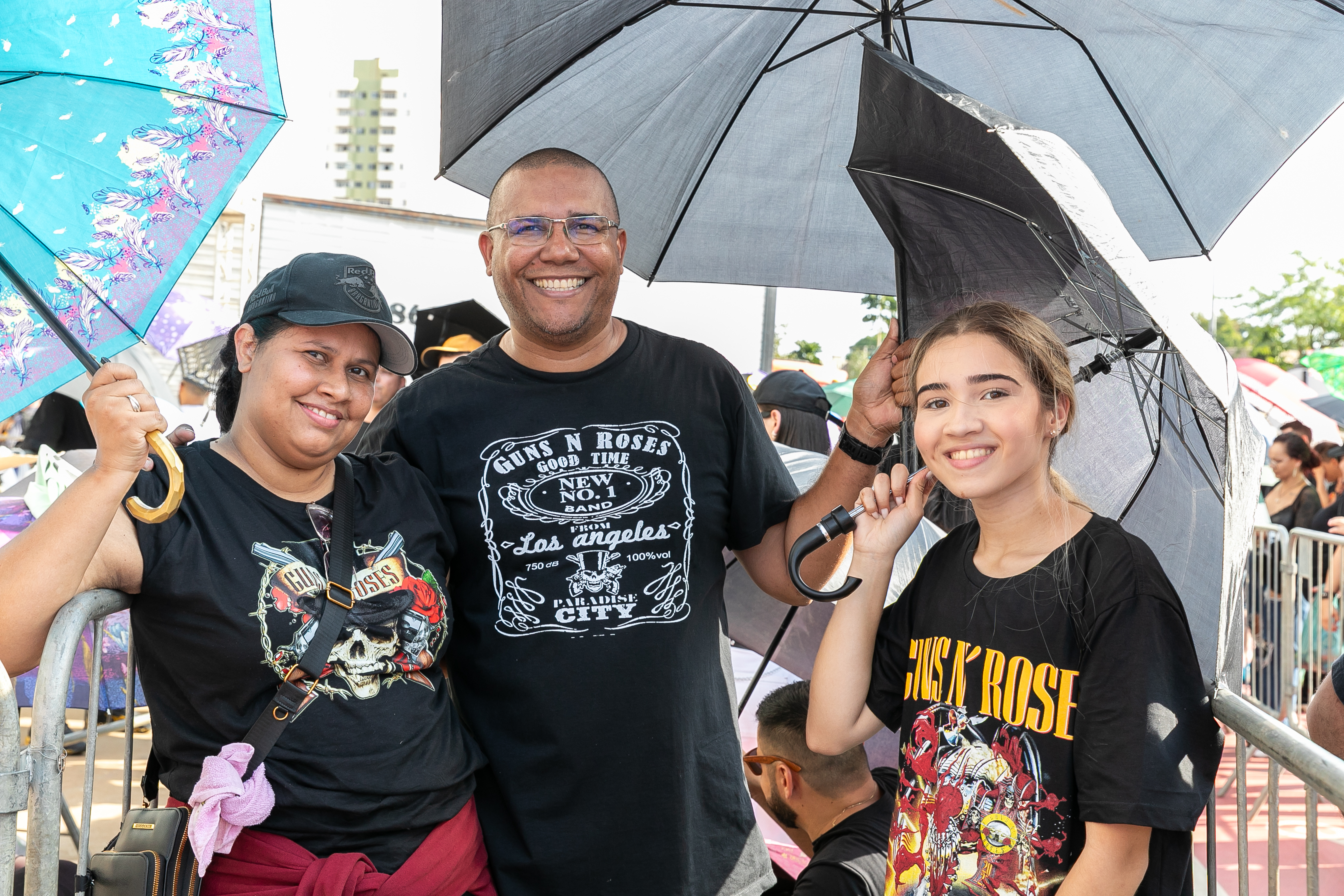 Fernanda Dettman e a filha Pietra, de 16 anos, vieram de Cacoal (RO). “Ela que me convenceu. Quando ouviu que teria o show, falou logo: ‘Mãe, a gente precisa ir!’”, contou Fernanda. Pietra, fã desde criança, cresceu ouvindo as músicas com o pai. “Quando tocar Don’t Cry ou November Rain, eu vou chorar, com certeza”, disse, com brilho nos olhos.