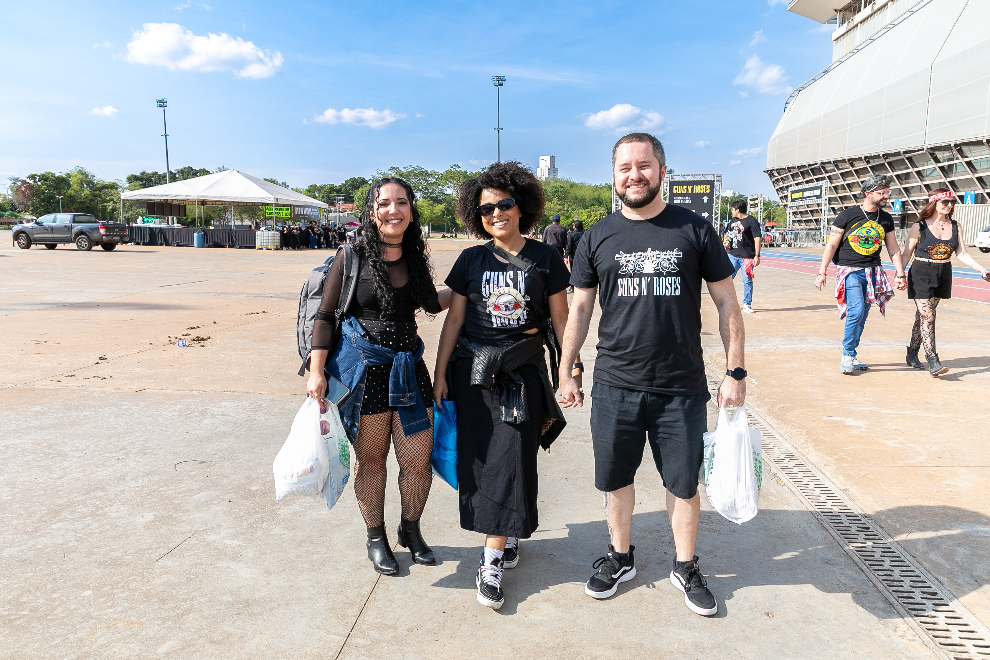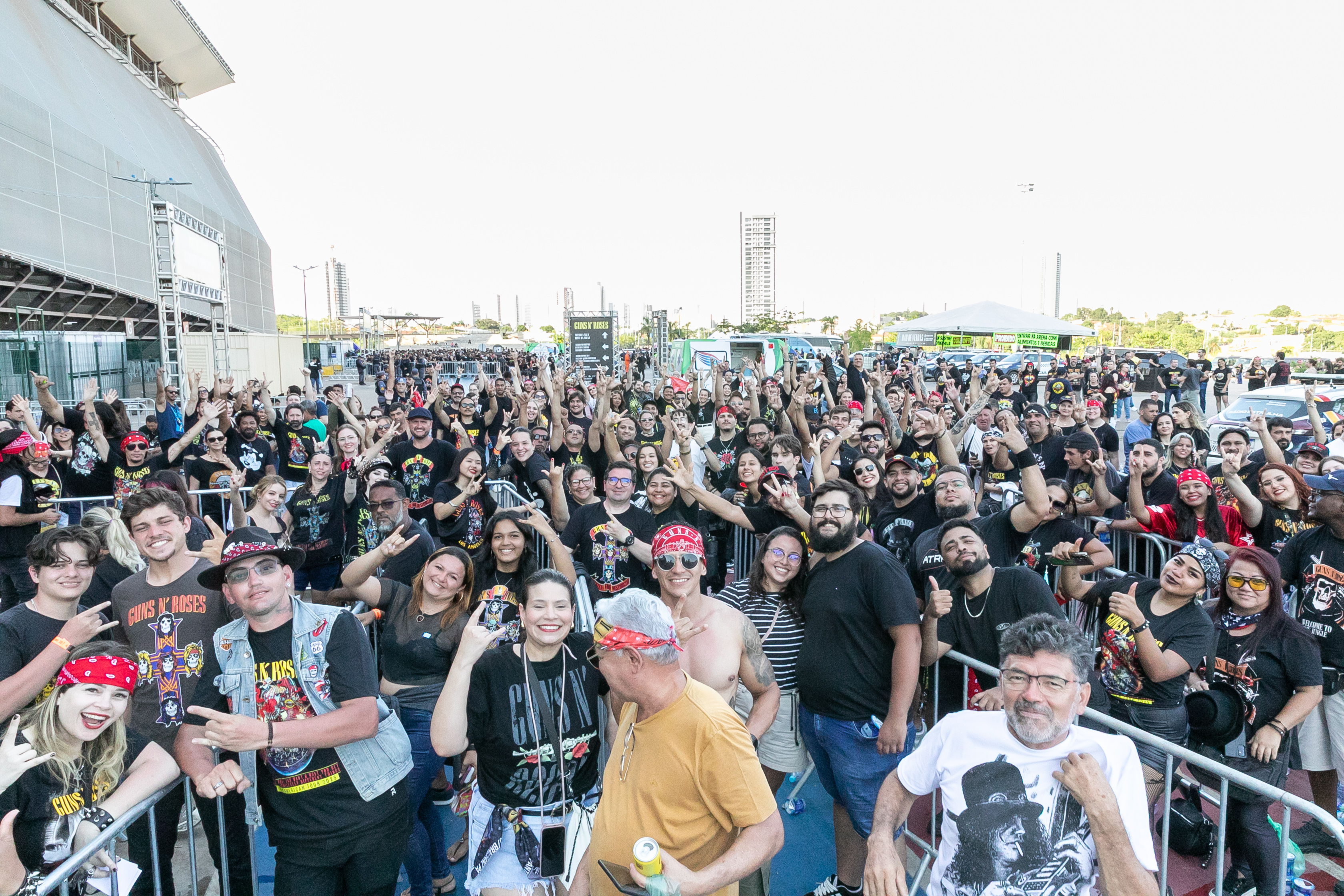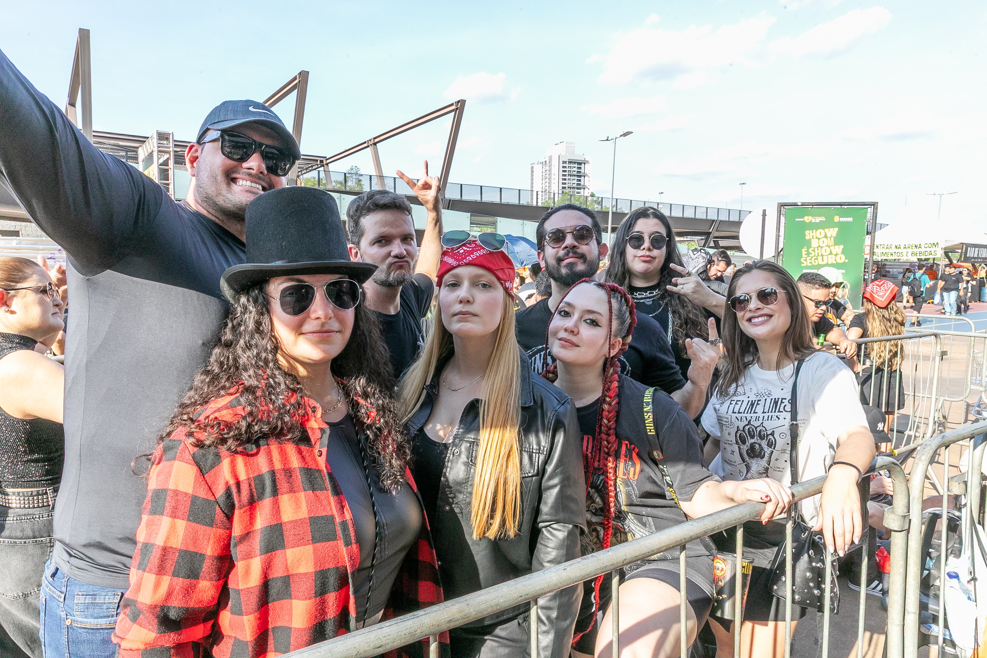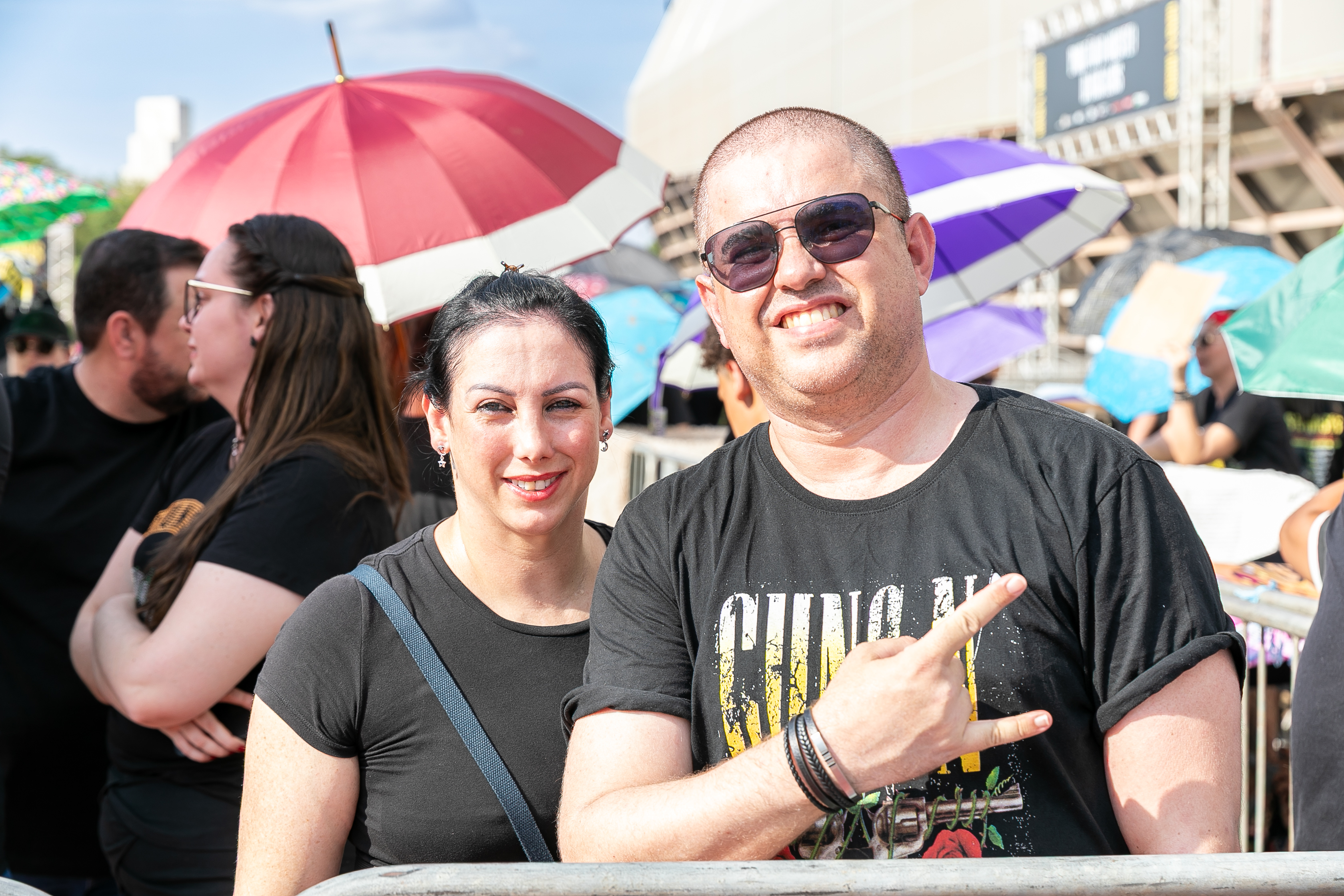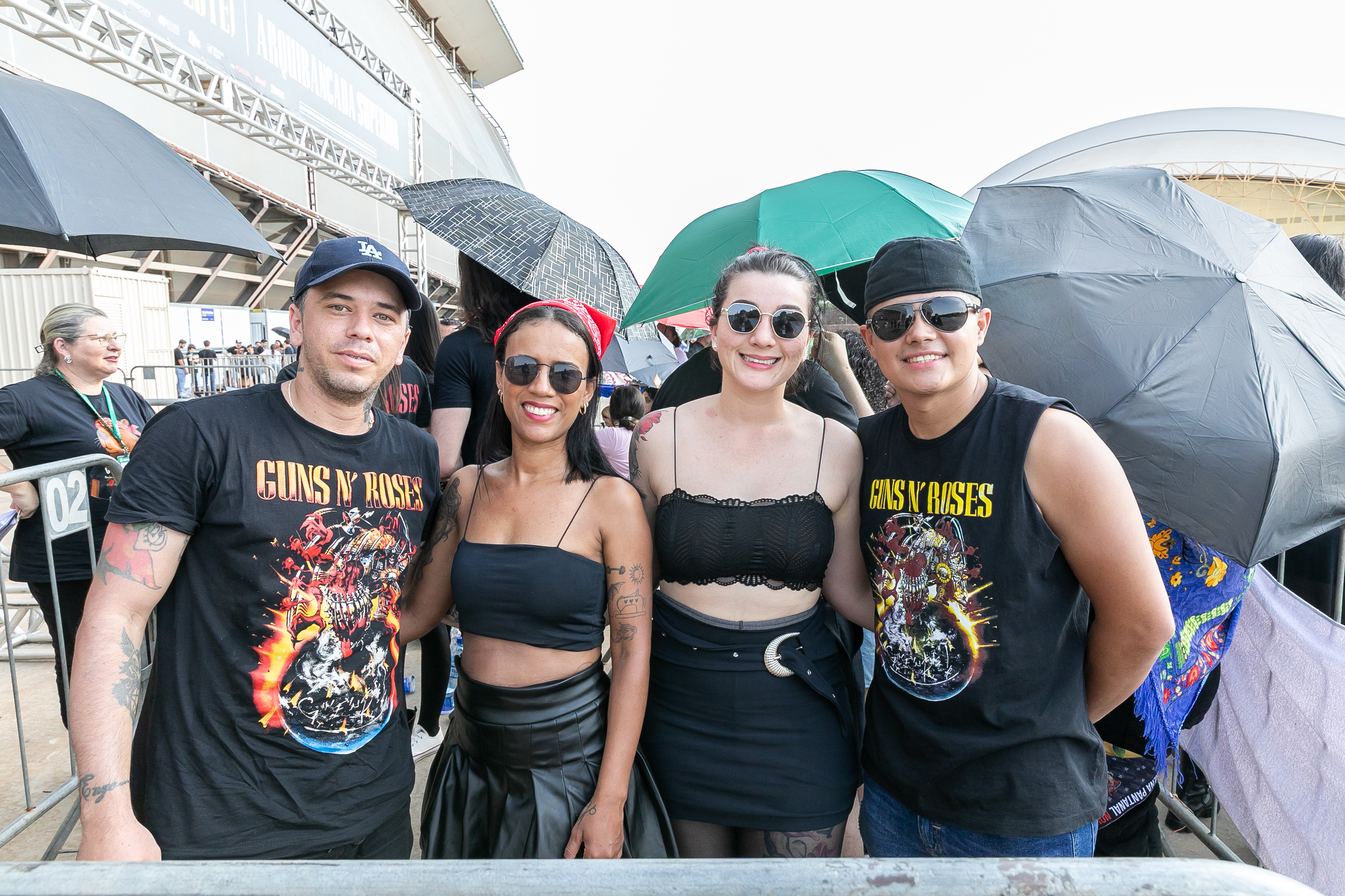 Fernanda Dettman e a filha Pietra, de 16 anos, vieram de Cacoal (RO). “Ela que me convenceu. Quando ouviu que teria o show, falou logo: ‘Mãe, a gente precisa ir!’”, contou Fernanda. Pietra, fã desde criança, cresceu ouvindo as músicas com o pai. “Quando tocar Don’t Cry ou November Rain, eu vou chorar, com certeza”, disse, com brilho nos olhos.
