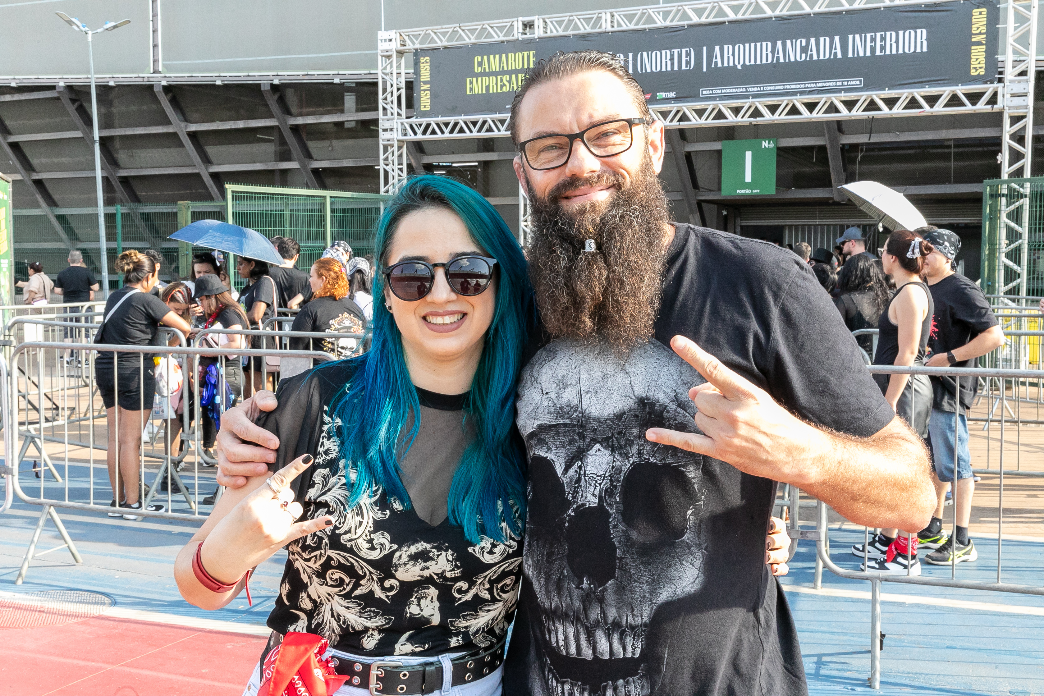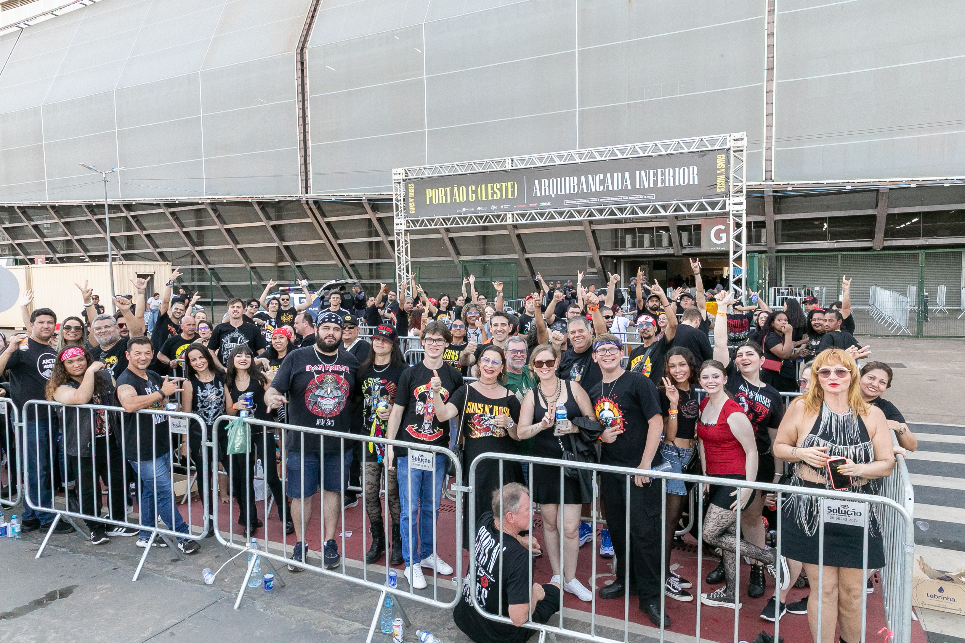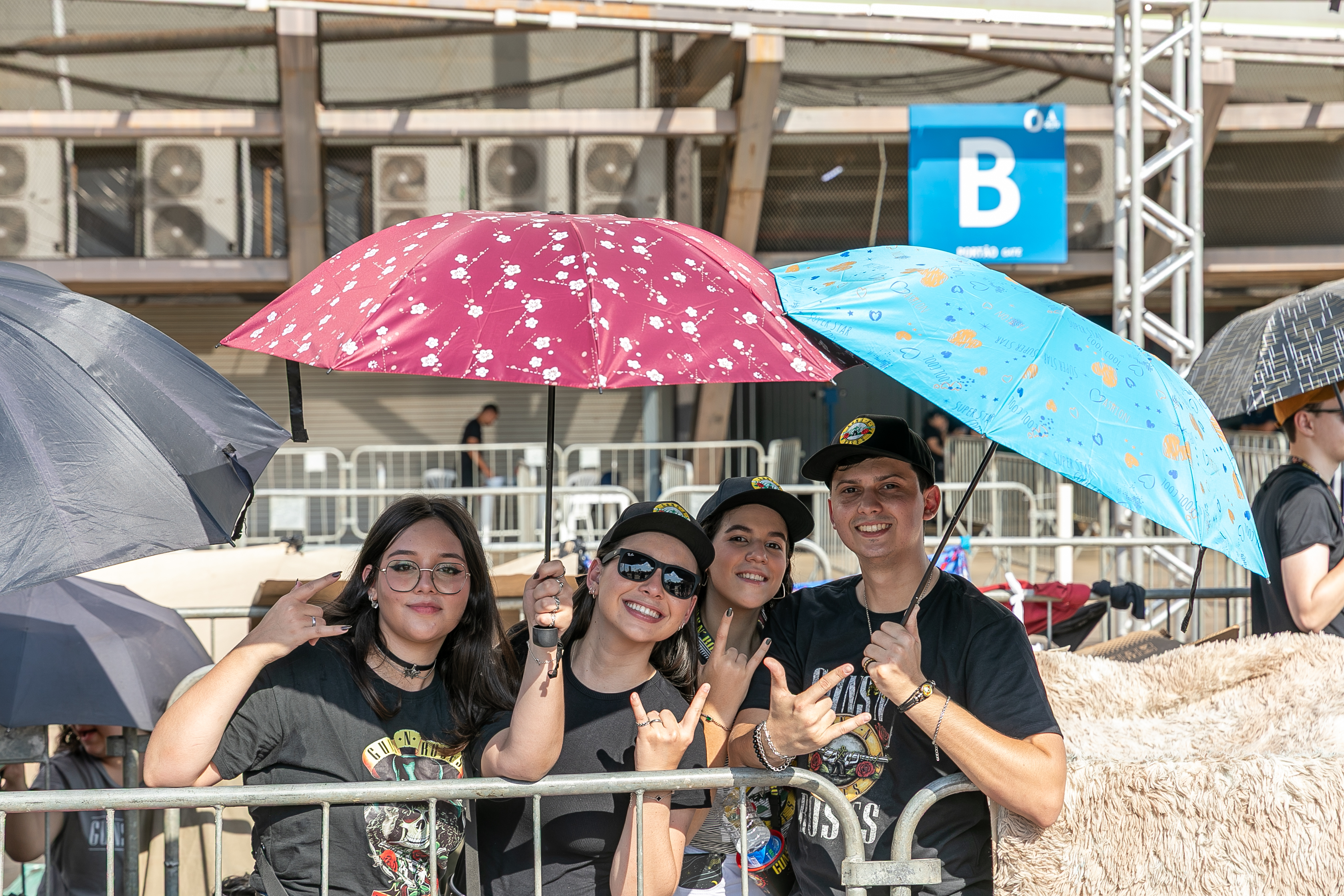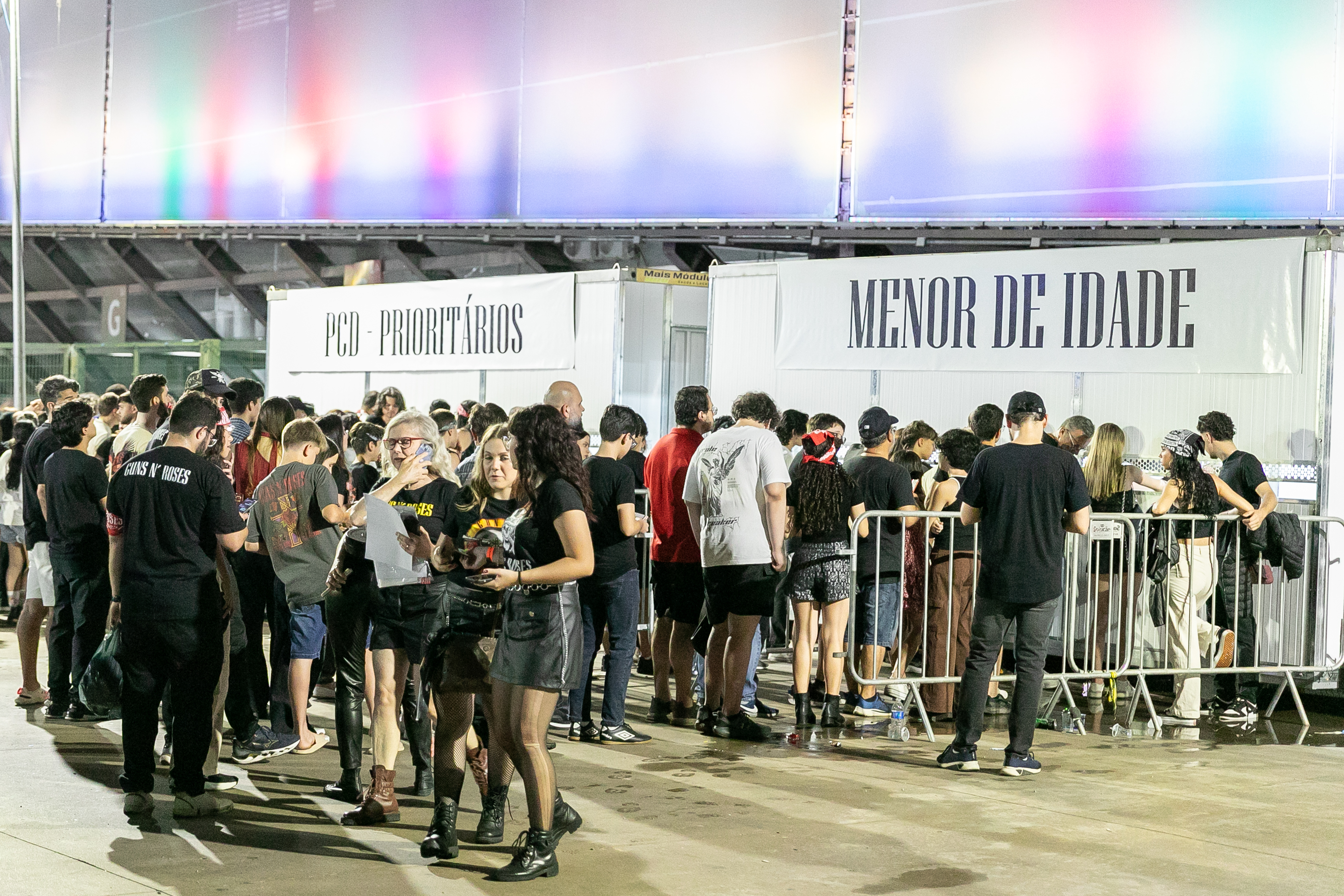 Fernanda Dettman e a filha Pietra, de 16 anos, vieram de Cacoal (RO). “Ela que me convenceu. Quando ouviu que teria o show, falou logo: ‘Mãe, a gente precisa ir!’”, contou Fernanda. Pietra, fã desde criança, cresceu ouvindo as músicas com o pai. “Quando tocar Don’t Cry ou November Rain, eu vou chorar, com certeza”, disse, com brilho nos olhos.