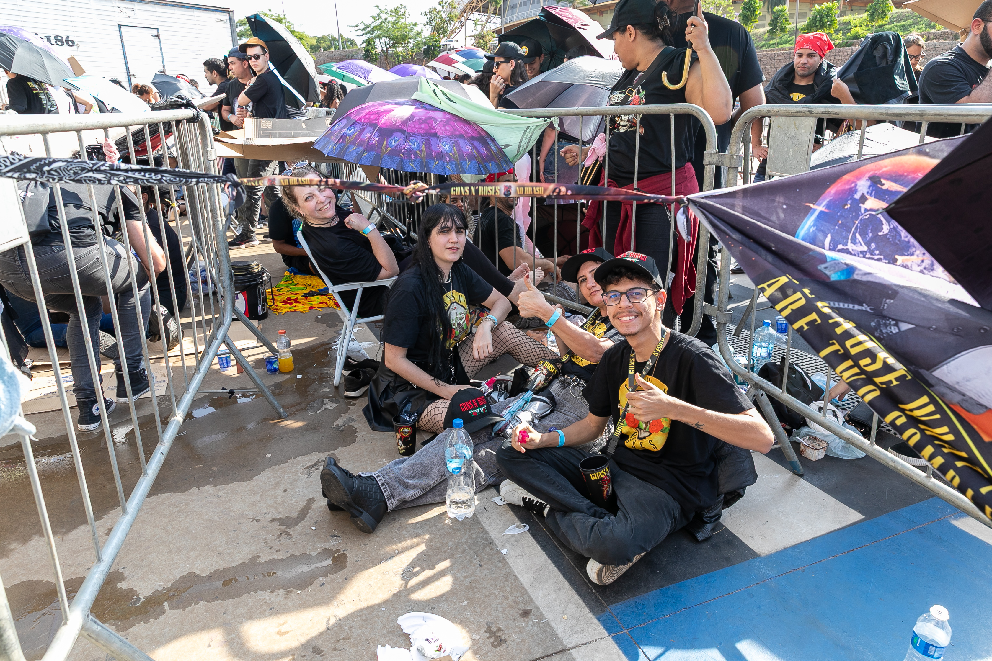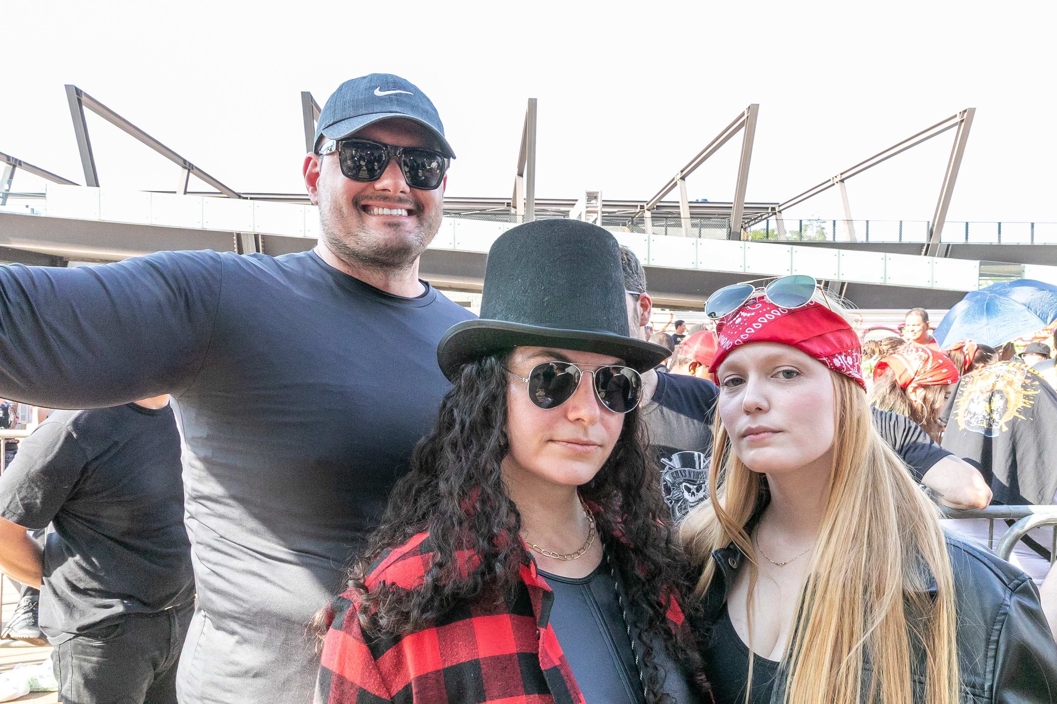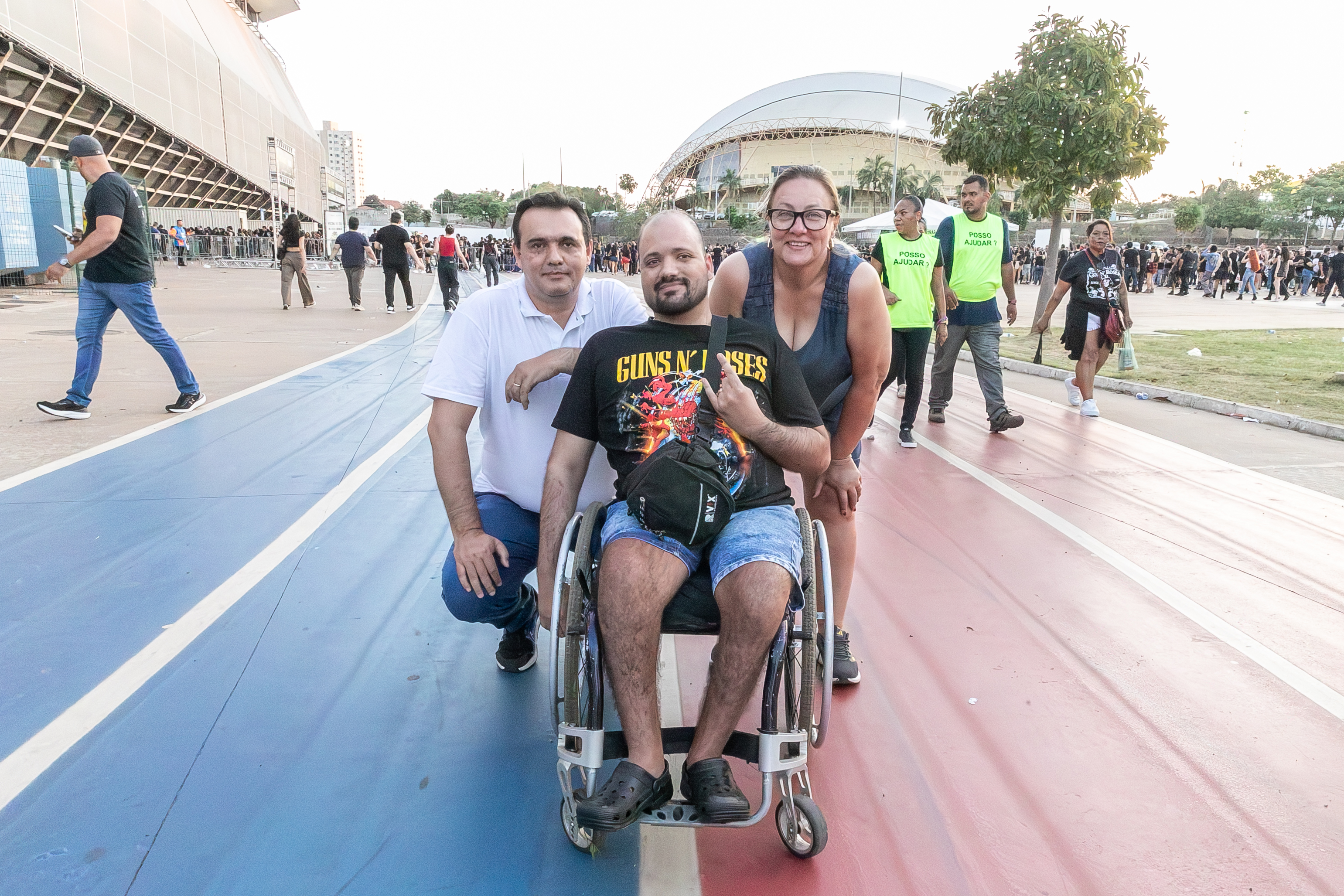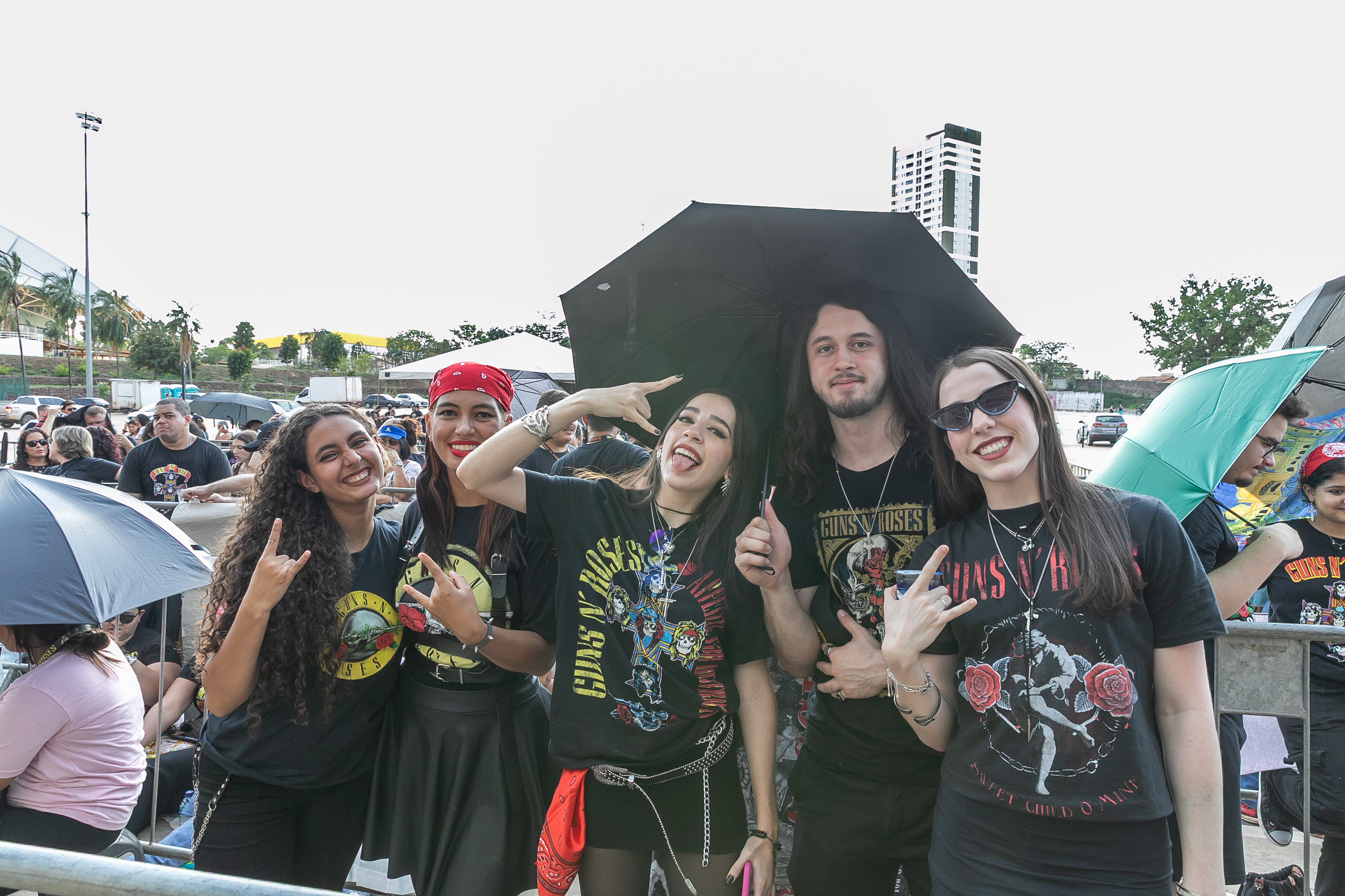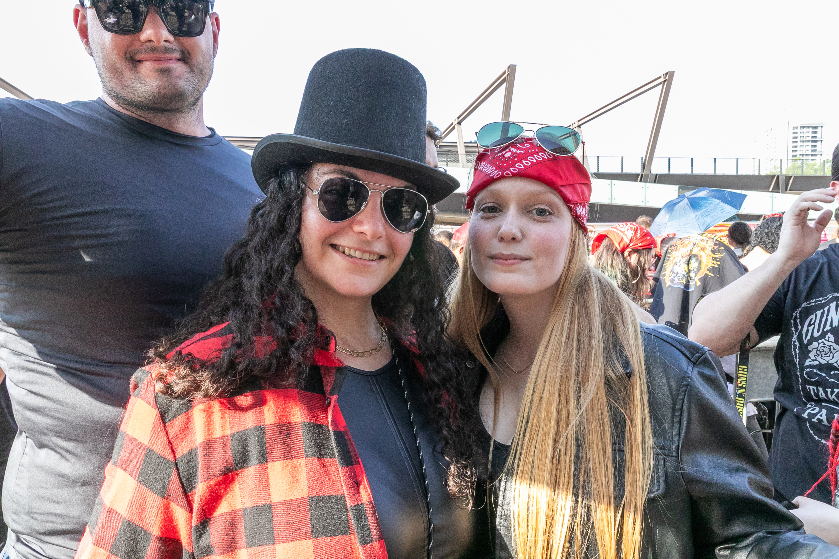 Fernanda Dettman e a filha Pietra, de 16 anos, vieram de Cacoal (RO). “Ela que me convenceu. Quando ouviu que teria o show, falou logo: ‘Mãe, a gente precisa ir!’”, contou Fernanda. Pietra, fã desde criança, cresceu ouvindo as músicas com o pai. “Quando tocar Don’t Cry ou November Rain, eu vou chorar, com certeza”, disse, com brilho nos olhos.