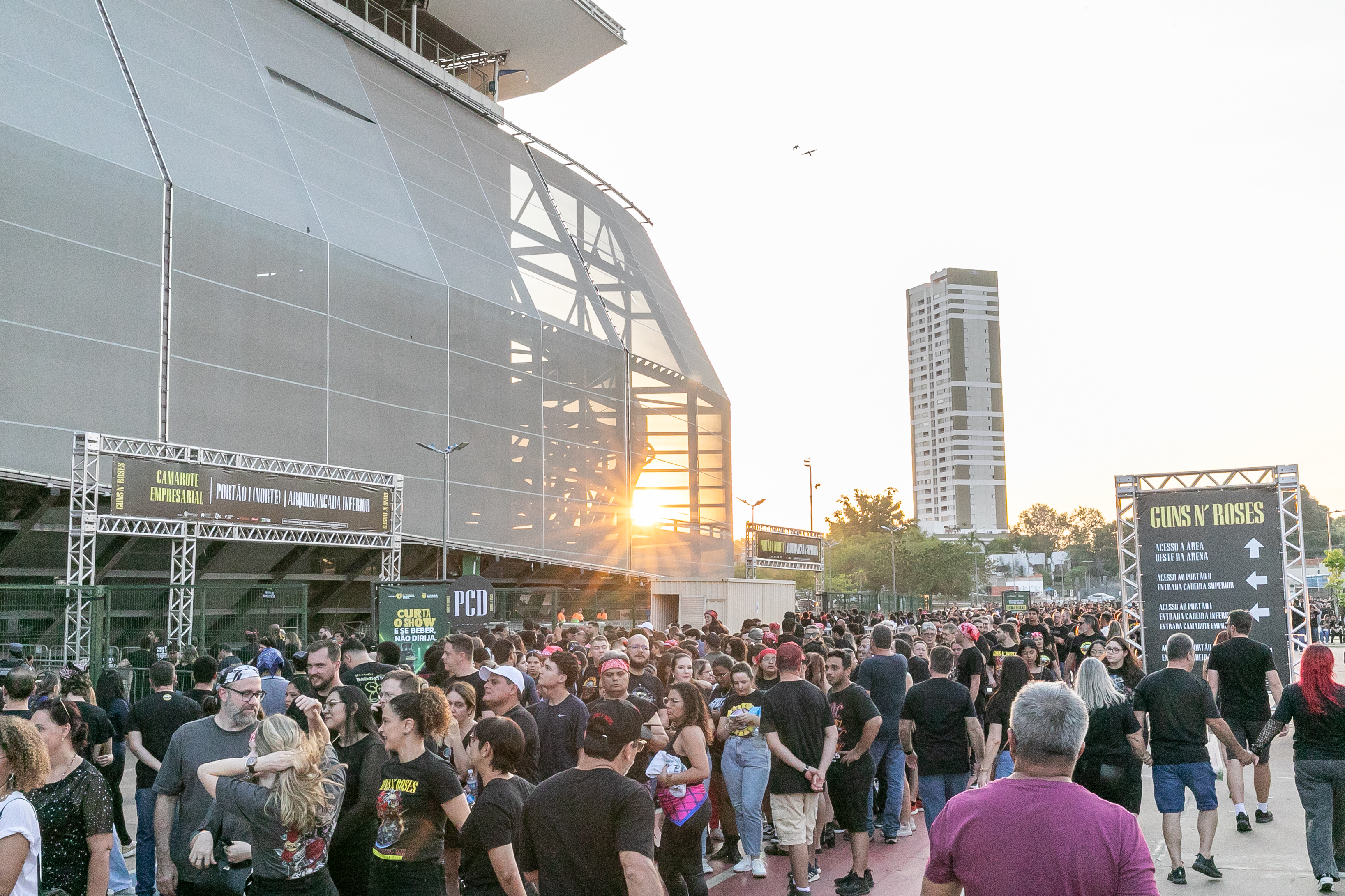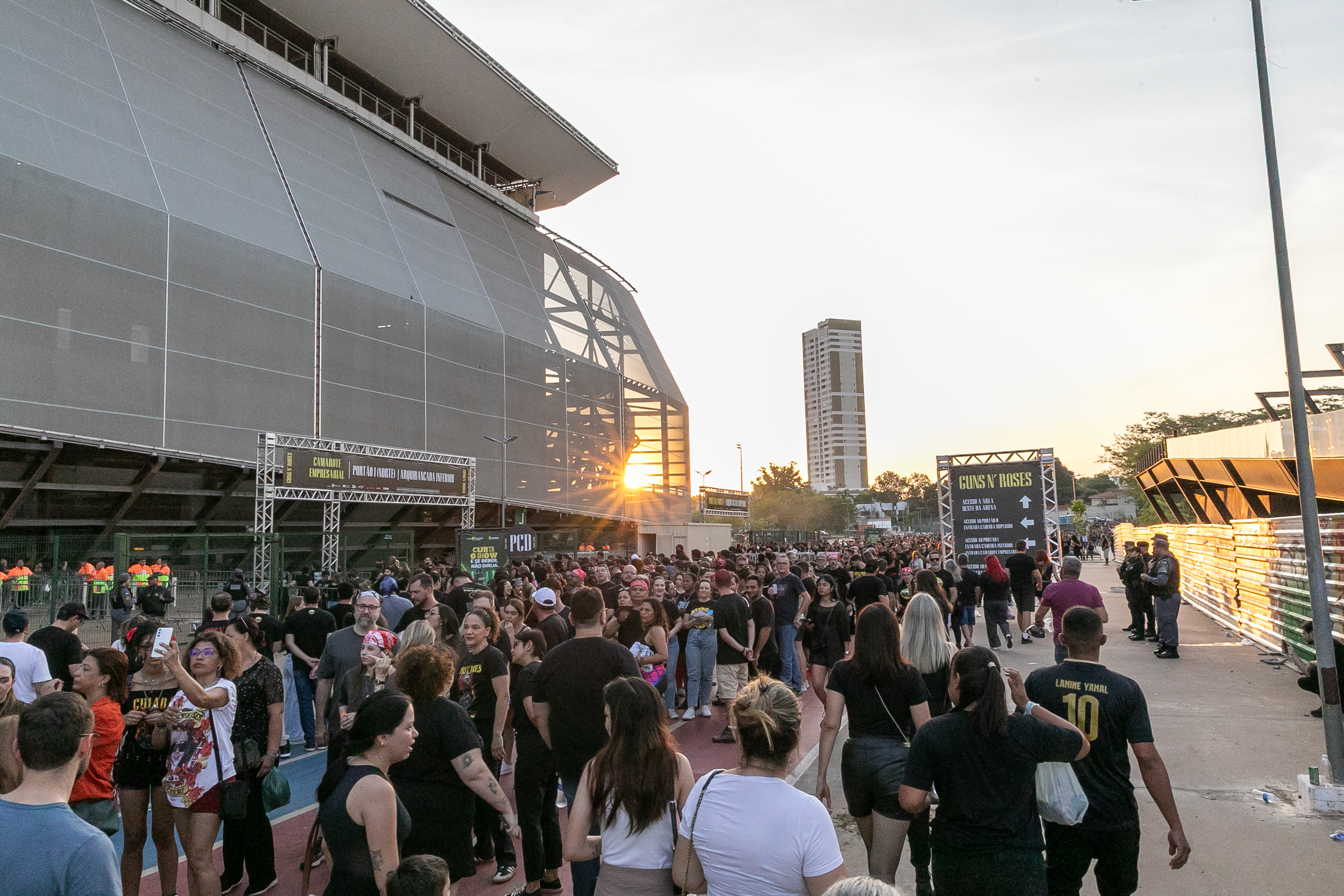 A Arena Pantanal foi tomada por uma multidão ansiosa para viver um momento histórico: o show da banda Guns N’ Roses, que reuniu fãs de diferentes idades e cidades do Estado, além de visitantes de Mato Grosso do Sul, Rondônia e Minas Gerais. As filas começaram a se formar bem cedo sob o calor cuiabano, misturando ansiedade, nostalgia e a alegria de quem esperava há anos por uma oportunidade como essa.