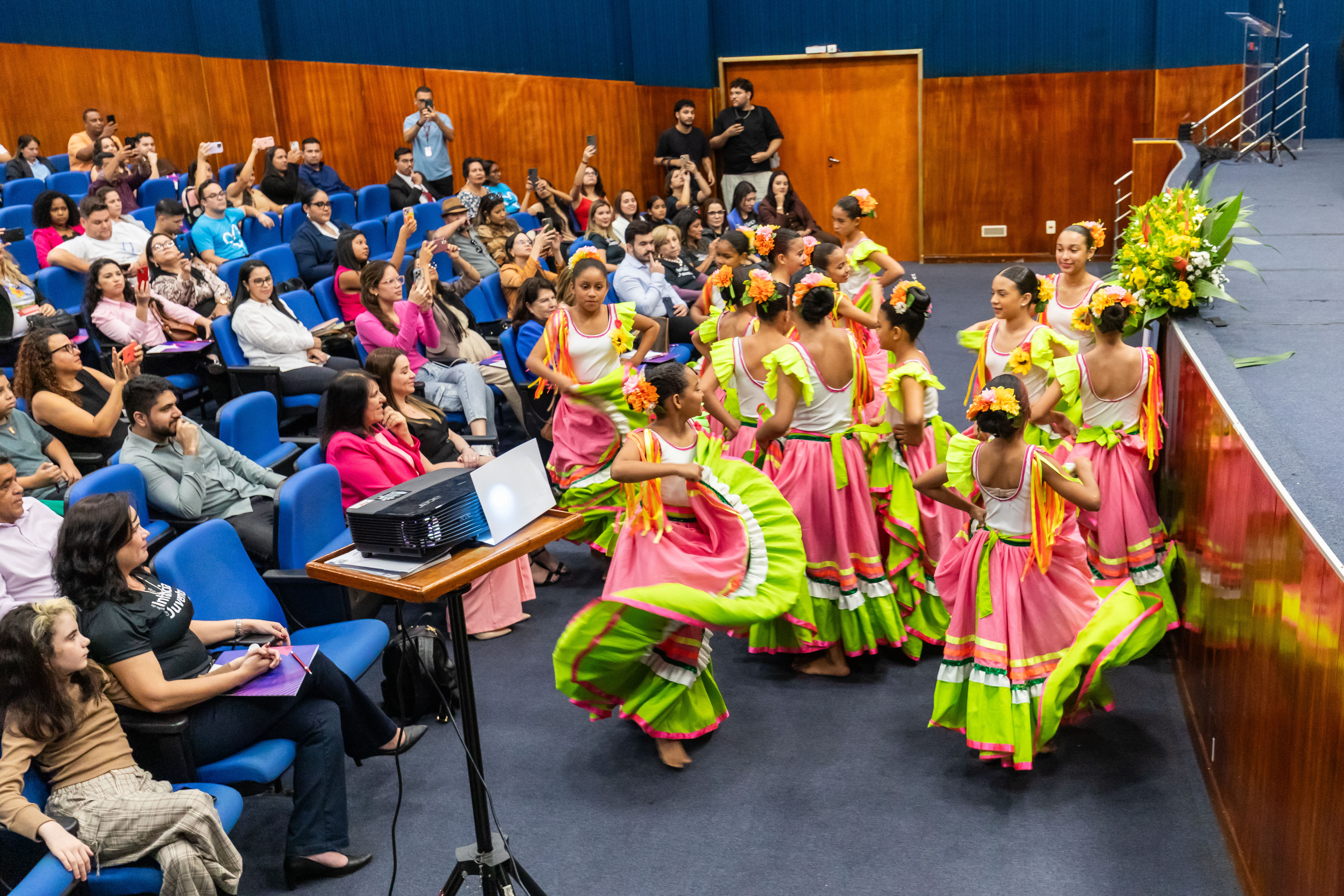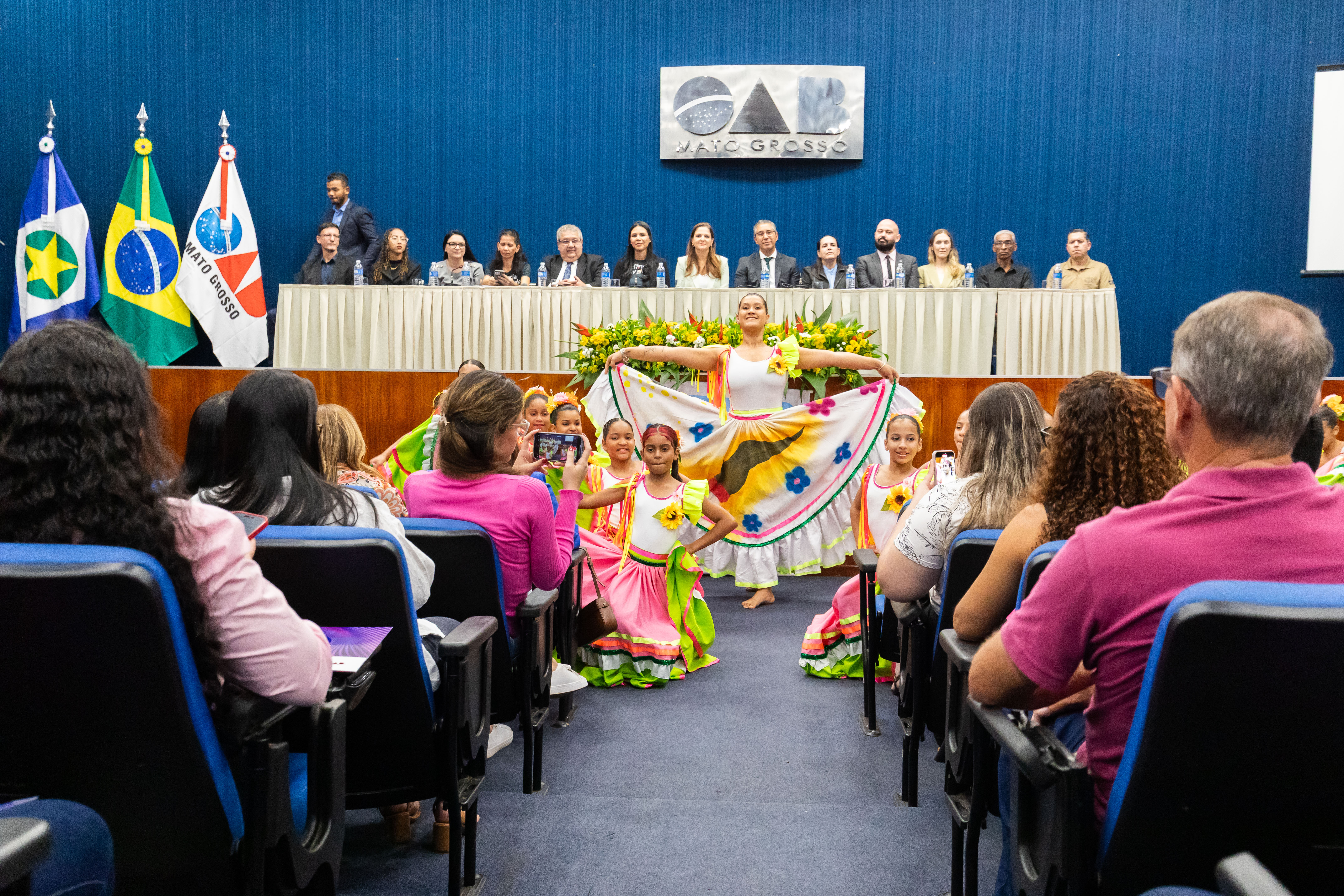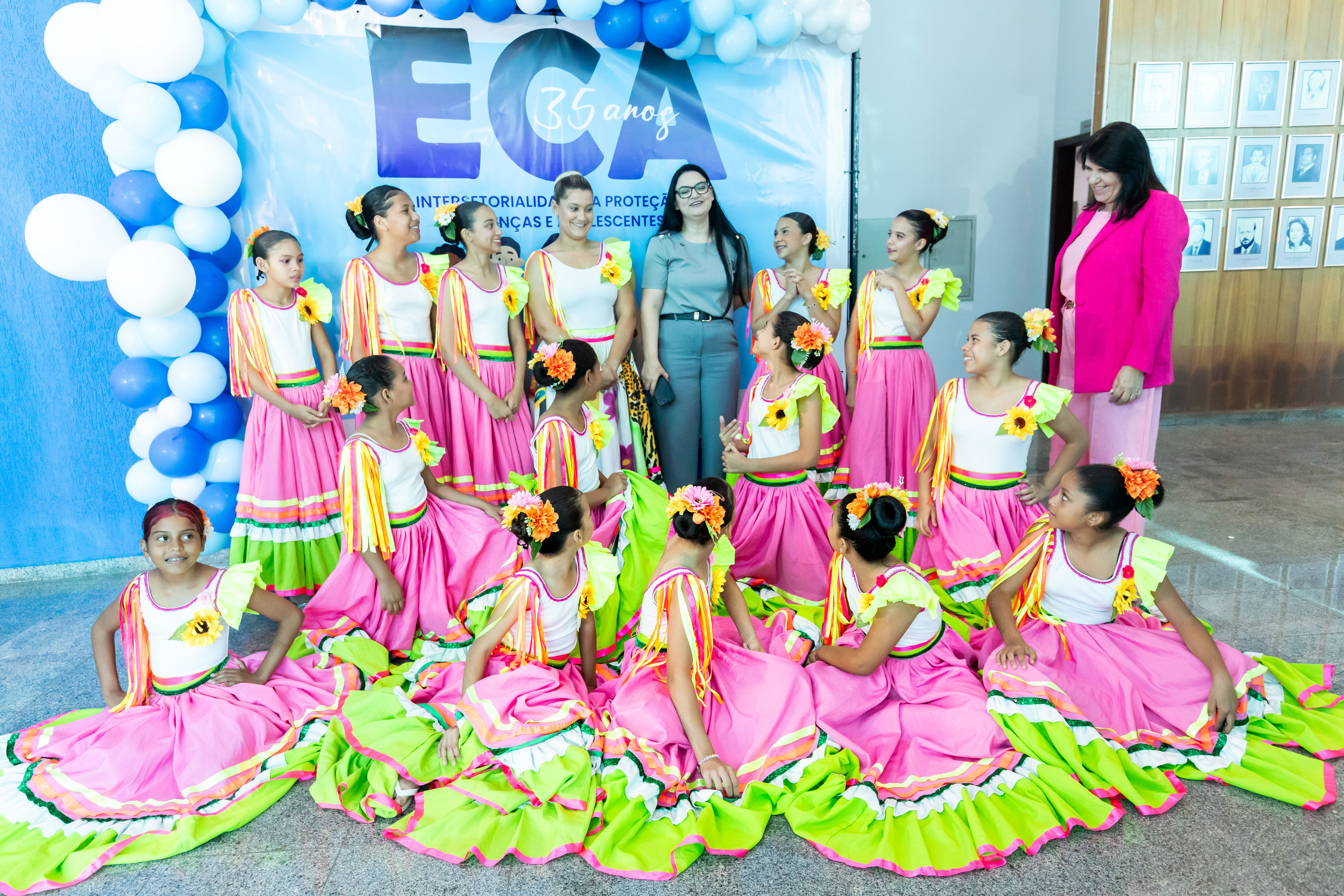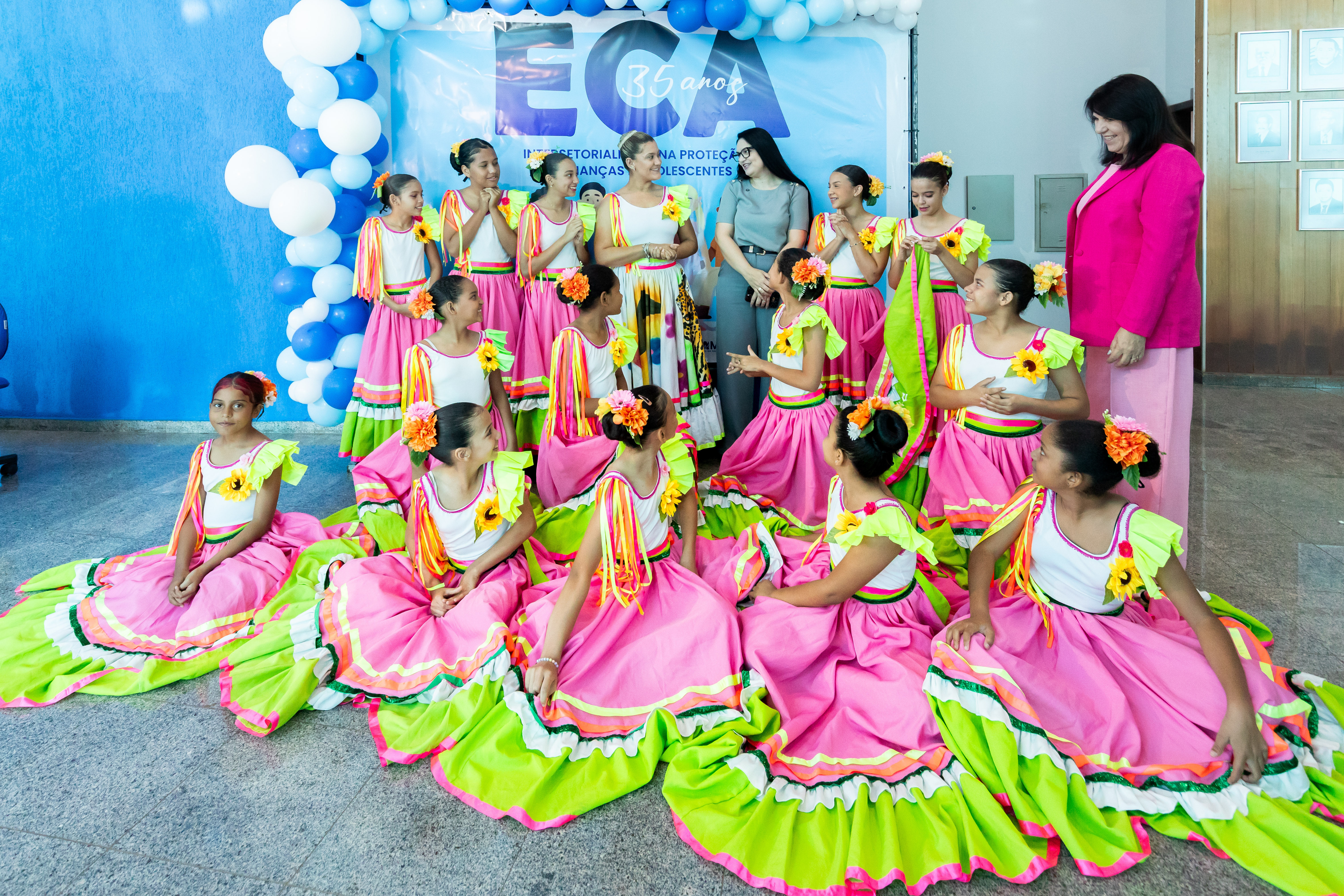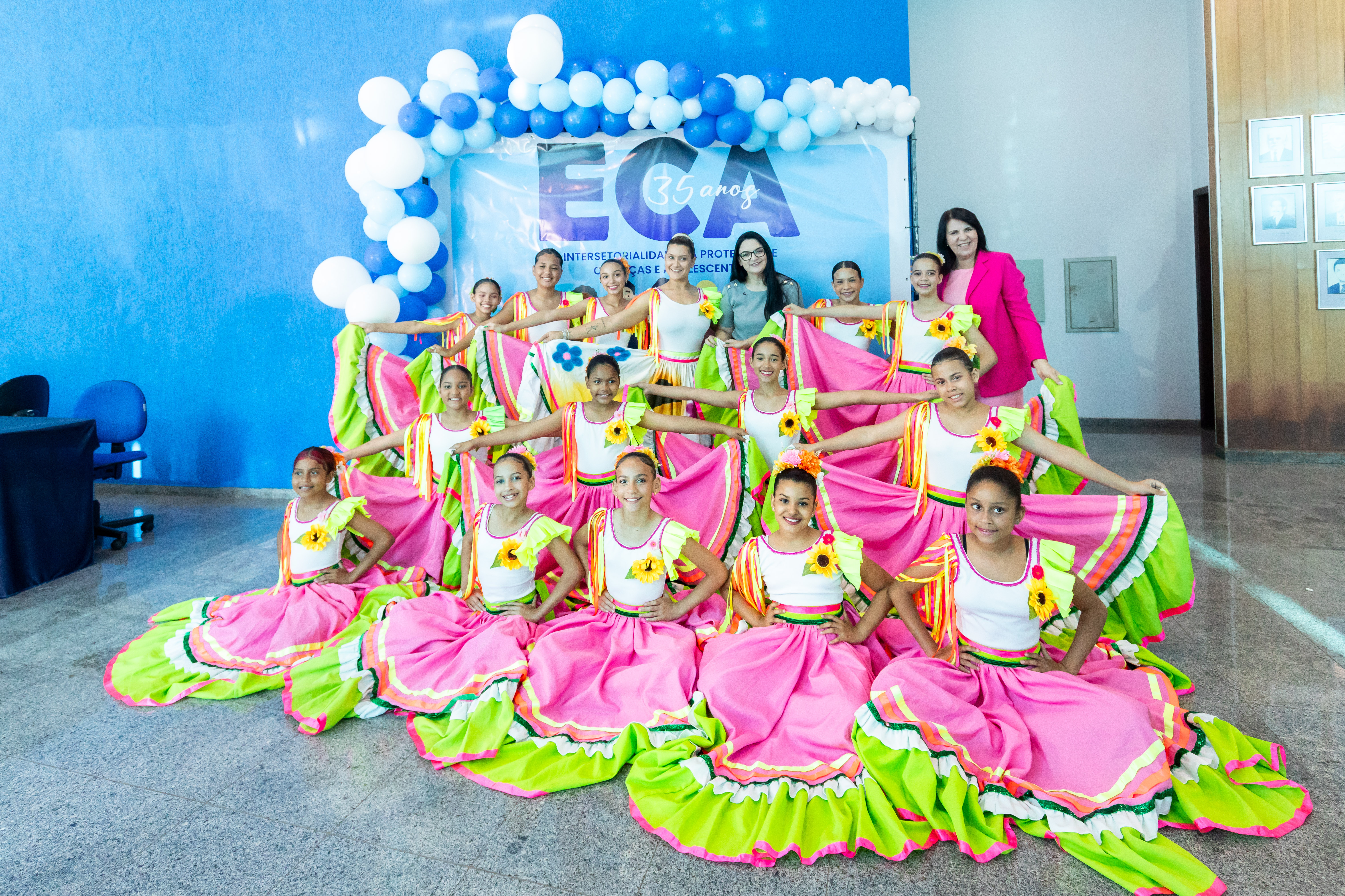 O grupo de dança do programa Simininas, da unidade do bairro Três Barras, e a primeira-dama e vereadora de Cuiabá, Samantha Iris, participaram da comemoração pelos 35 anos do Estatuto da Criança e do Adolescente (ECA), promovida pela Ordem dos Advogados do Brasil – Seccional Mato Grosso (OAB-MT).