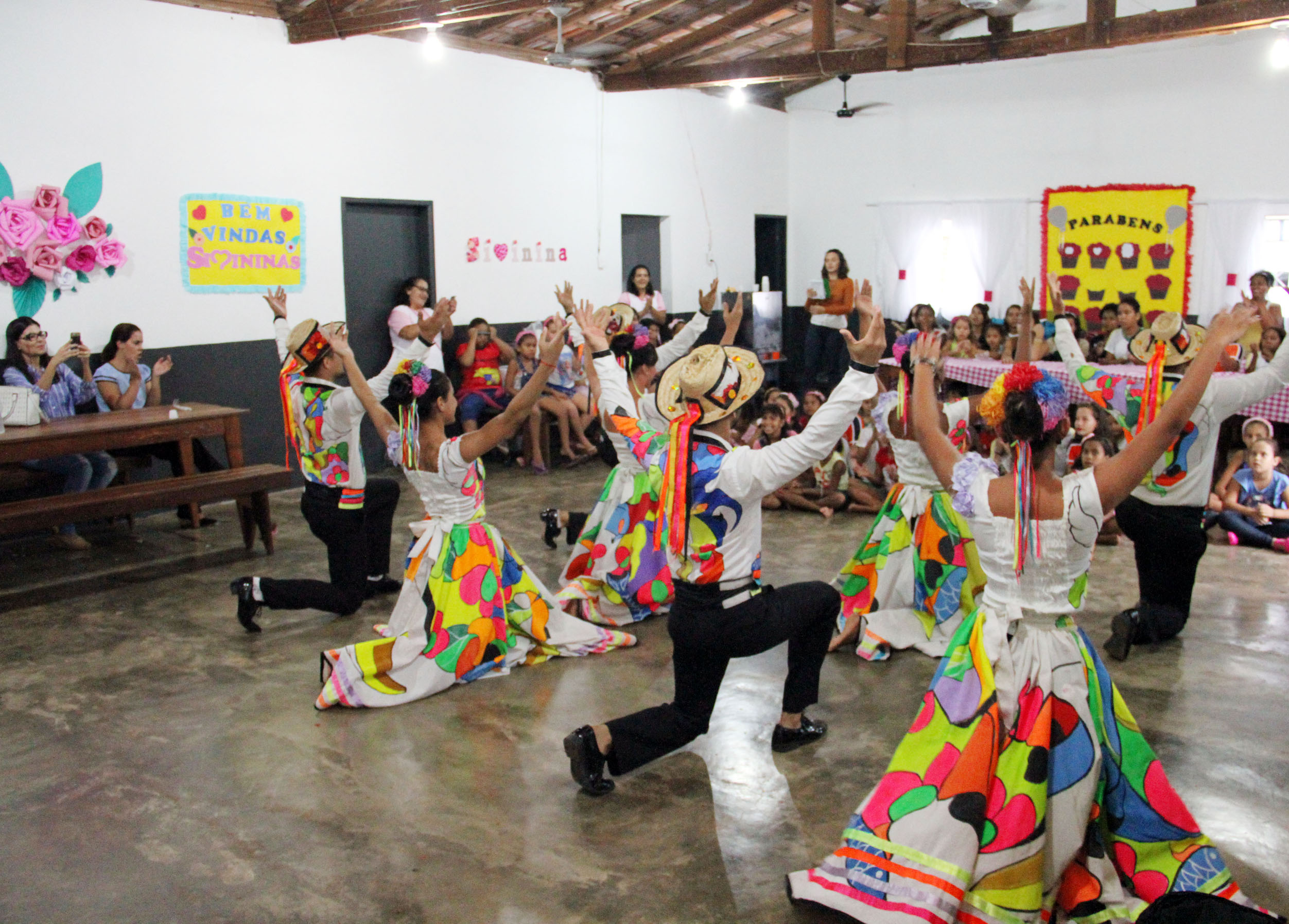 As 48 meninas atendidas pelo programa Siminina da unidade do Sucuri (zona rural da Capital), foram contempladas com uma tarde cheia de musicalidade nesta quarta-feira (21). Ao som do Siriri, as meninas assistiram a uma graciosa apresentação do tradicional grupo Flor Ribeirinha, que entoaram cinco belas canções, contagiando a plateia.