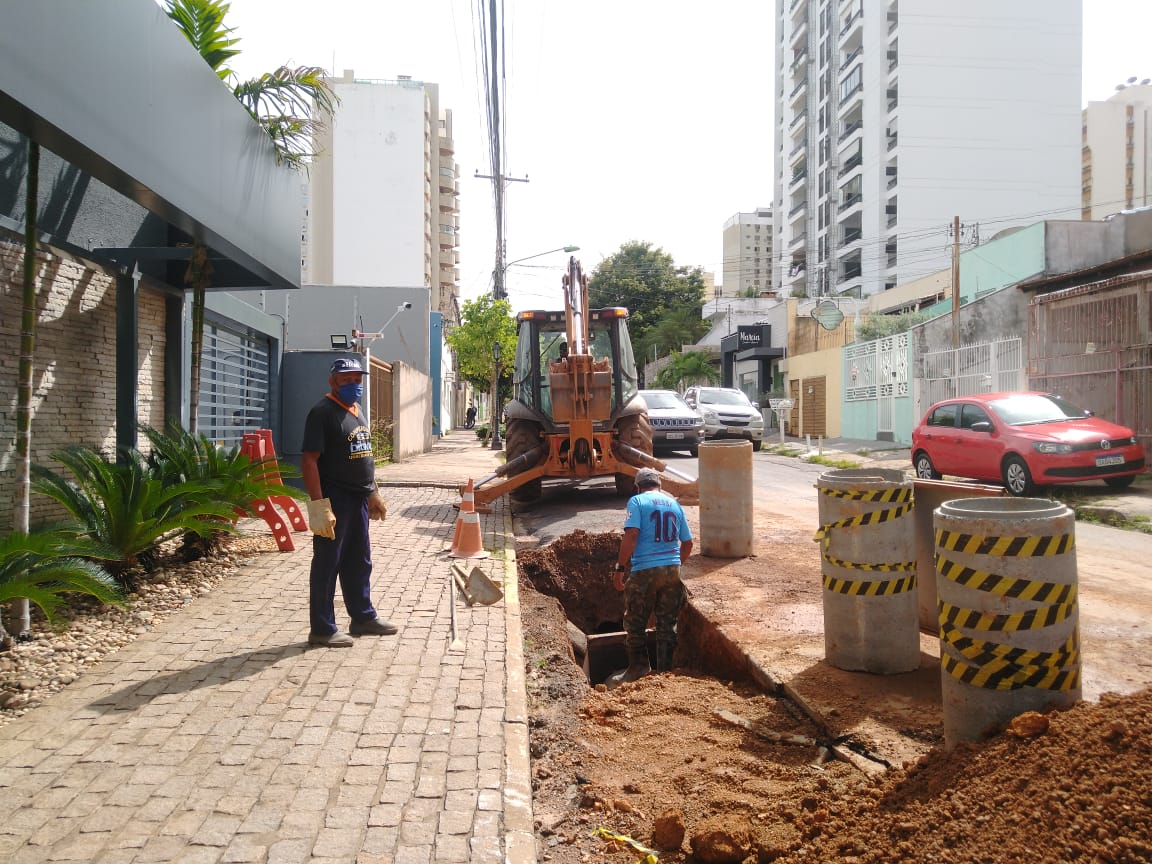 A Secretaria Municipal de Obras Públicas deve finalizar até o próximo sábado (13) a construção de uma nova rede de drenagem de águas pluviais na Rua Sírio Libanesa, situada no bairro Popular. Iniciada na semana passada, a intervenção é executada em um trecho de aproximadamente 100 metros da via que dá acesso às avenidas Dom Bosco e Isaac Póvoas.