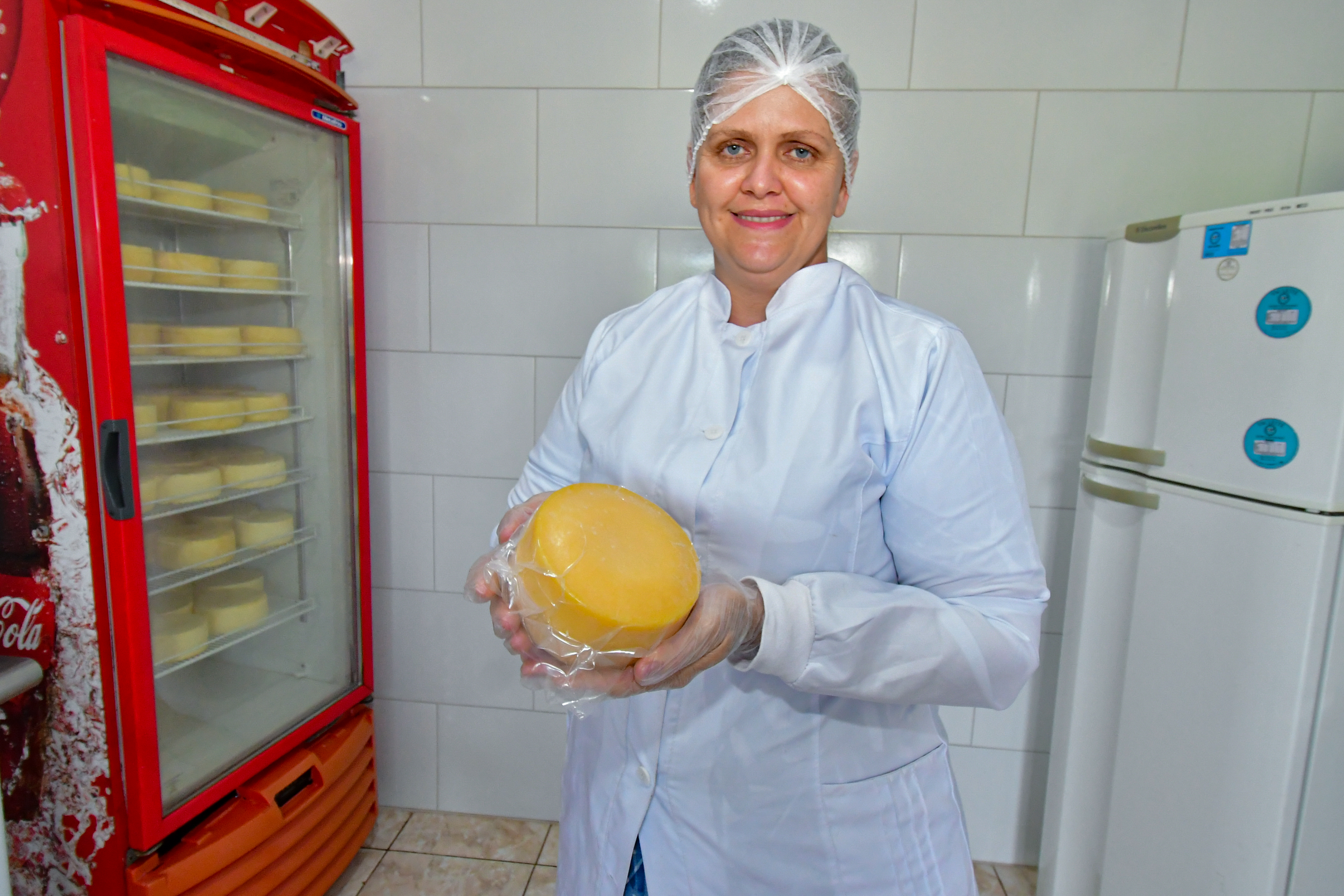 Vandecleia Prochnow é produtora da cadeia de leite, especializada em queijos maturados. Ela é uma das assistidas do programa Agro da Gente, implementado na gestão Emanuel Pinheiro, com o propósito de capacitar produtores rurais por meio de cursos e oficinas realizados nas comunidades e assentamentos, além de auxiliar na regularização necessária para a comercialização de produtos provenientes da agricultura familiar.
