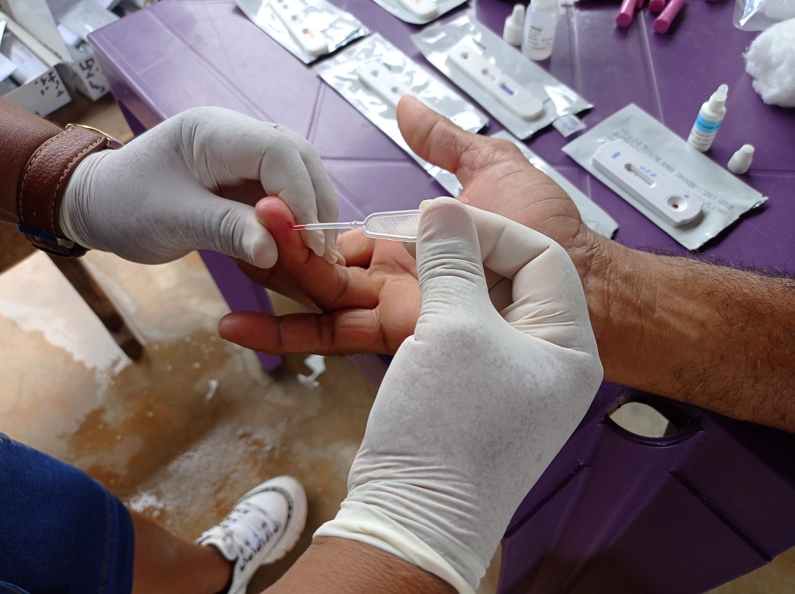 Janeiro Roxo, mês voltado ao combate da hanseníase, contou com amplas ações da Secretaria Municipal de Saúde (SMS) em diversas Unidades Básicas de Saúde (UBS) da área urbana e rural. Definidas como 'Dia D', as iniciativas priorizaram a informação sobre a doença com o objetivo de desmistificar, combater o preconceito e verificar a possibilidade de novos casos. Na microrregião de Terra Vermelha, situada há 18 km do Distrito da Guia, a ação aconteceu na sexta-feira (27), resultando em mais de cem procedimentos realizados, só de testes rápidos, foram 52. Mesmo com o tempo chuvoso daquele dia, os moradores da região não se intimidaram e compareceram para realizar consulta médica com clínico geral, atualizar o cartão de vacinas, aferir pressão, verificar a glicemia, realizar testes rápidos (Hepatite B, Sífilis, HIV), e receber esclarecimentos sobre o Janeiro Roxo, que tem a hanseníase como foco.