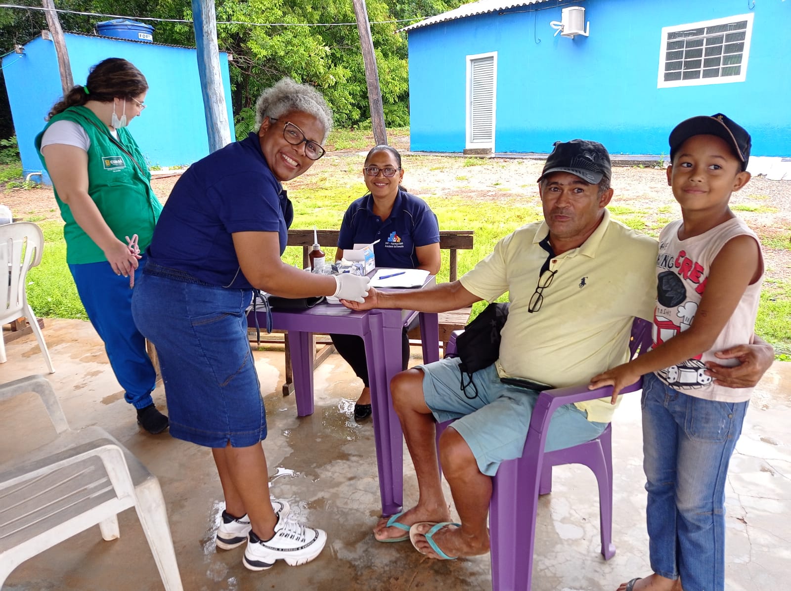 O casal Eugênio Soares de Arruda, 75 anos, e Eremir Martinho de Arruda, 67 anos, são fundadores da igreja Sagrado Coração de Jesus, da comunidade Terra Vermelha, que agrega o galpão onde o Dia D aconteceu. Ele nasceu nas terras da região, mora na beira do rio Taquaral, um pouco distante do local da ação, e se diz muito grato pela atenção que recebe da equipe. “Sempre participo quando a equipe da saúde vem aqui e enquanto eu puder venho para ver se está tudo bem. A gente precisa se cuidar, conheço amigos que só foram buscar atendimento tarde demais”, revelou Eugênio.