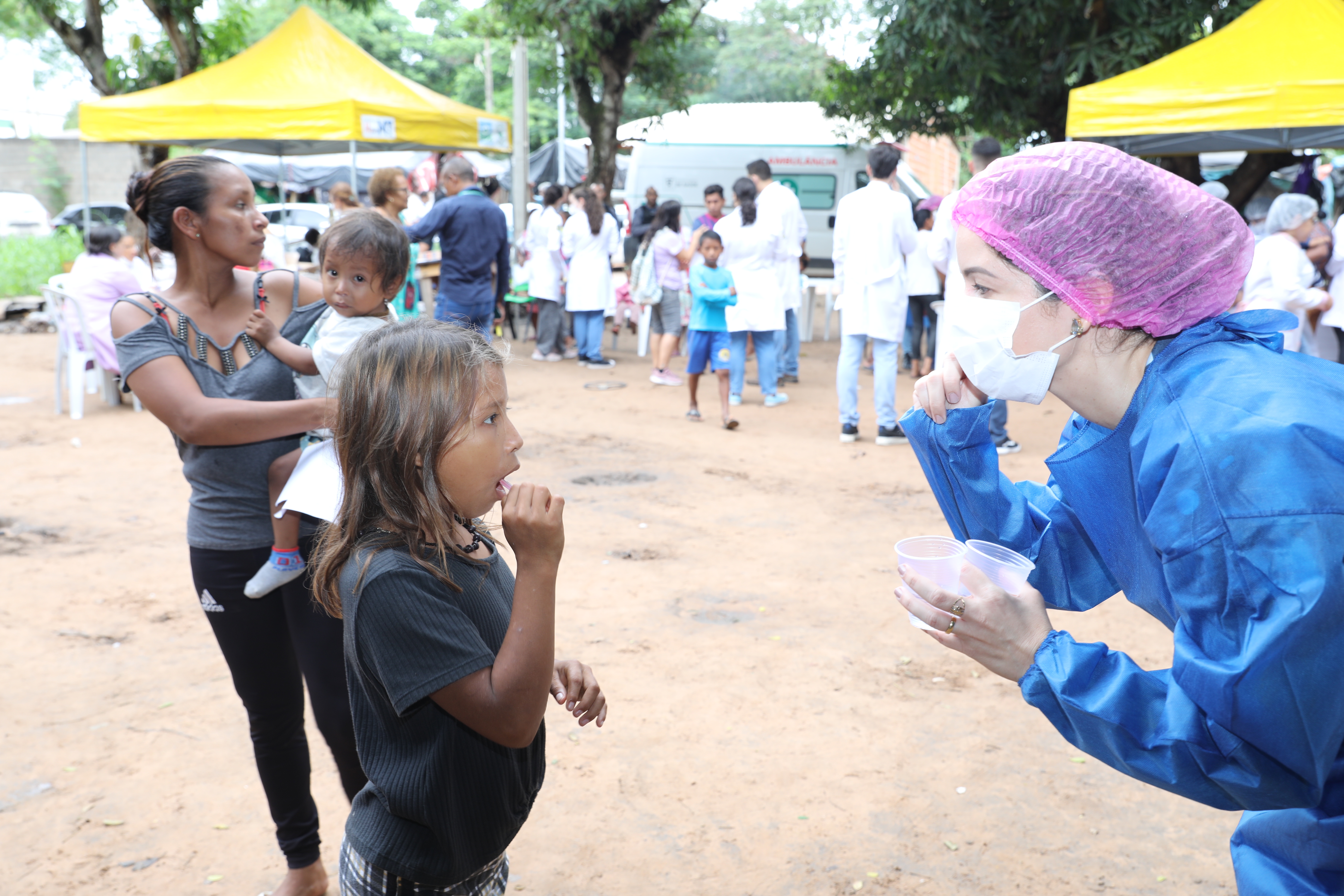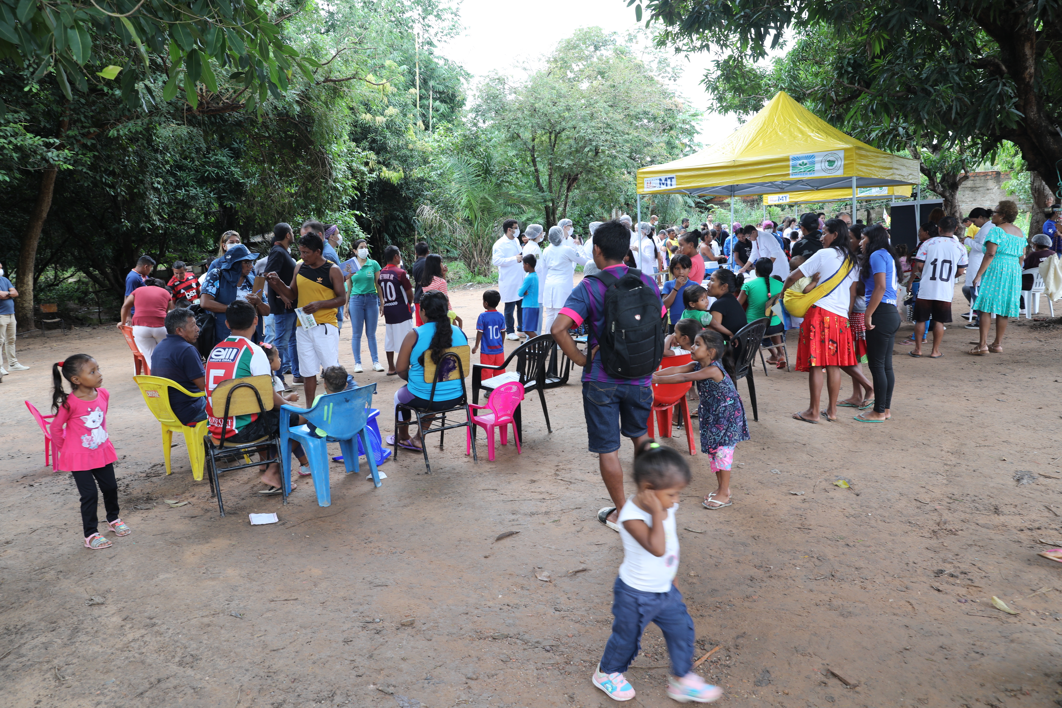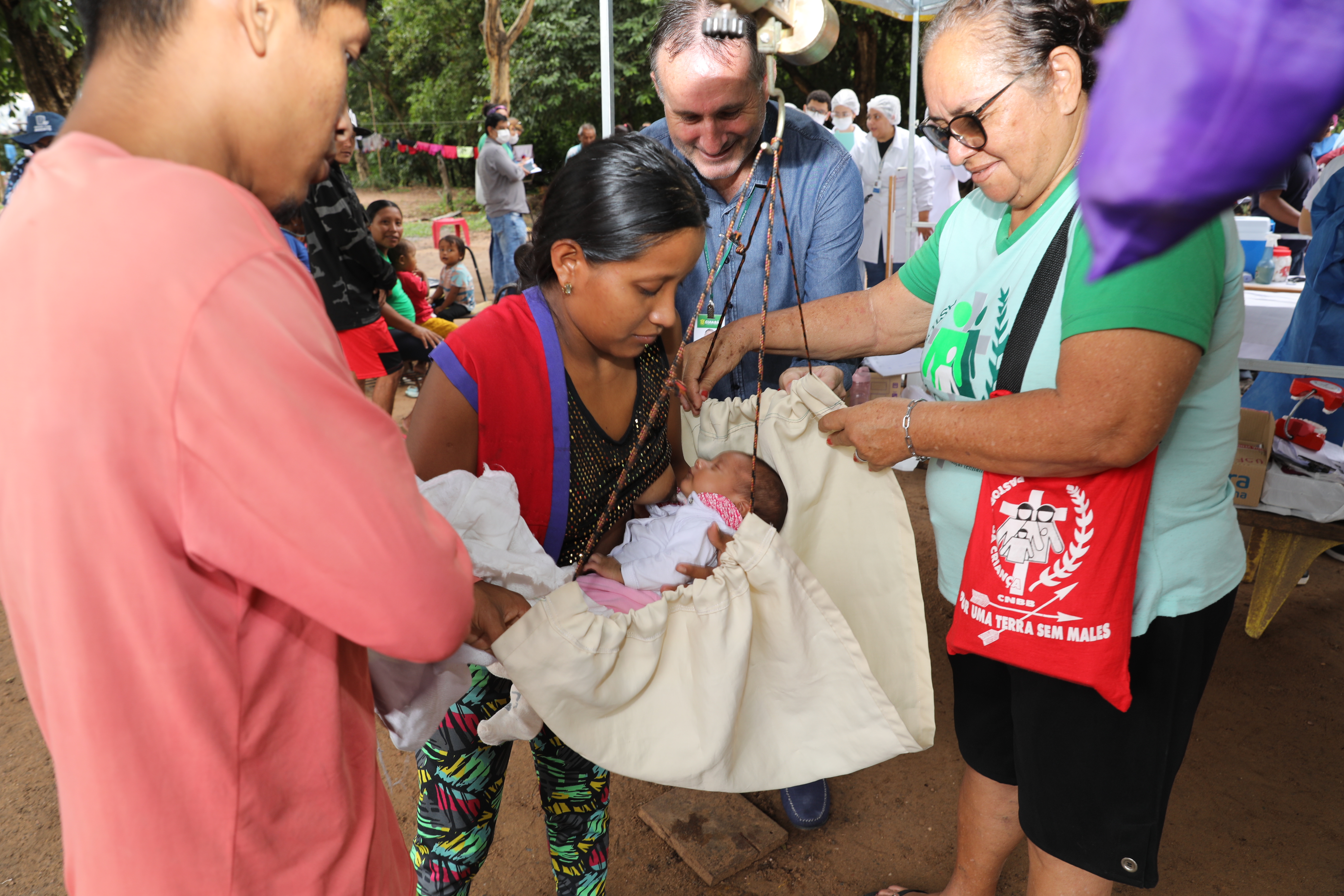 Duas crianças foram encaminhadas à unidades de saúde e passaram pela consulta médica. Também foi atendido no local, um bebê, uma menina que está com 30 dias. Ela ganhou peso, nasceu com 3,1 kg e está com 3,7 kg. A criança ganhou fraldas das equipes de saúde.