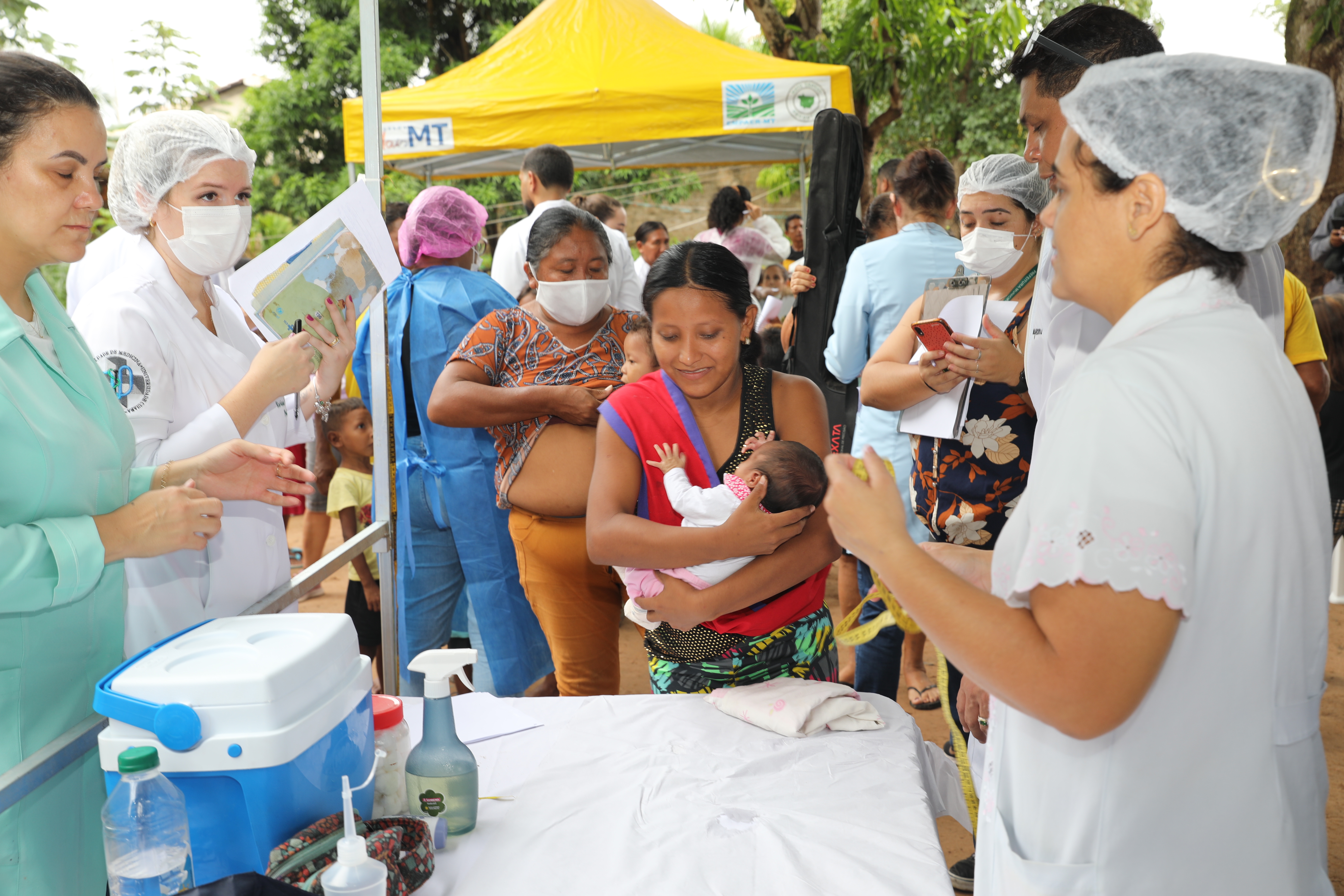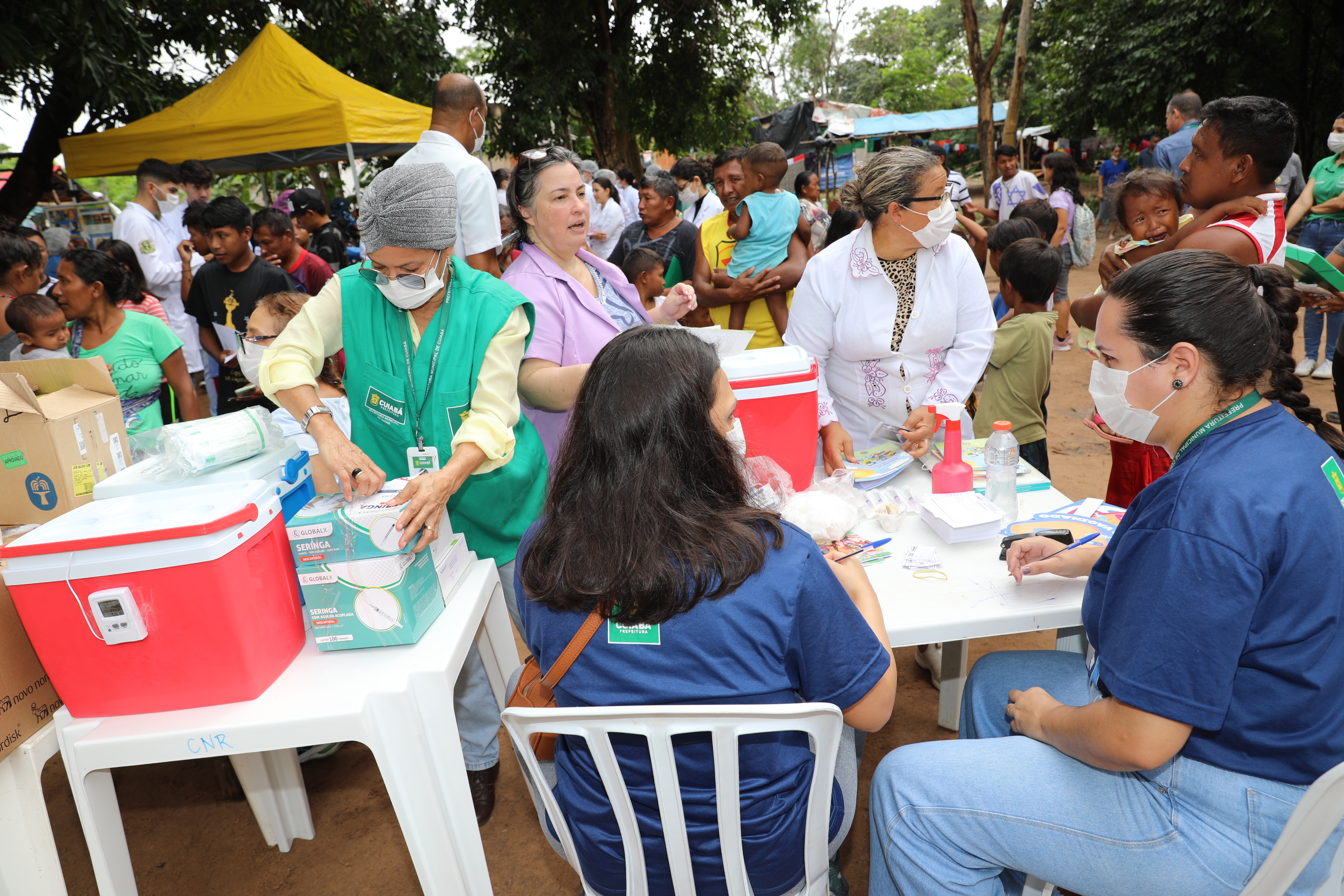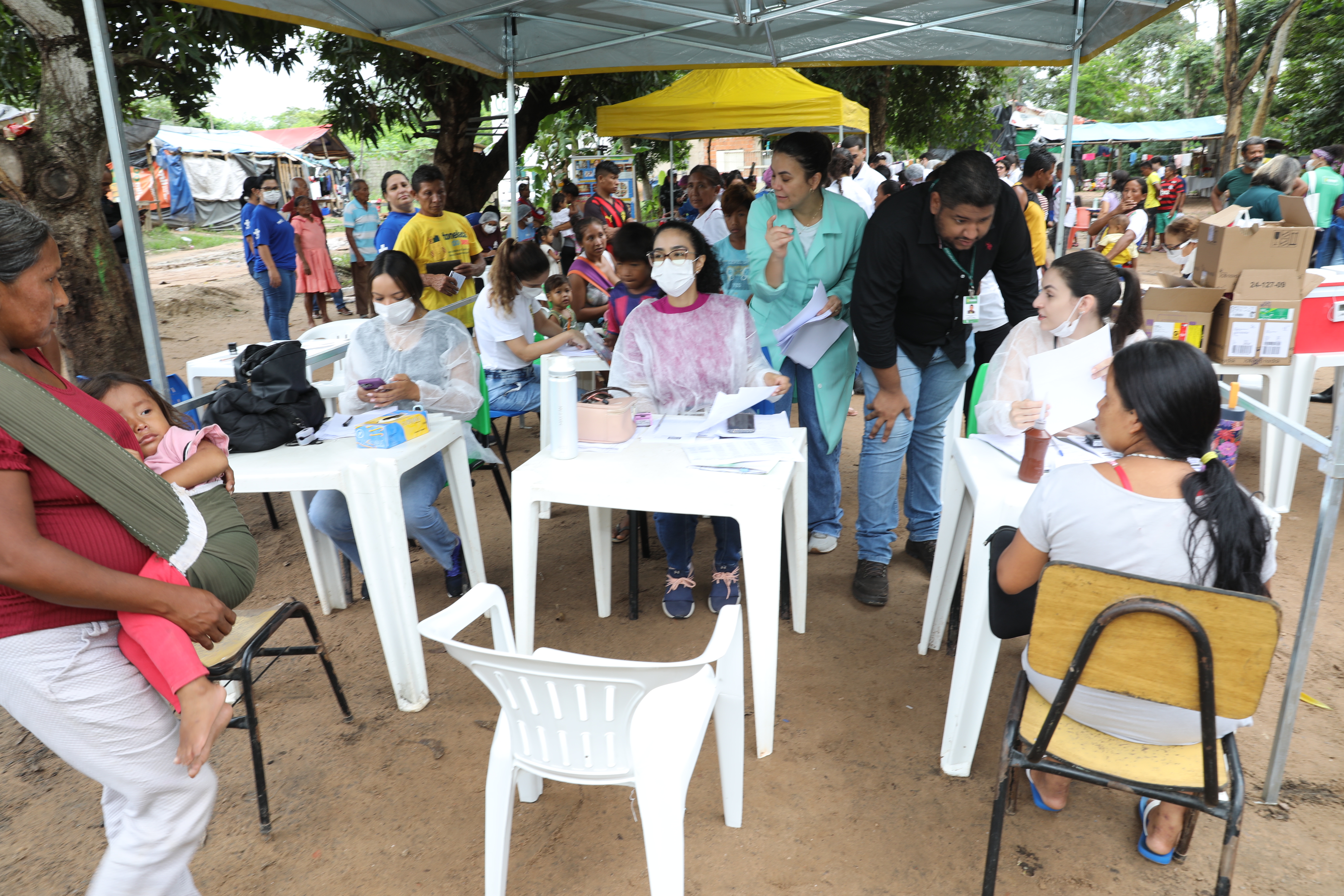 Mais de 40 profissionais foram mobilizados pela Secretaria Municipal de Saúde (SMS) para atender as famílias venezuelanas da etnia Warao, em Cuiabá. O atendimento começou logo cedo nesta quarta-feira (17), priorizando crianças e adolescentes. Aproximadamente 300 pessoas vivem na região do Parque Ohara, sendo que cerca de 89 são crianças e adolescentes. Além da equipe multidisciplinar com pediatra, nutricionista, assistente social, fisioterapeuta e enfermeiros, e responsáveis técnicos (RT) de imunização e dos povos indígenas, das Unidades de Saúde da Família (USF) do bairro Parque Ohara e do bairro Tijucal e da SMS, também formandos do curso de Medicina da Universidade de Cuiabá participam da ação.
