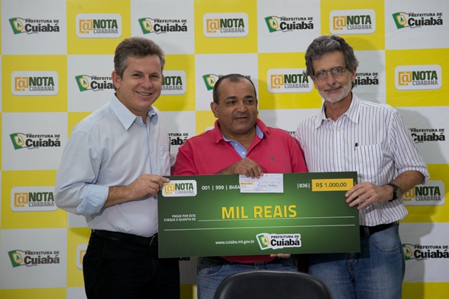 O prefeito Mauro Mendes entregou na manhã de hoje (19) o prêmio da Nota Cuiabana aos 32 ganhadores do sorteio de fevereiro, que juntos dividiram R$ 45 mil. Até o final do ano serão distribuídos ainda R$ 325 mil em prêmios.