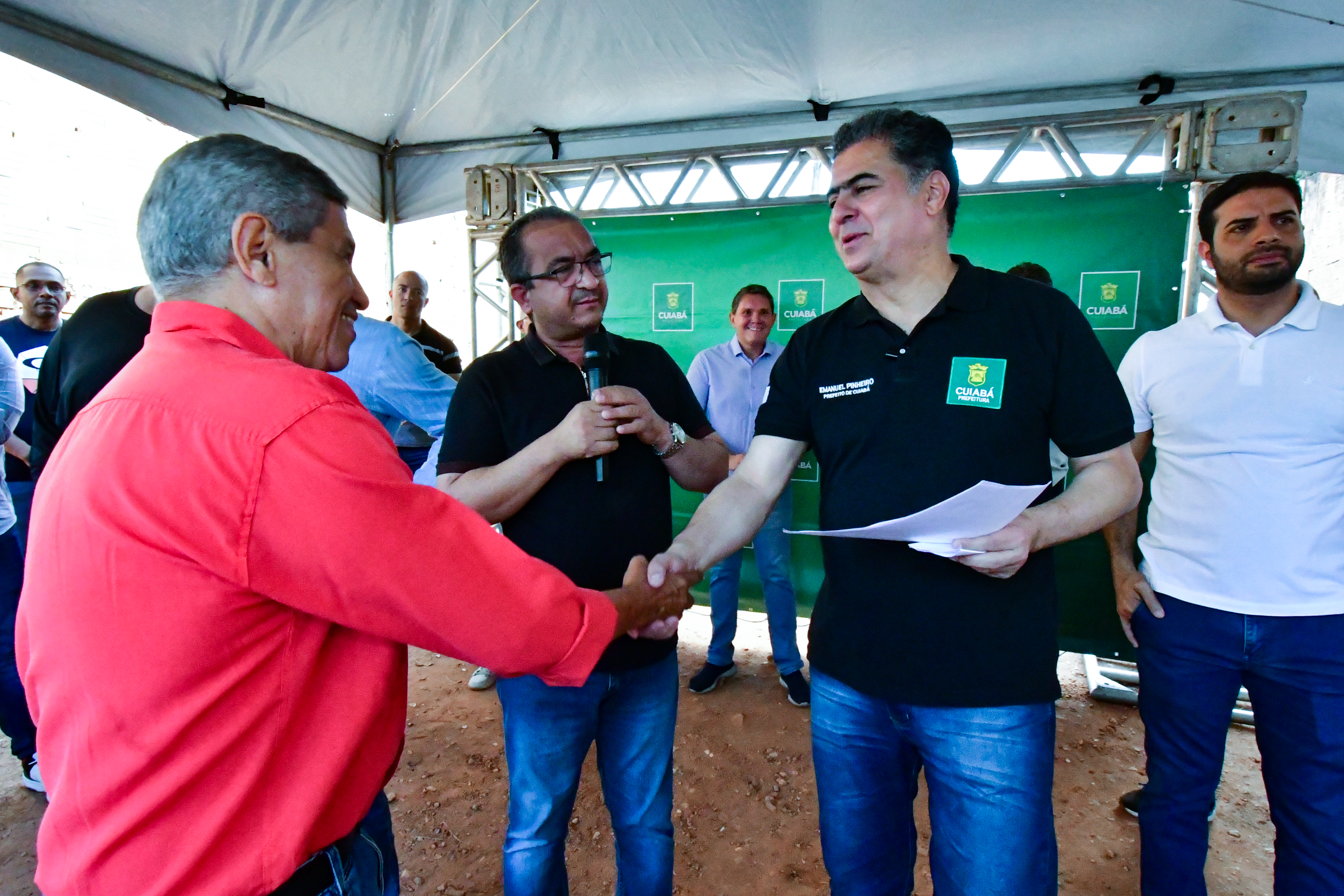 “Eu sou um prefeito que tem o coração na ponta da caneta”. Foi com essa definição que o prefeito de Cuiabá, Emanuel Pinheiro, determinou o início da obra de pavimentação asfáltica do bairro 8 de Abril, na manhã desta sexta-feira (5). Mais do que uma assinatura para ordem de serviço que terá um aporte de R$ 2,6 milhões, os moradores presenciaram a edificação de um sonho.