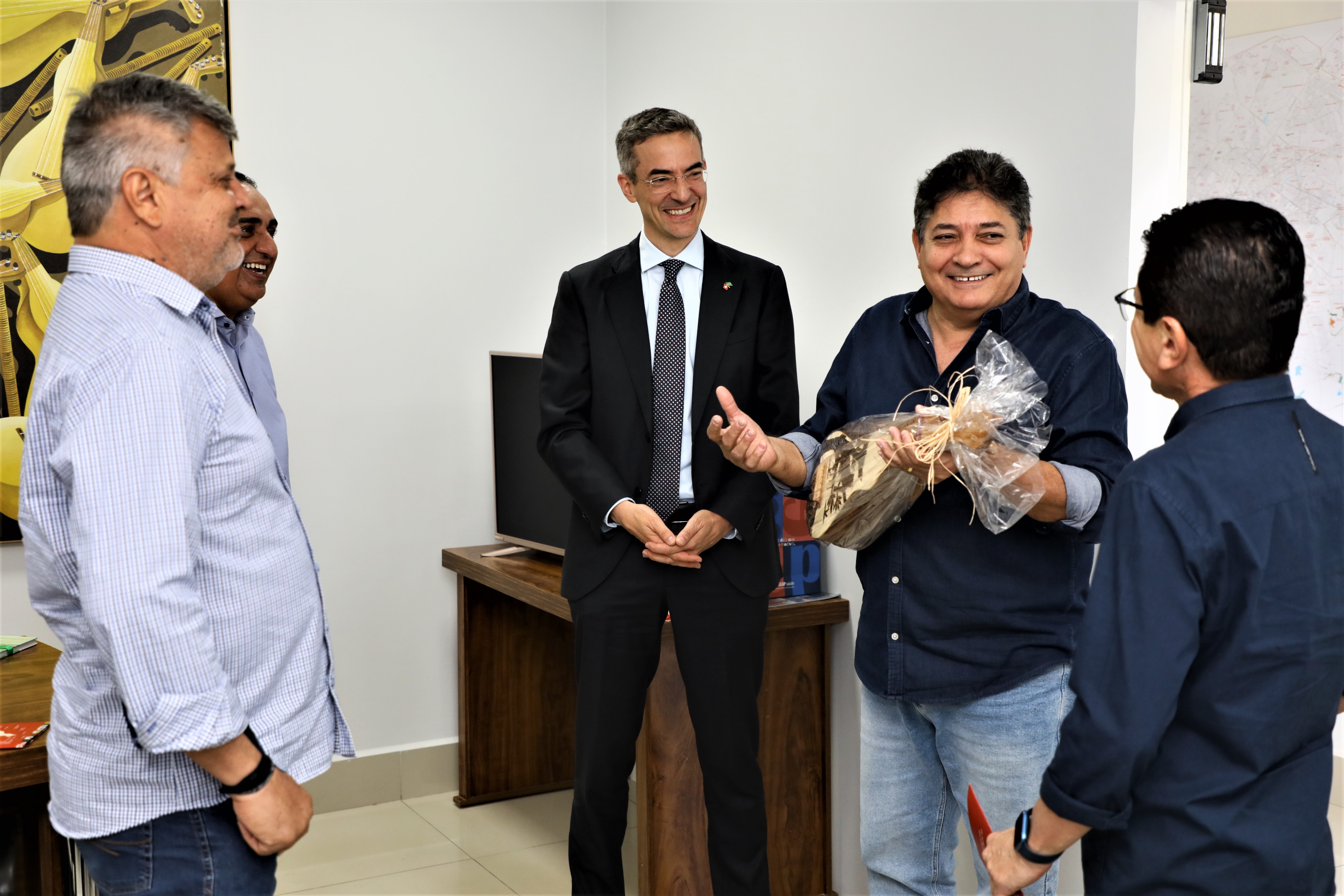 O vice-prefeito de Cuiabá, José Roberto Stopa, debateu com o cônsul-geral da Suíça, Pierre Hagmann, possibilidades de formalizar parcerias com empresas do país europeu para investimento em energia limpa na capital de Mato Grosso. O assunto fez parte de uma reunião de intercâmbio realizada, nesta quinta-feira (3), no Palácio Alencastro.