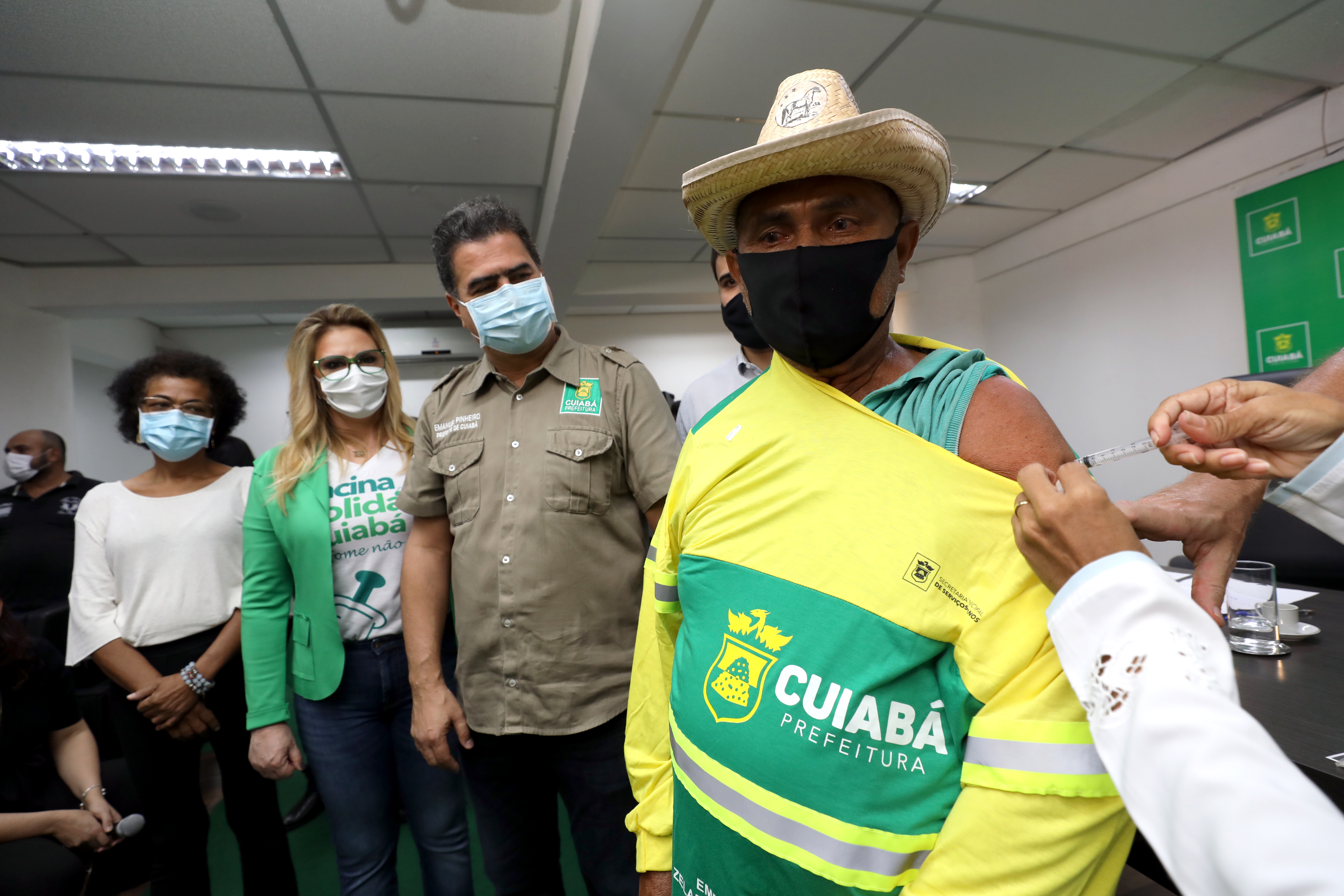 A Prefeitura de Cuiabá, por meio da Secretaria Municipal de Saúde (SMS) em parceria com a Empresa Cuiabana de Zeladoria e Serviços Urbanos (Limpurb), começa a vacinar nesta quinta-feira (13), os trabalhadores da limpeza urbana, garis (que fazem a coleta de lixo) e catadores de recicláveis, dando continuidade à campanha “Vacina Cuiabá – sua vida em primeiro lugar”, de imunização contra a Covid-19.