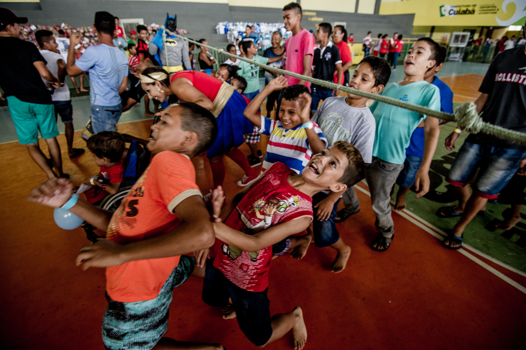 Super-heróis e brincadeiras marcam o Natal Luz de crianças de Cuiabá