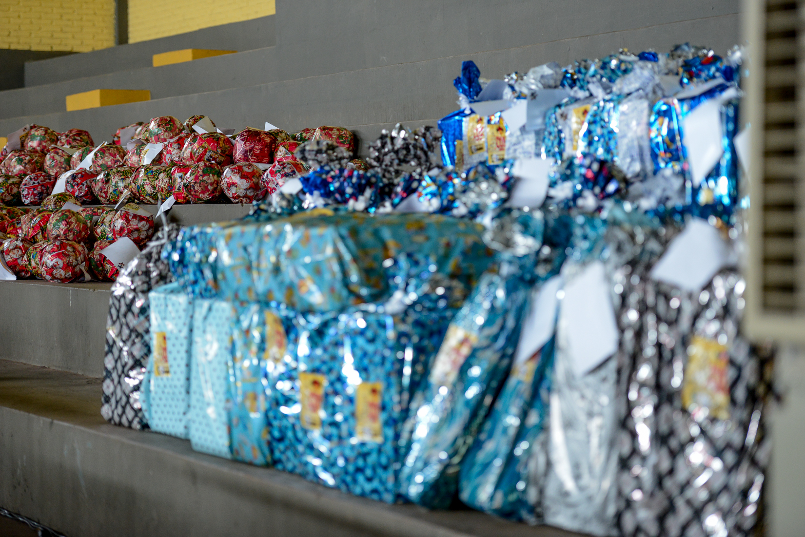 O fim do ano teve sabor de algodão-doce, cachorro-quente e muitas outras guloseimas para os quase 2 mil meninos atendidos pelos programas sociais da Prefeitura de Cuiabá. Nesta quinta-feira (18), eles puderam aproveitar o dia ensolarado dando muitas risadas e se divertindo no Ginásio Dom Aquino.