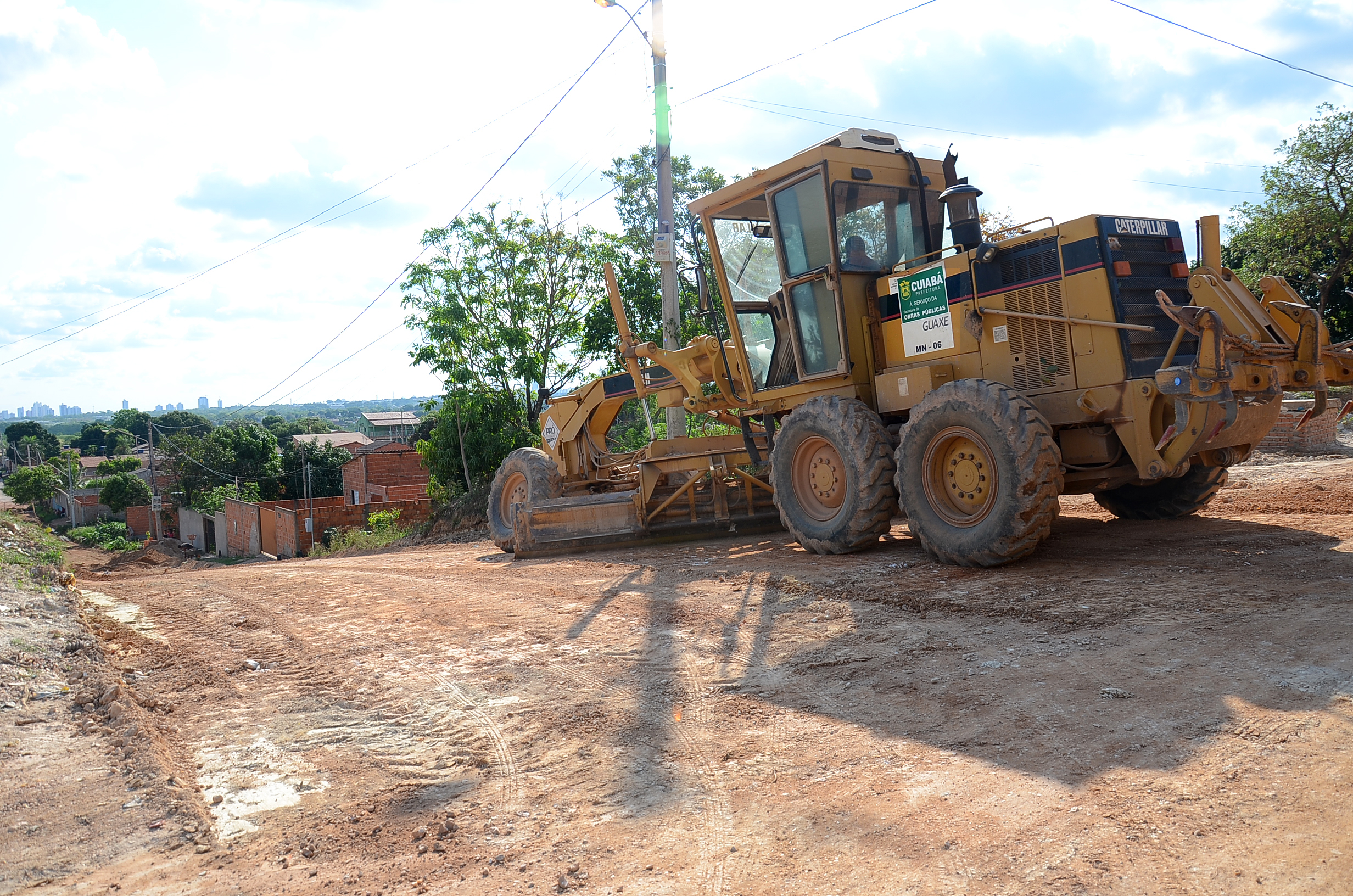 De fundamental importância para o seguimento da obra de pavimentação, a etapa de terraplanagem das vias, executada pela Prefeitura de Cuiabá, chega ao bairro Altos da Serra II. Com uma equipe formada por mais de 30 operários, o serviço avança ao longo das ruas da comunidade e, conforme o cronograma da atividade, já alcançou o índice de mais de 51% do trabalho concluído.