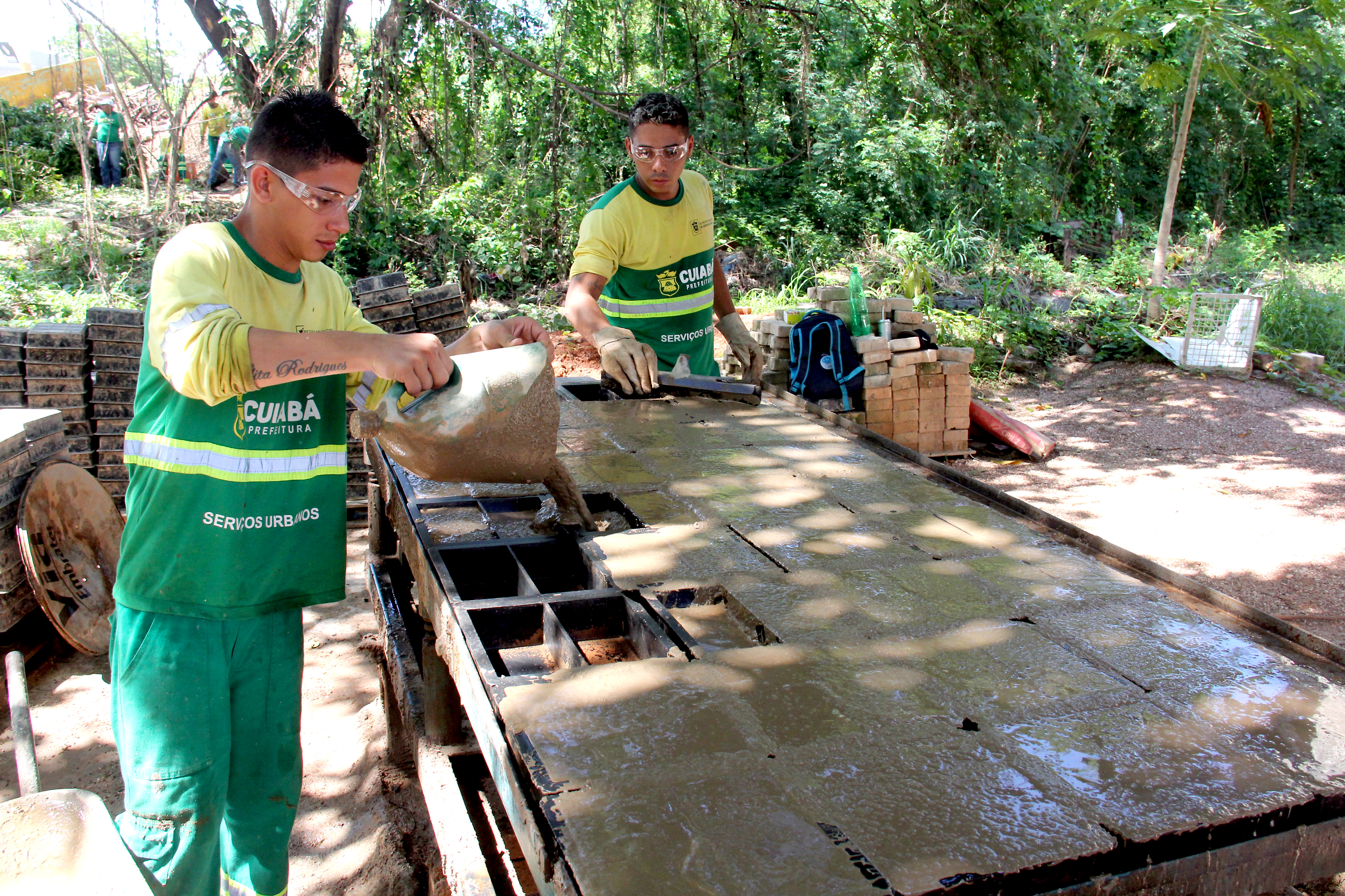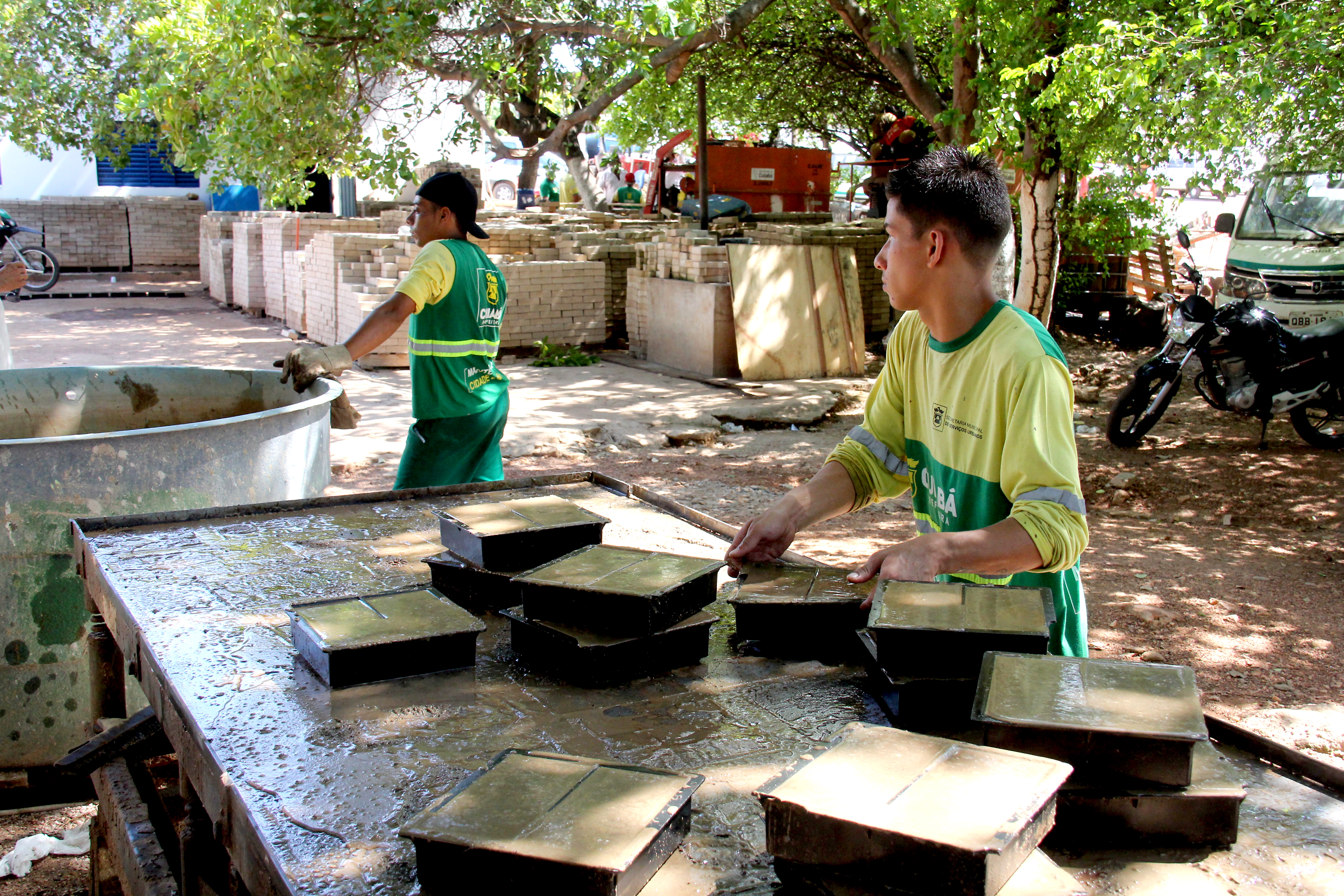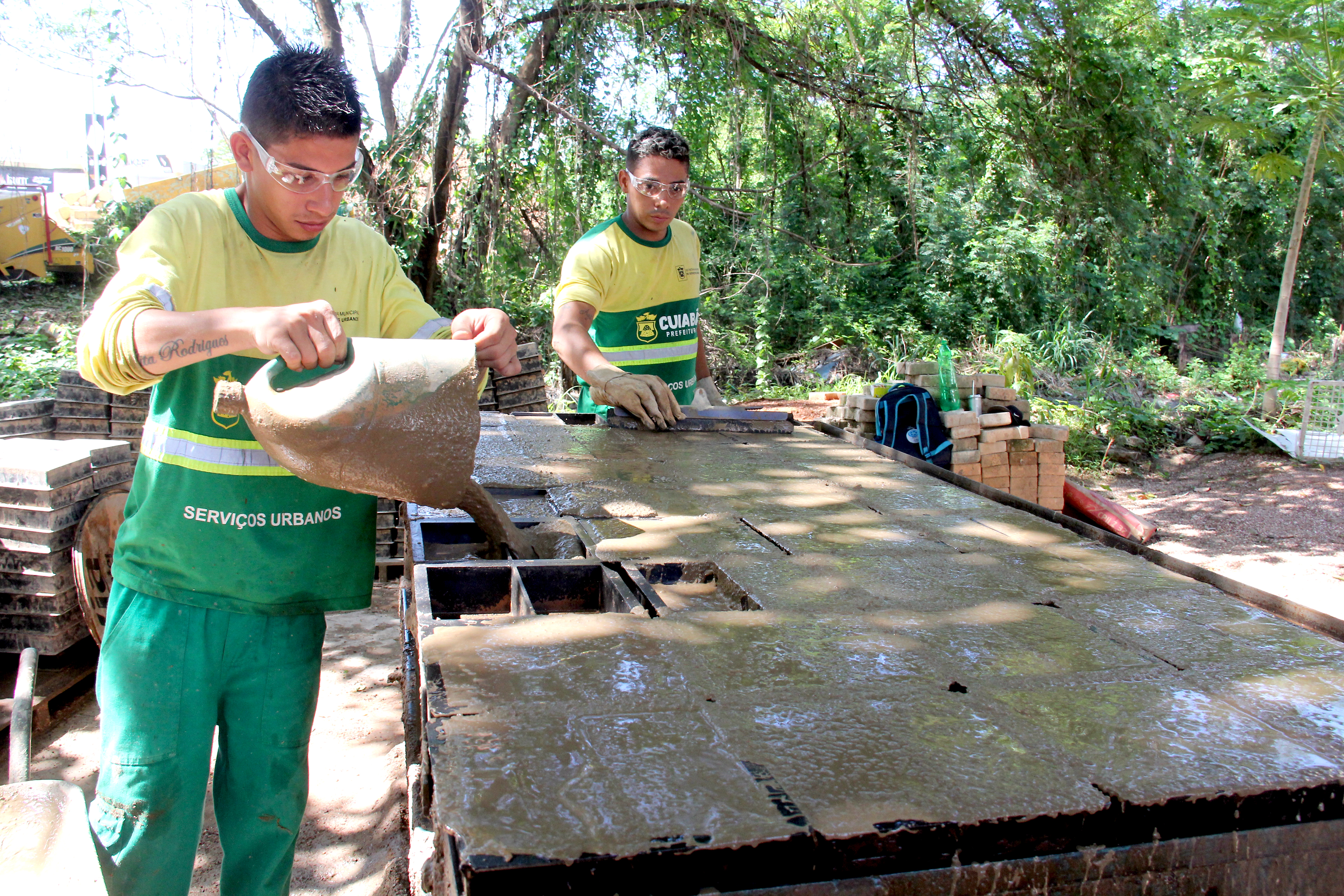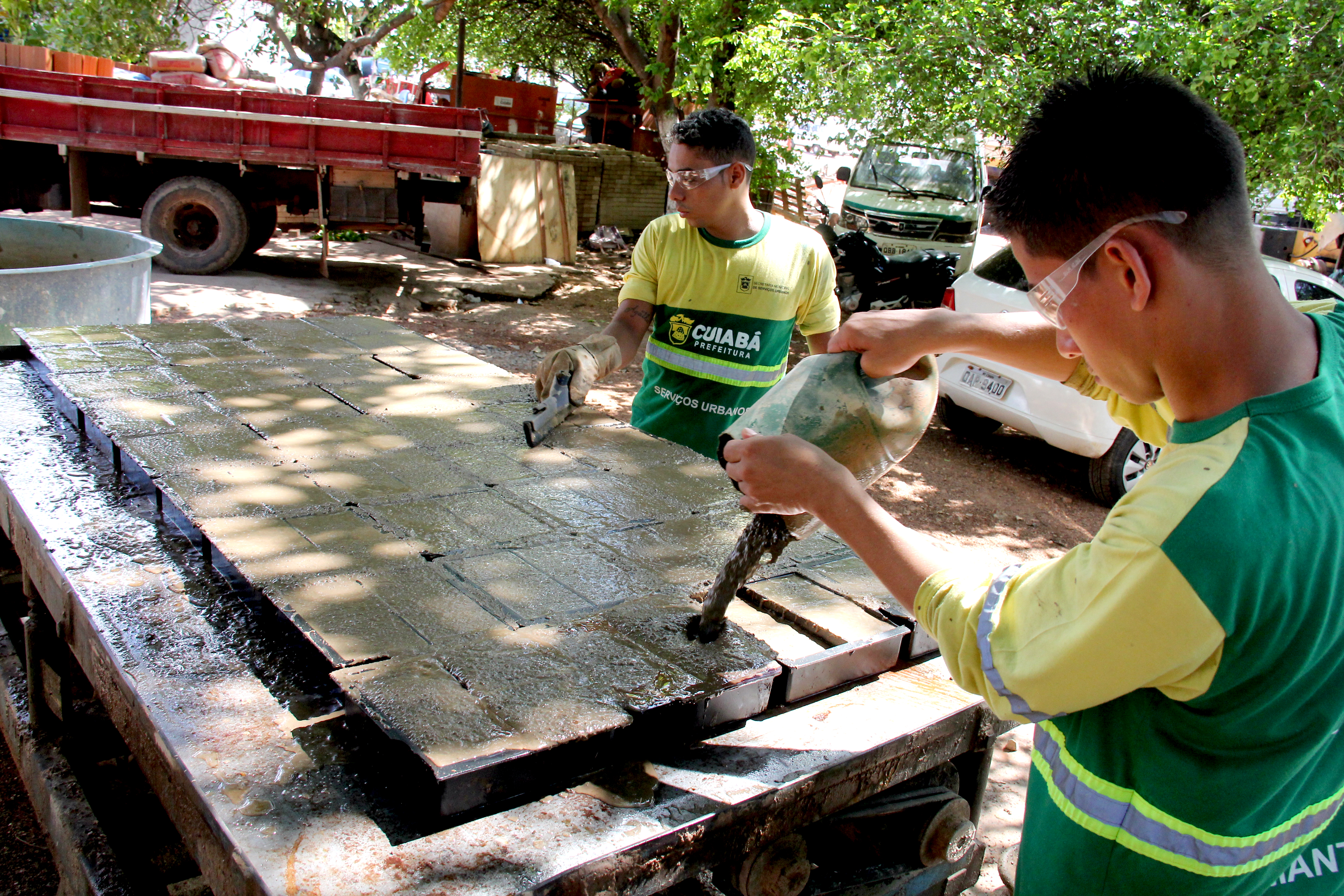 Cimento, areia, água, e uma porção diária de empenho e dedicação. Essa é a fórmula de sucesso que tem gerado uma grande economia aos cofres do Município. A mistura, feita de segunda a sábado pelas mãos de quatro trabalhadores da Secretaria Municipal de Serviços Urbanos, tem resultado na produção de mais de 1.000 tijolos ecológicos, por dia, que são frequentemente utilizados nas revitalizações de praças e calçadões históricos de Cuiabá.