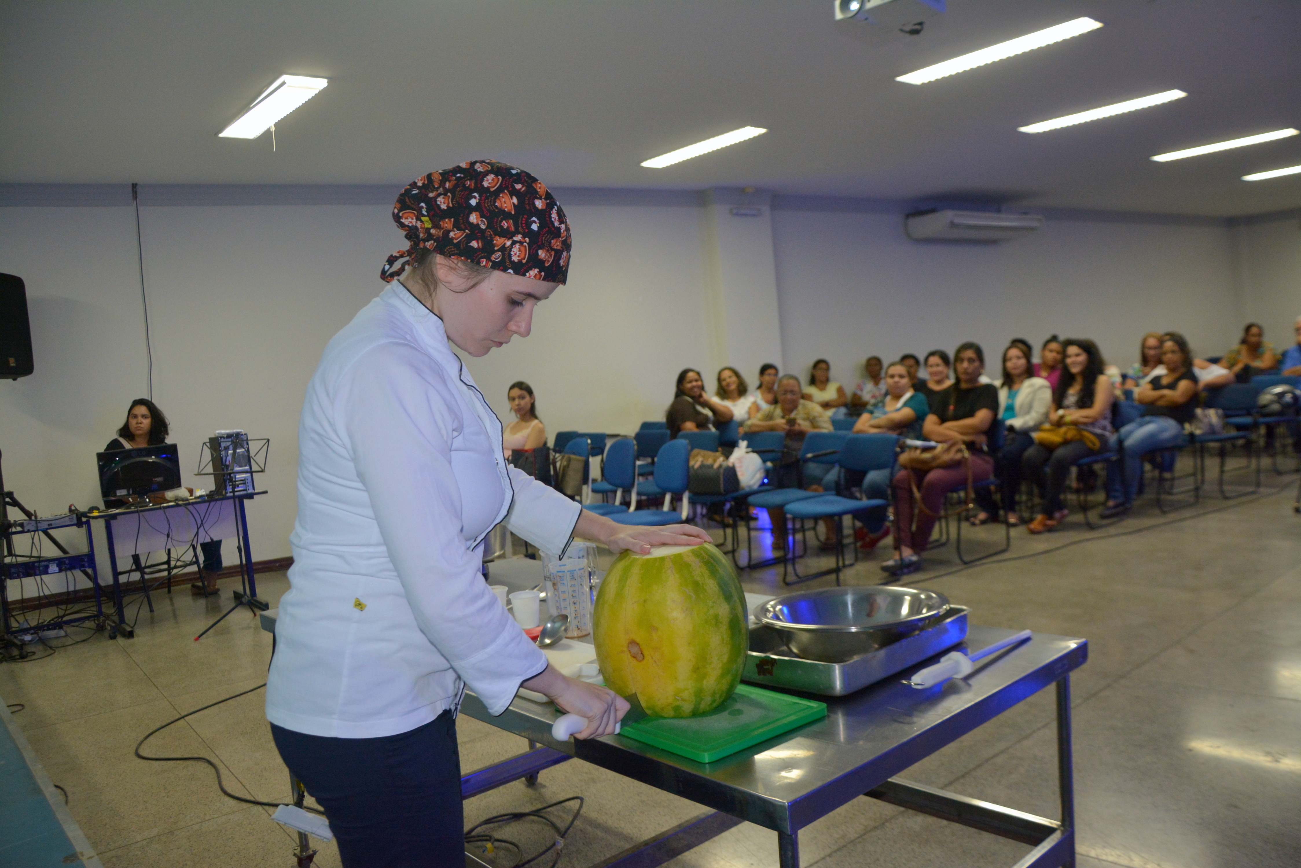 “Nós ensinamos a eles a maneira correta de cortar as frutas de modo a aproveitar o alimento como um todo. Na aula show, demonstramos os cortes com várias frutas e também com a melancia que era uma das dúvidas mais frequentes onde também ensinamos uma nova receita que está no cardápio escolar”, explicou Renata.