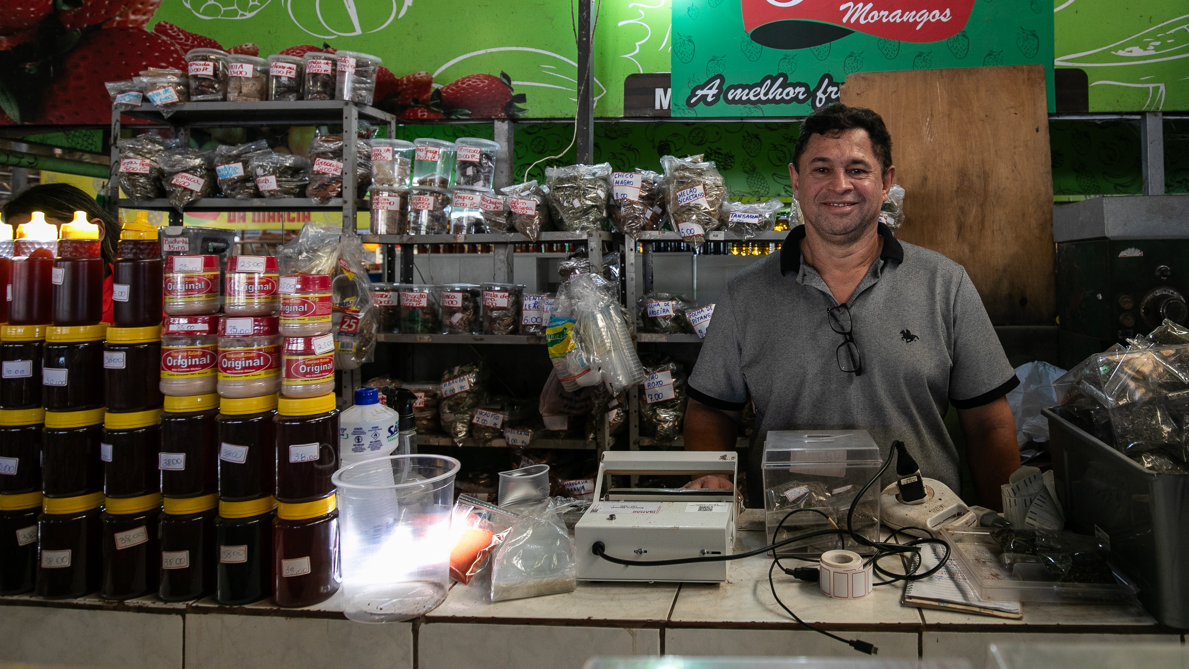 Ele mantém uma banca no Mercado desde 1995, quando a feira ainda funcionava no Museu do Rio. Ele relata que a atual gestão é a única que cumpriu e entregou um novo espaço comercial. Reconhecido pela venda de raízes e ervas medicinais, ele conta que deu início à sua atividade cedo, ao lado de seu pai, e desde então, o conhecimento tem sido repassado de geração em geração.