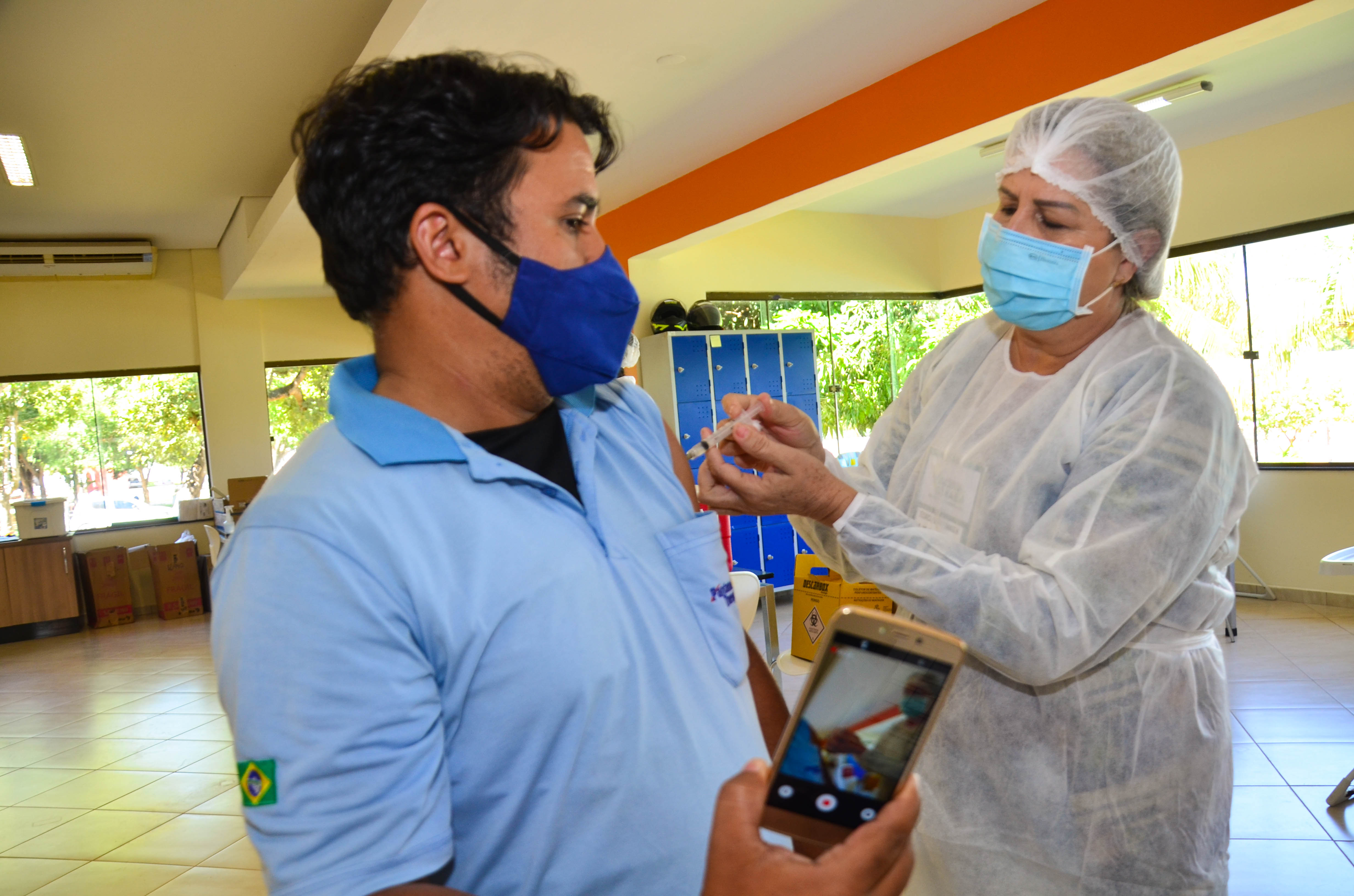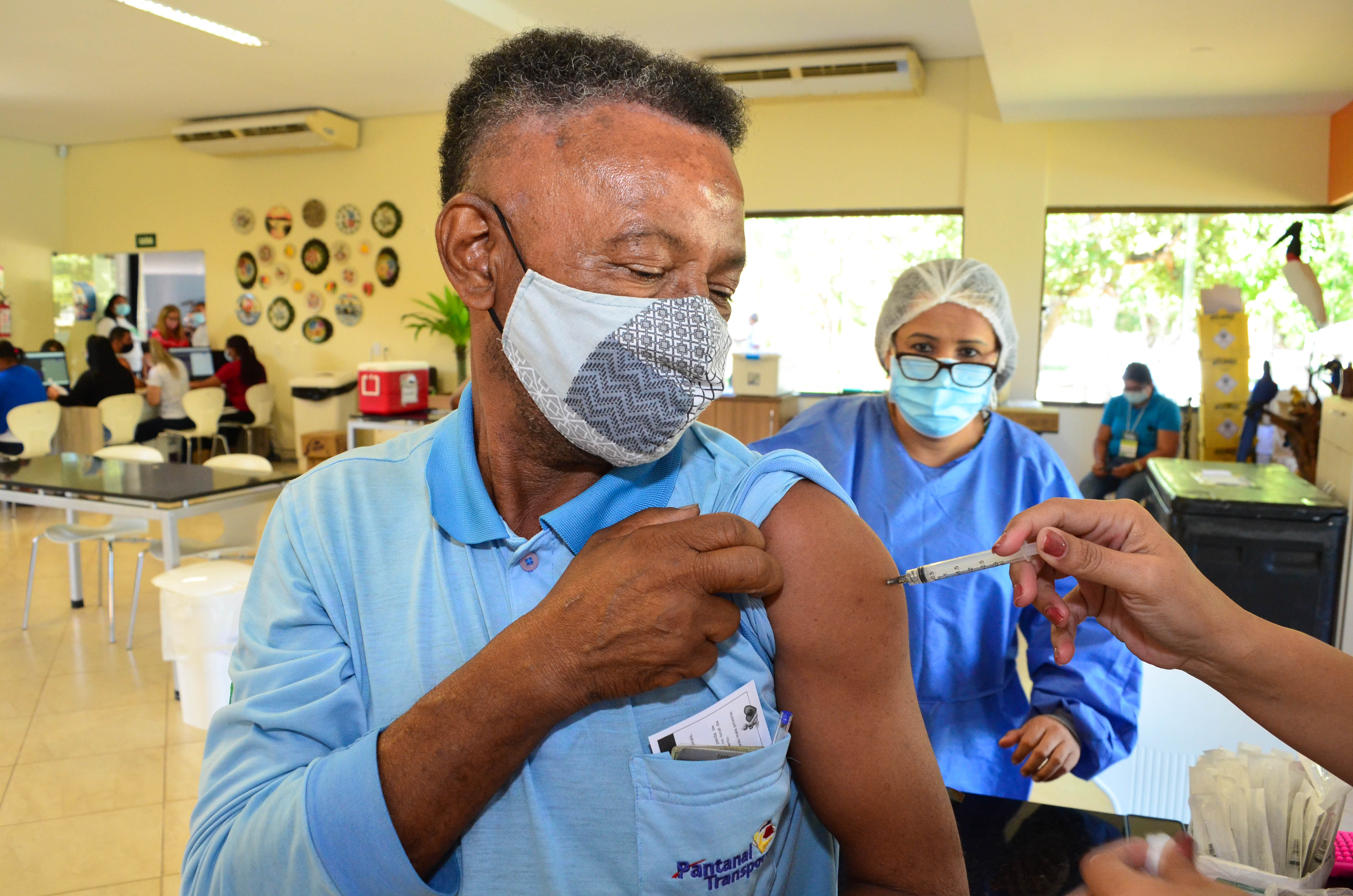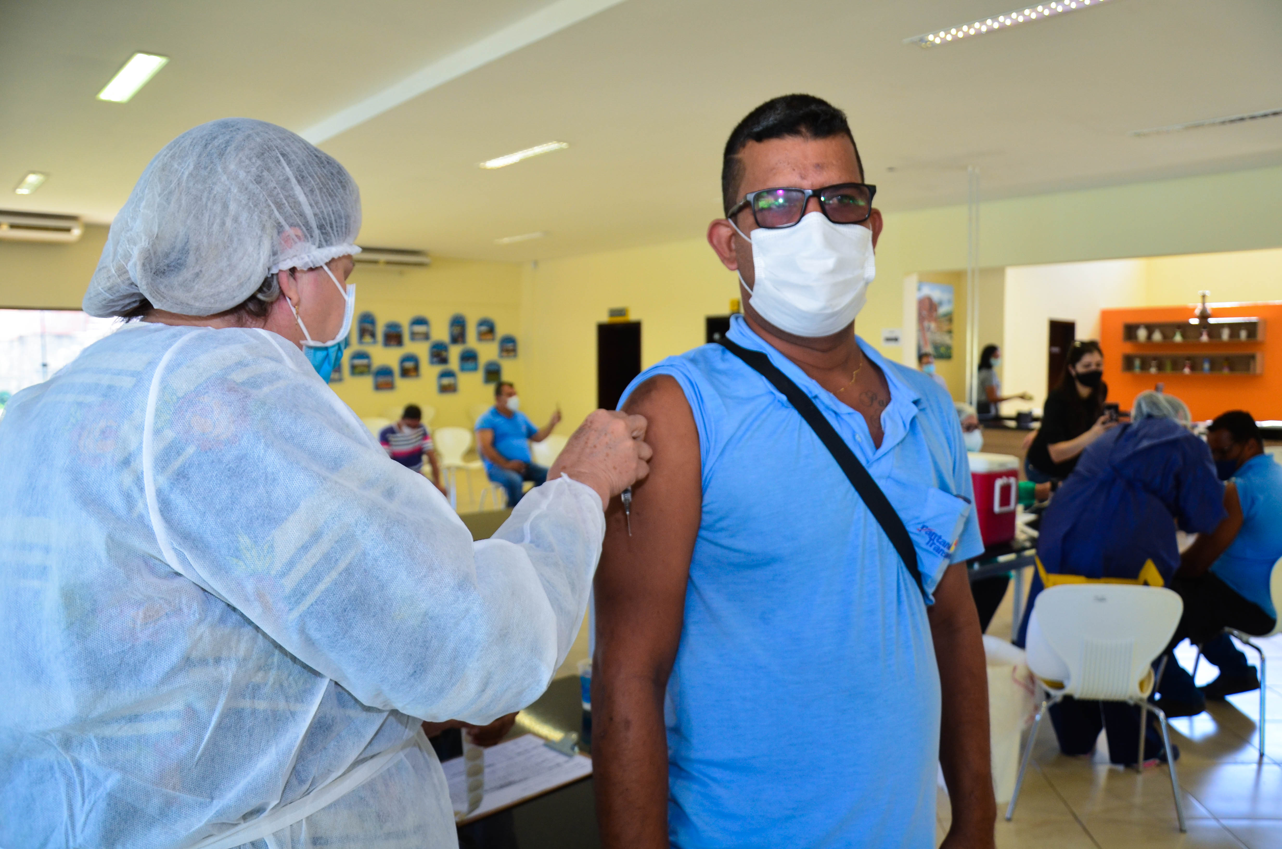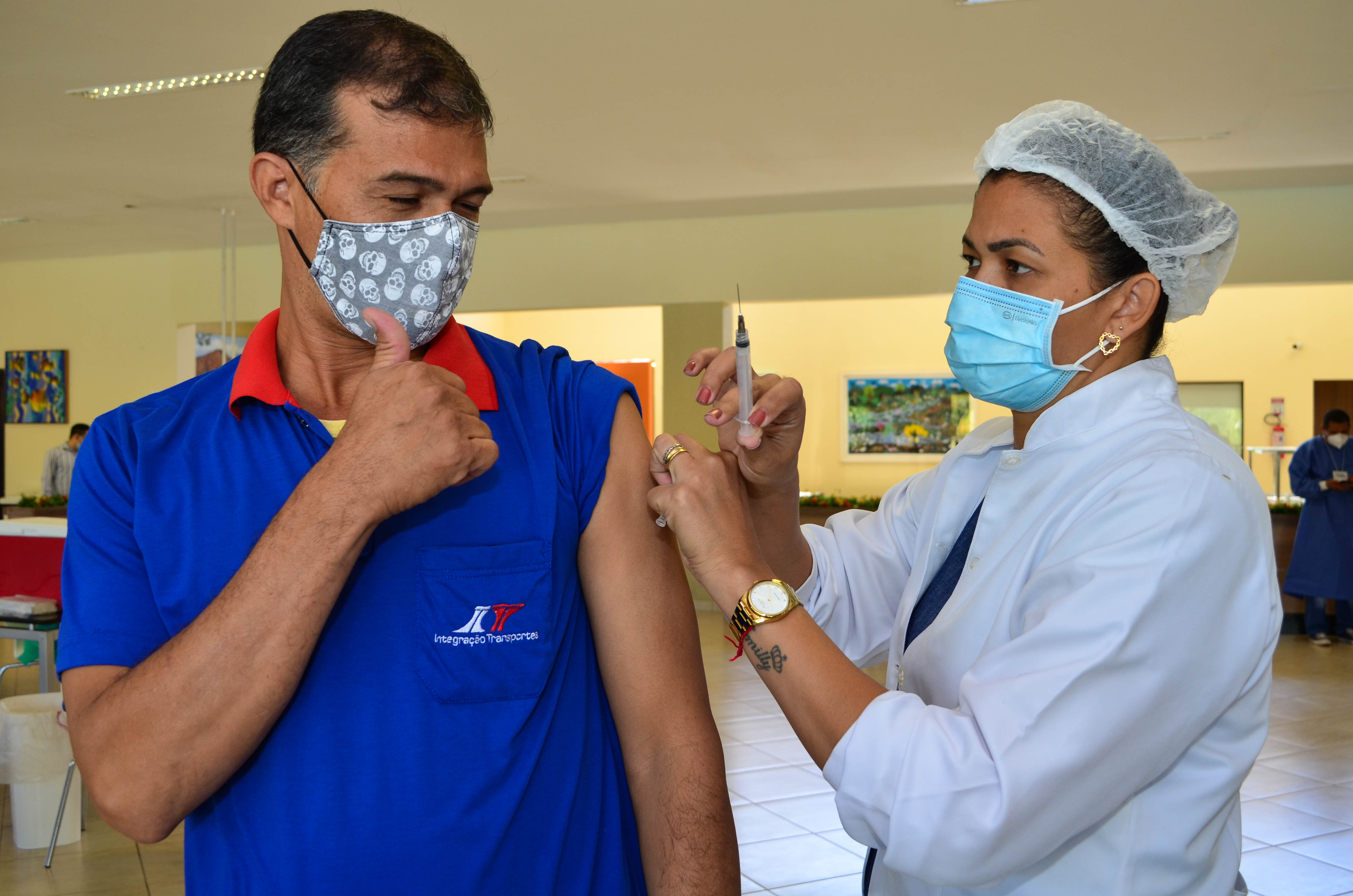 A Prefeitura de Cuiabá, por meio da Secretaria Municipal de Saúde (SMS), começou nesta segunda-feira (10), a imunização dos trabalhadores do transporte coletivo da Capital. A classe que tem em torno de 800 funcionários, está sendo vacinada com a primeira dose da vacina, no Sesc Balneário, localizado na região do bairro Osmar Cabral.