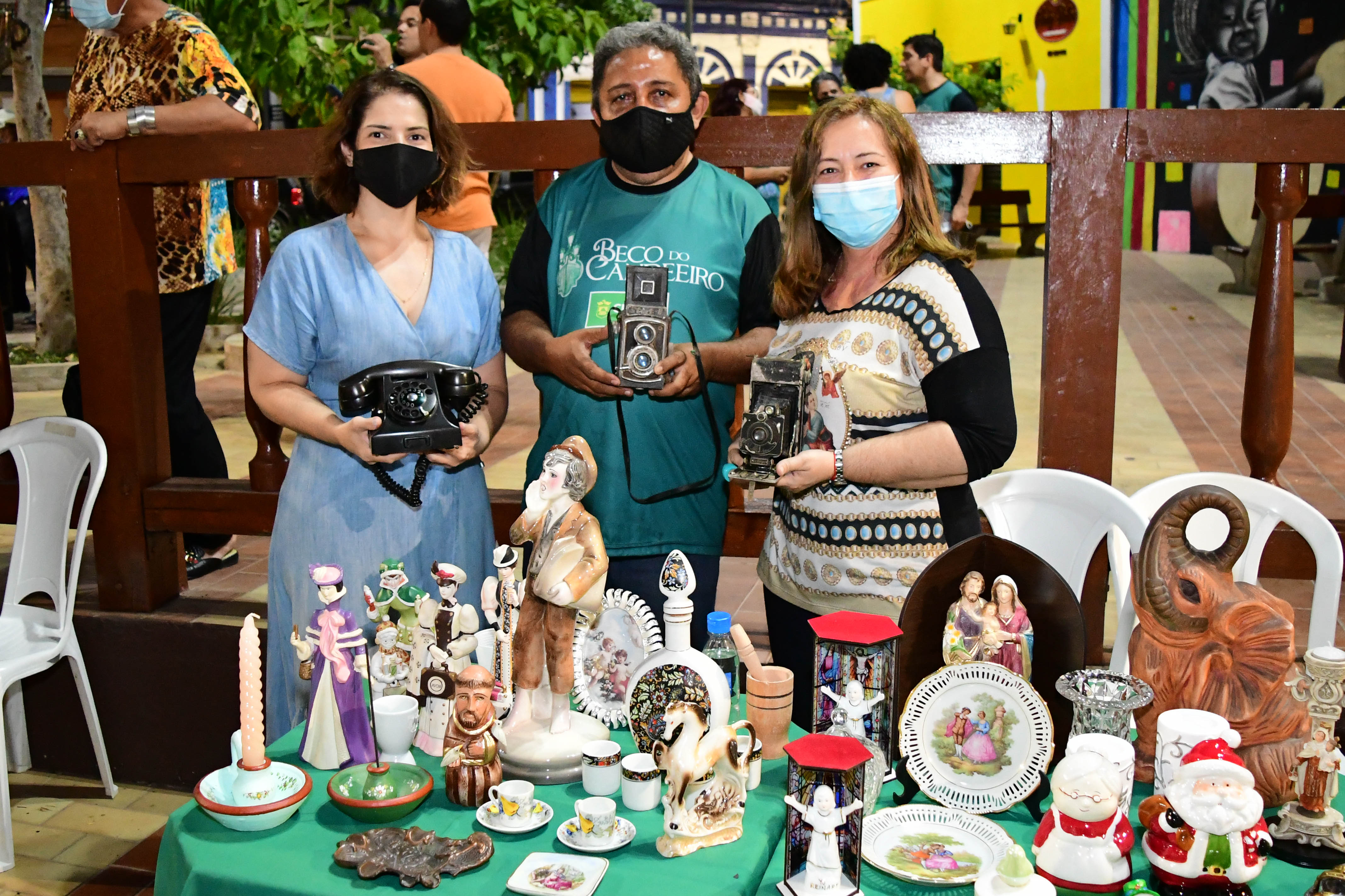 A feirinha além de peças antigas de porcelana, telefones e máquinas fotográficas, reuniu discos de vinil e livros, além da gastronomia com quitutes tradicionais como a paçoca de pilão com bananinha e empadinhas.