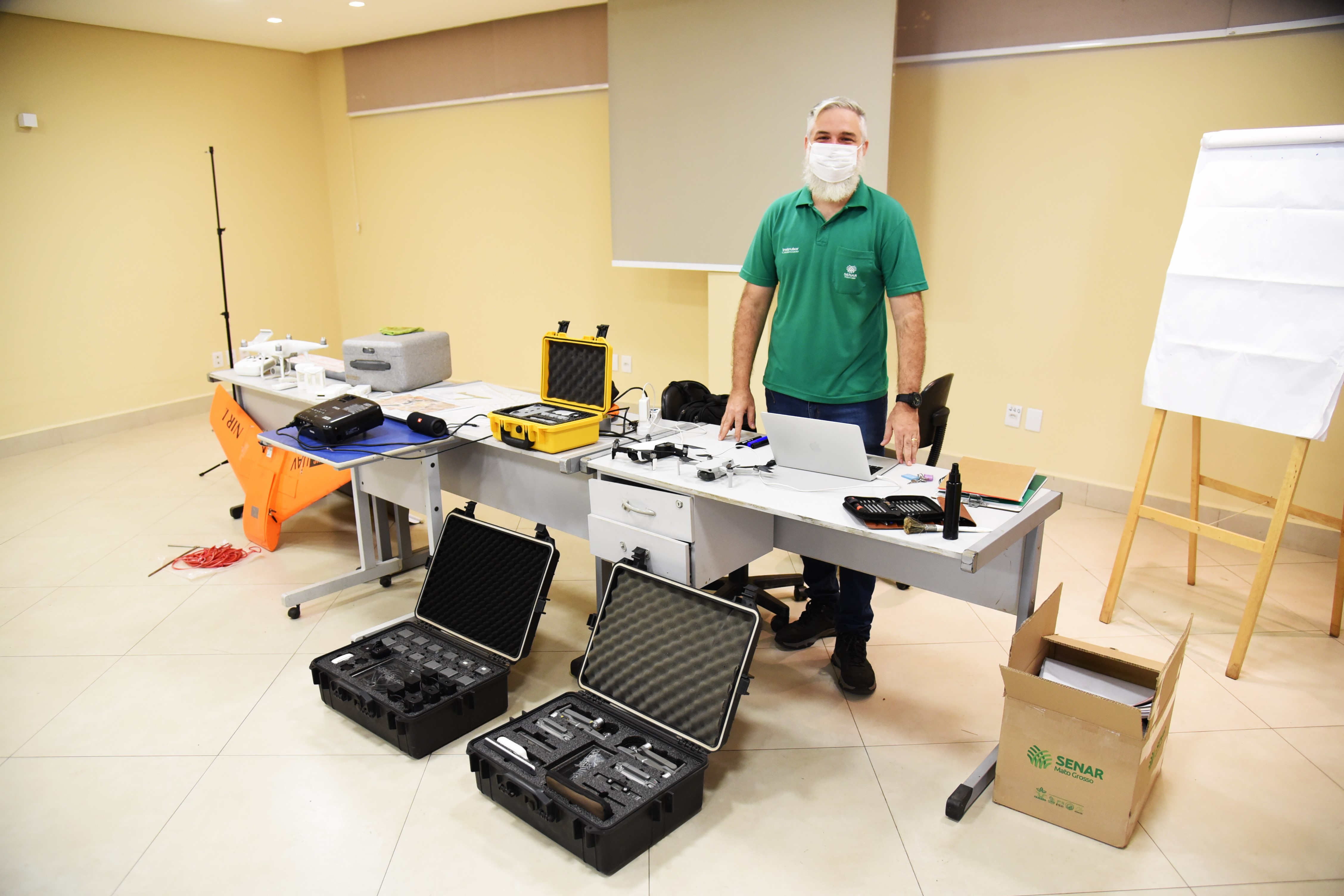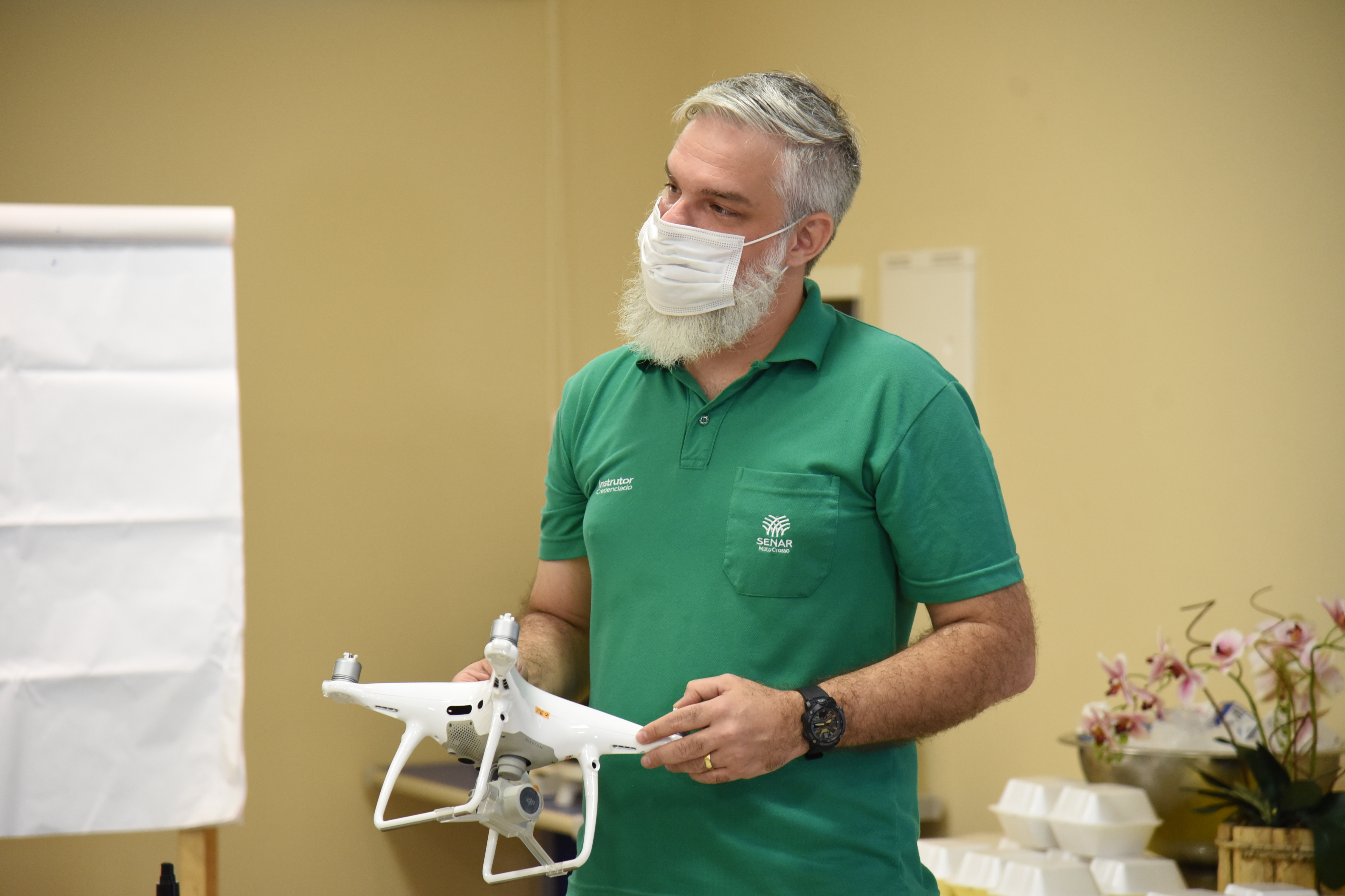 O curso tem carga horário de 24h, 8h por dia e é ministrado pelo instrutor de operação de drone do Senar, Paulo Roberto de Oliveira Filho. Nos três dias de formação, Paulo apresenta aos alunos conceitos de operação, legislação, cuidados com o equipamento, voo manual e automatizado. O curso é composto por aulas teóricas e práticas.