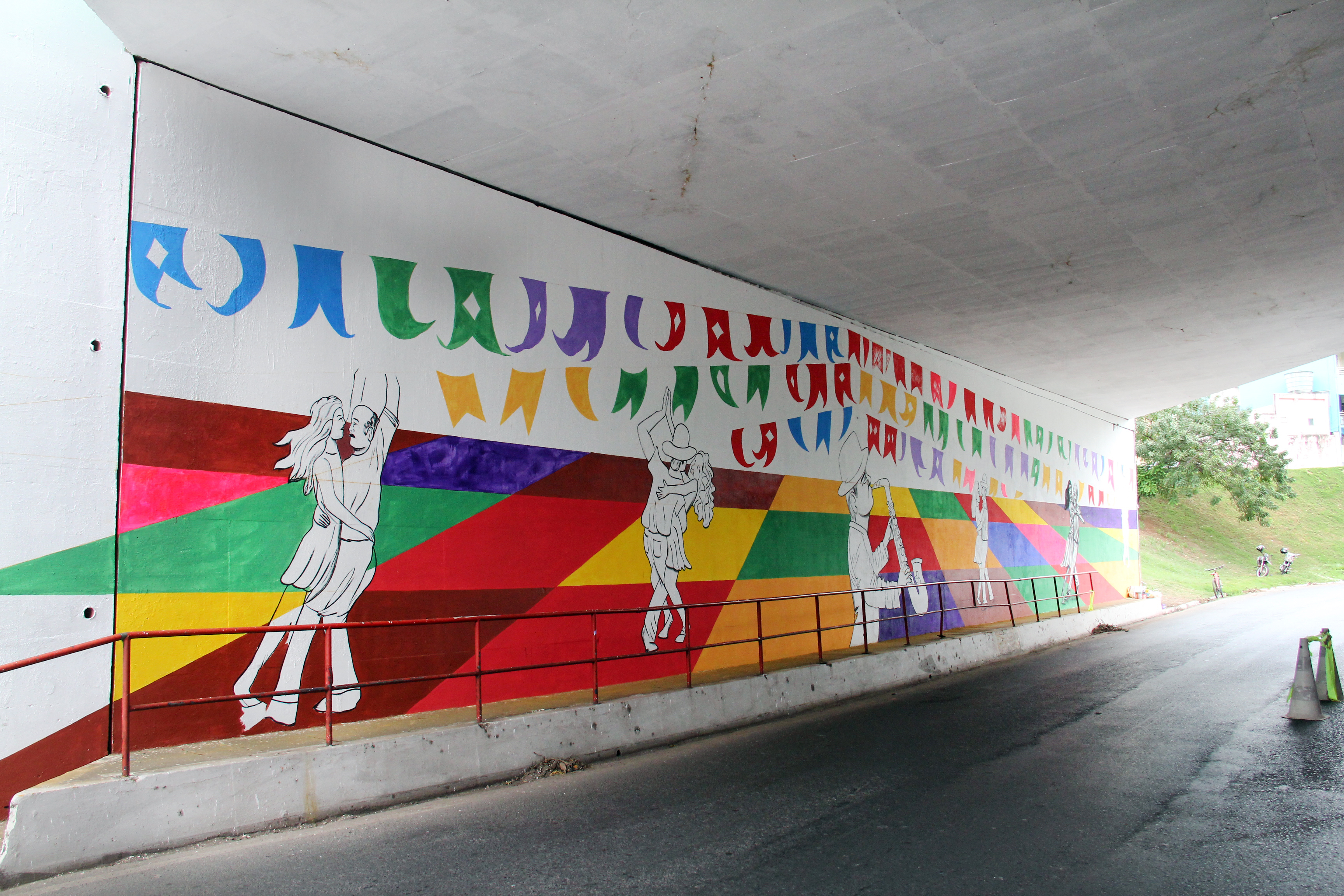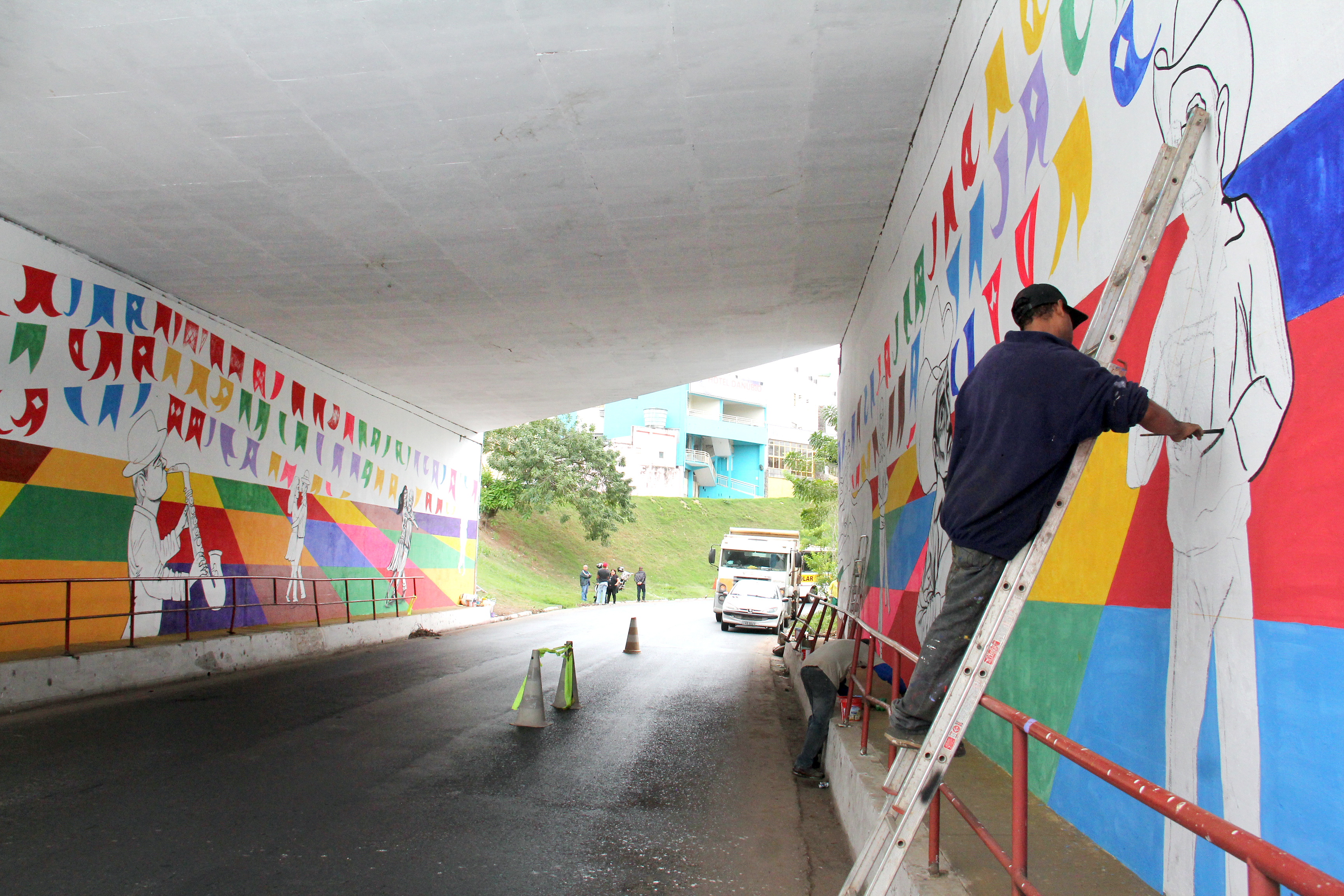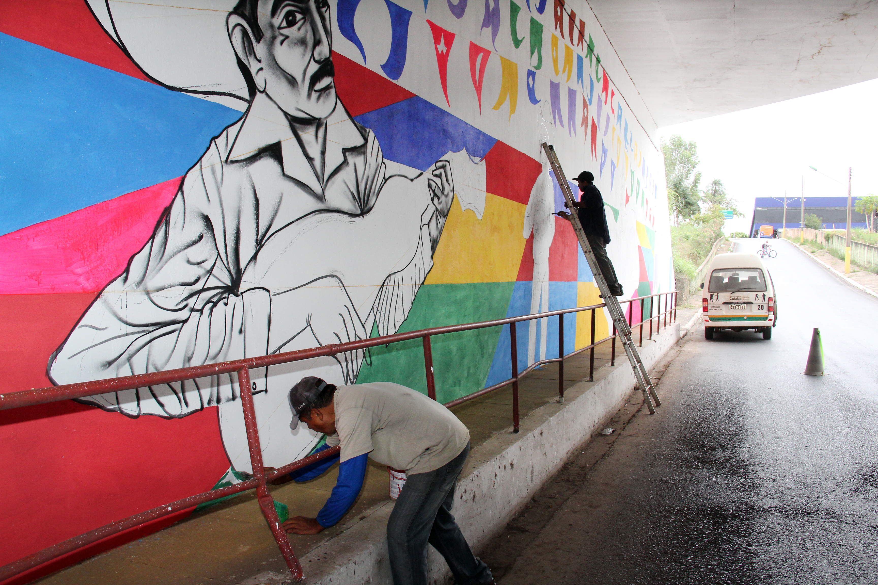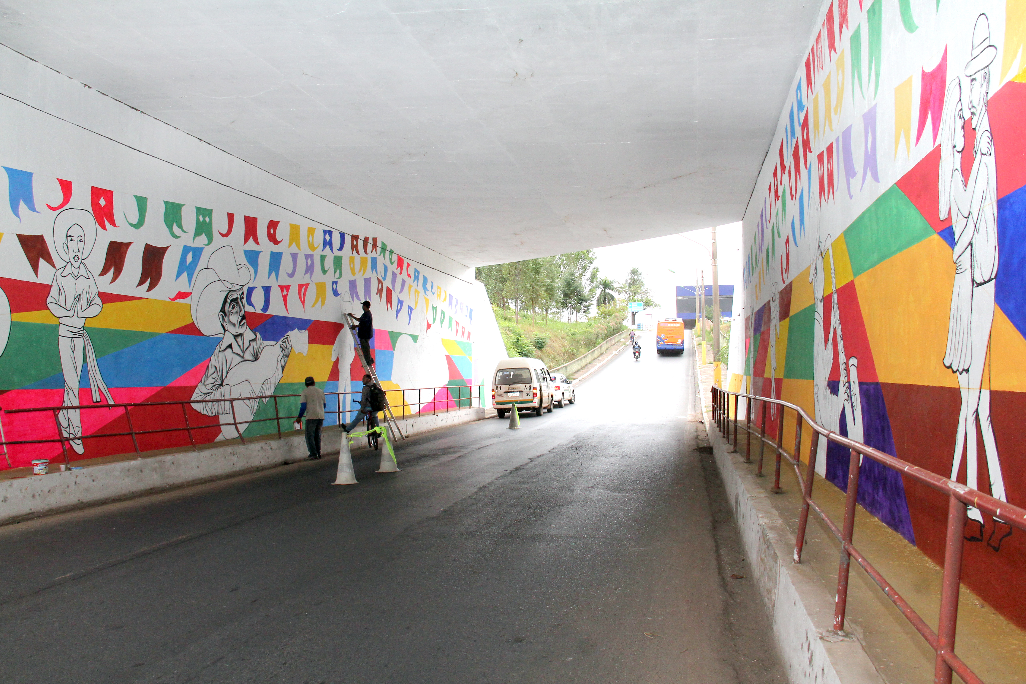 A Prefeitura de Cuiabá por meio do Conselho Municipal de Cultura, em parceria da Secretaria de Serviços Urbanos está restaurando o túnel da rodoviária com o projeto “Tchá Com Bolo Pra Cuiabá”, do artista Régis Gomes, selecionado edital do Fundo Municipal de Apoio e Estímulo à Cultura/2017, da Secretaria de Cultura, Esporte e Turismo.