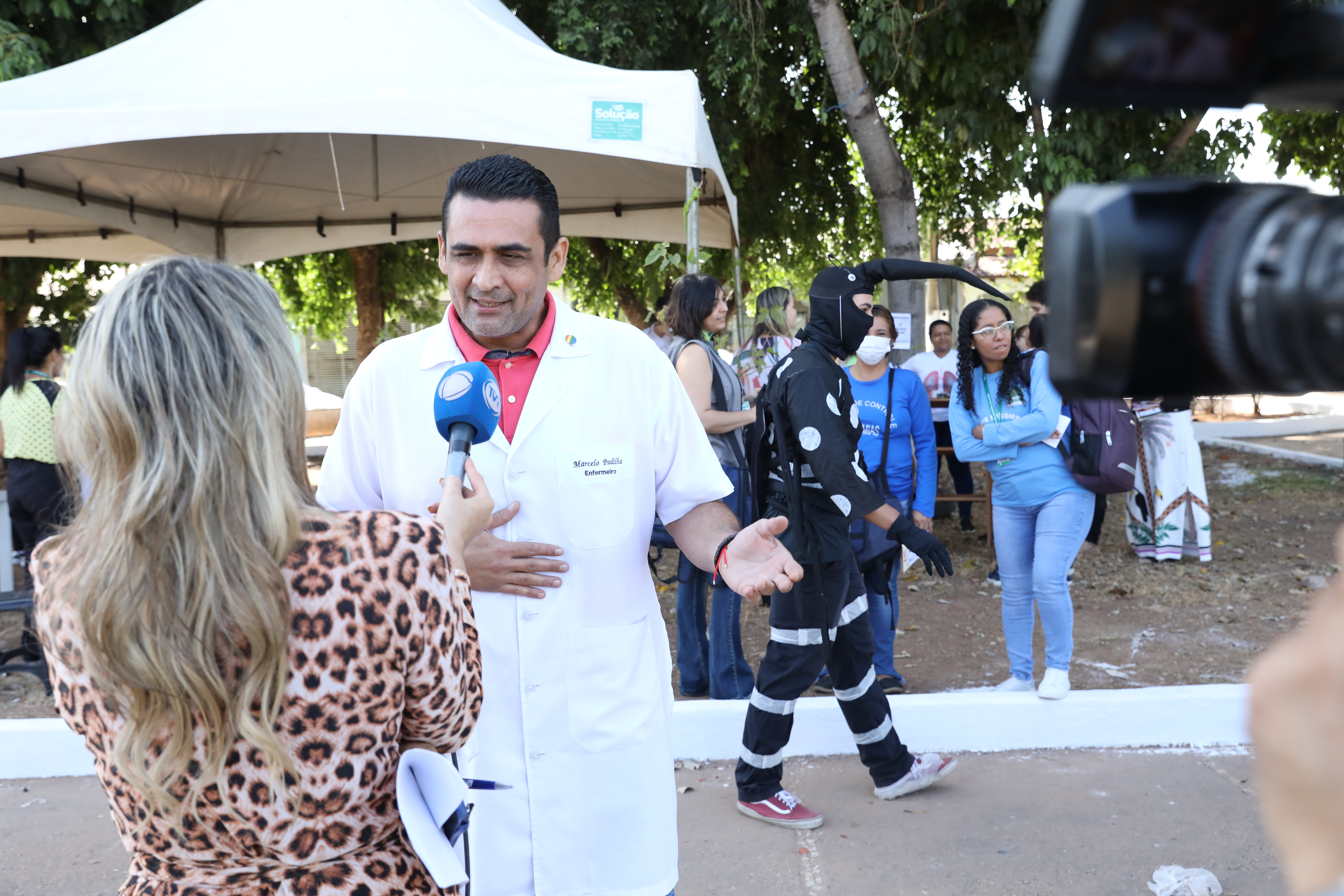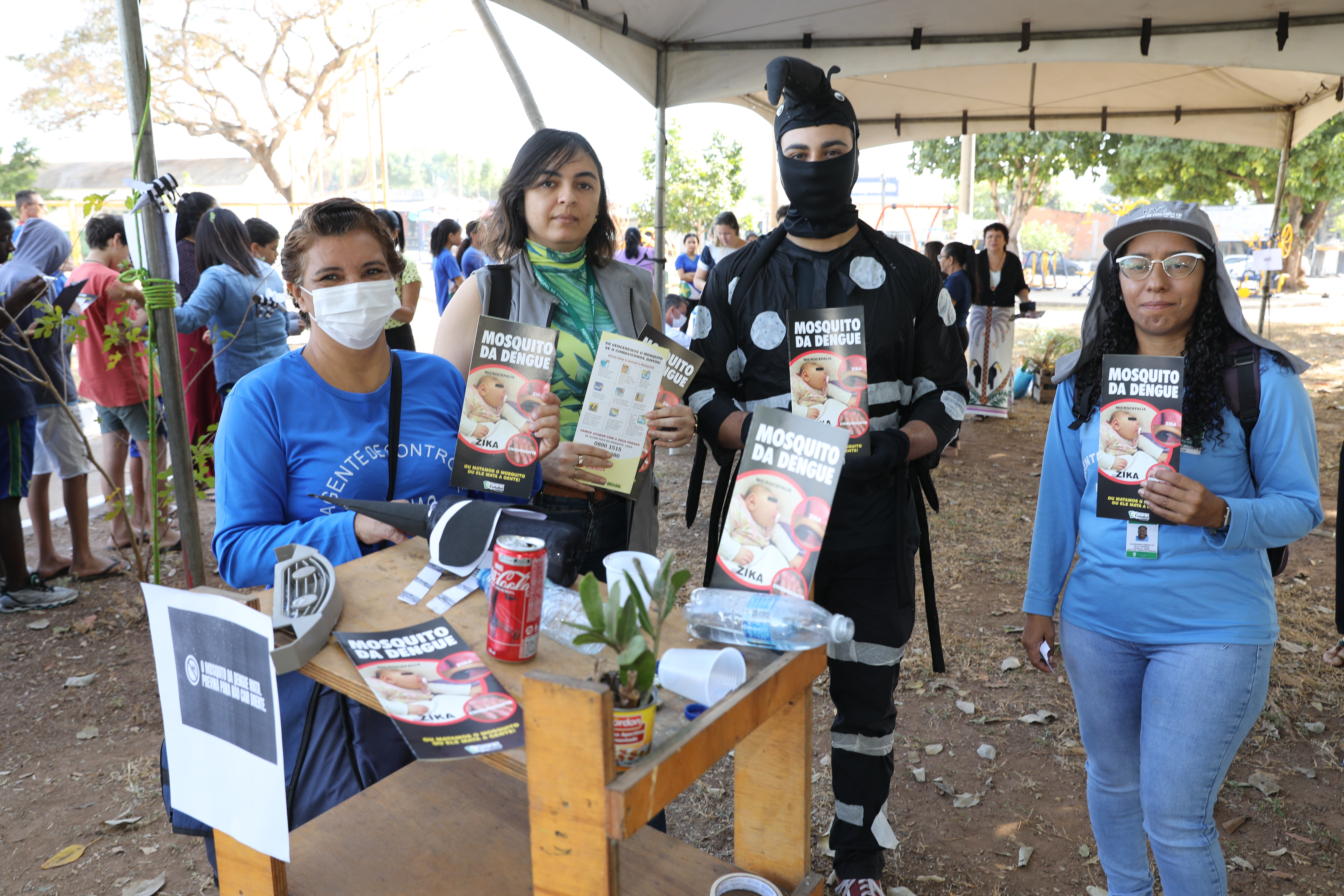 A Secretaria Municipal de Saúde de Cuiabá (SMS), por meio da equipe da UBS do Cidade Verde, realizou na manhã de sexta-feira (28), na Praça Central do bairro, uma grande ação de orientação e conscientização sobre os cuidados e medidas a serem tomados em relação ao mosquito da dengue. Apesar do aumento nos casos notificados e da baixa cobertura vacinal, que hoje é de apenas 7,6%, com 3.449 doses aplicadas, não há motivo para preocupação. Diante disso, as unidades que compõem a Superintendência da Atenção Primária têm intensificado as ações para conscientizar a população sobre os cuidados necessários para evitar a proliferação do mosquito.