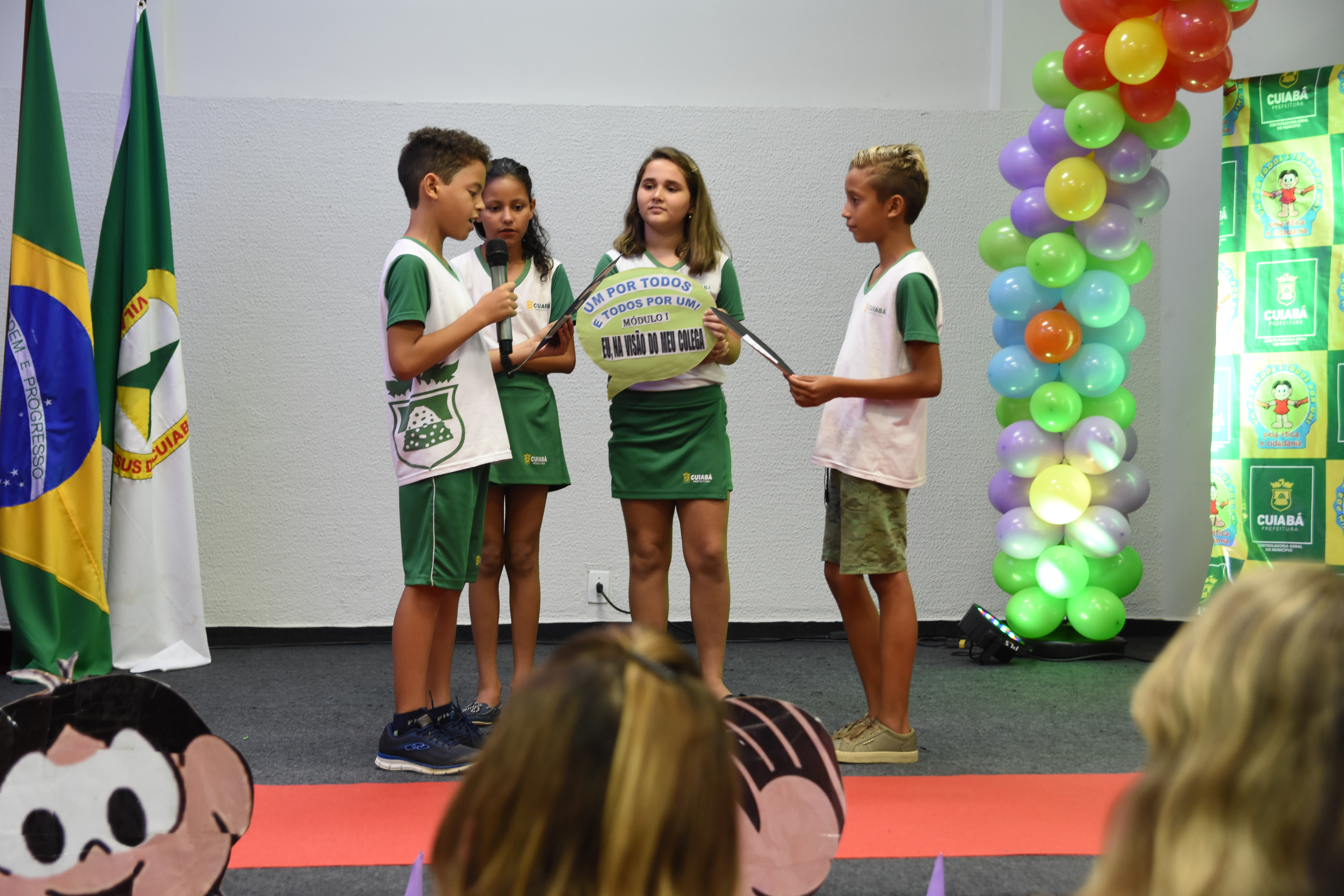 O Auditório Maestro China da Secretaria de Educação de Cuiabá teve lotação máxima para a festa de fechamento da edição 2019 do programa “Um Por Todos e Todos Por Um”. Coordenado pela Controladoria Geral do Município, o programa tem o apoio da Secretaria Municipal de Educação e, somente neste ano, atendeu 2.344 alunos de 27 escolas municipais de Cuiabá. Somando todas as edições, desde 2014, quando foi implantado, foram alcançadas cerca de 17 mil crianças.