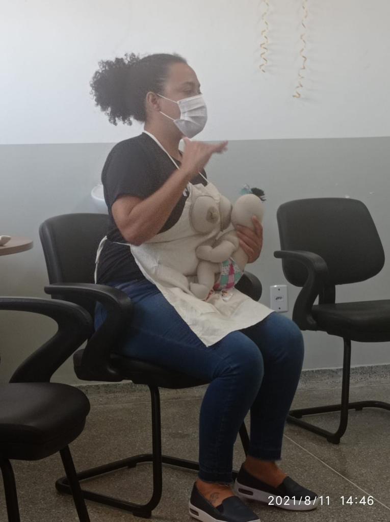 Na UBS do Residencial Ilza Terezinha Picolli Pagot, 75 mulheres grávidas ou puérperas fazem acompanhamento médico e foram contempladas com palestra e oficina com a enfermeira e consultora em amamentação Isadora Ribeiro. Mais do que teoria, a profissional partiu para a prática com as pacientes que participaram e puderam ter a oportunidade de treinar a técnica da amamentação, através de um avental com seios e uma boneca de pano, que simulava o bebê.
