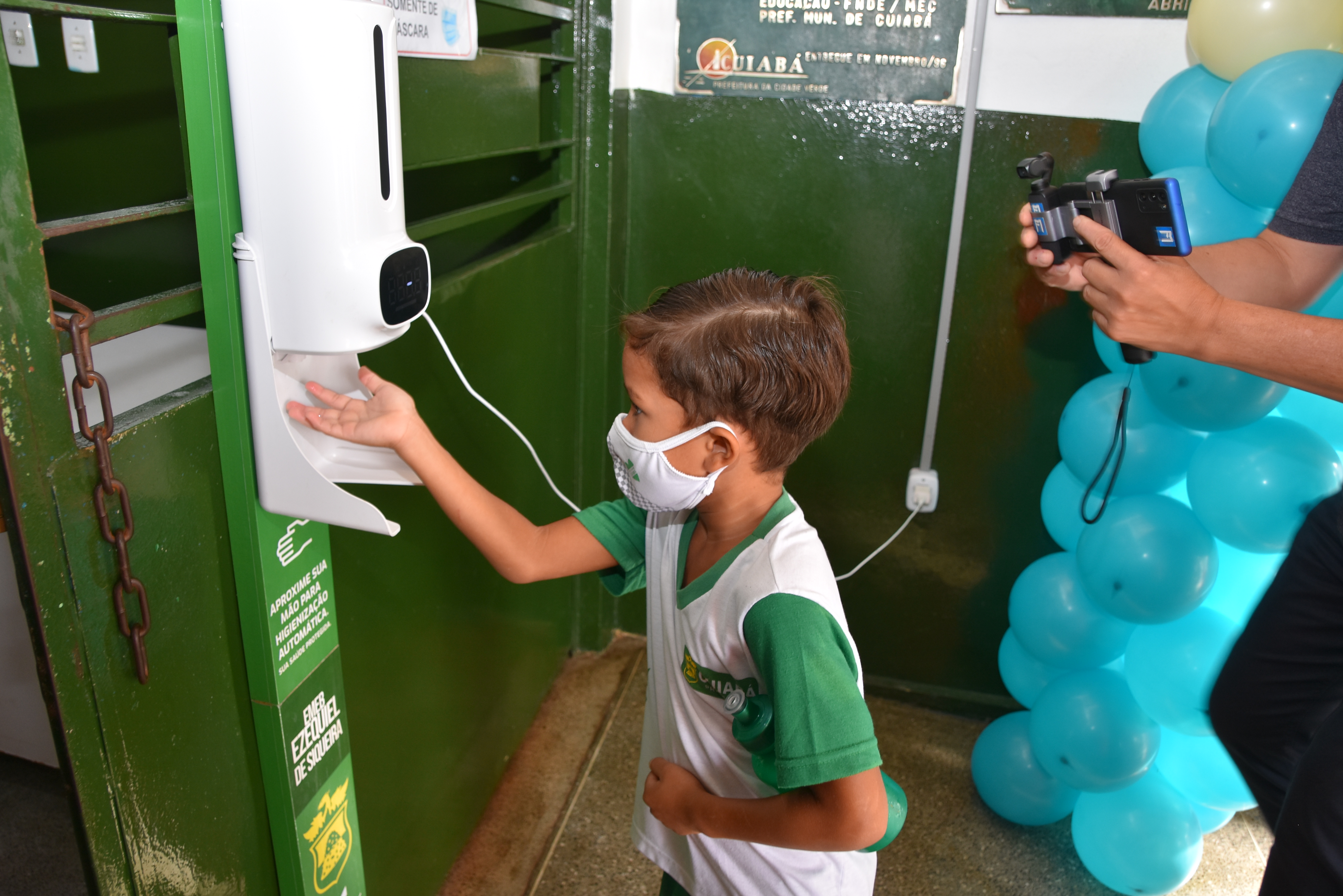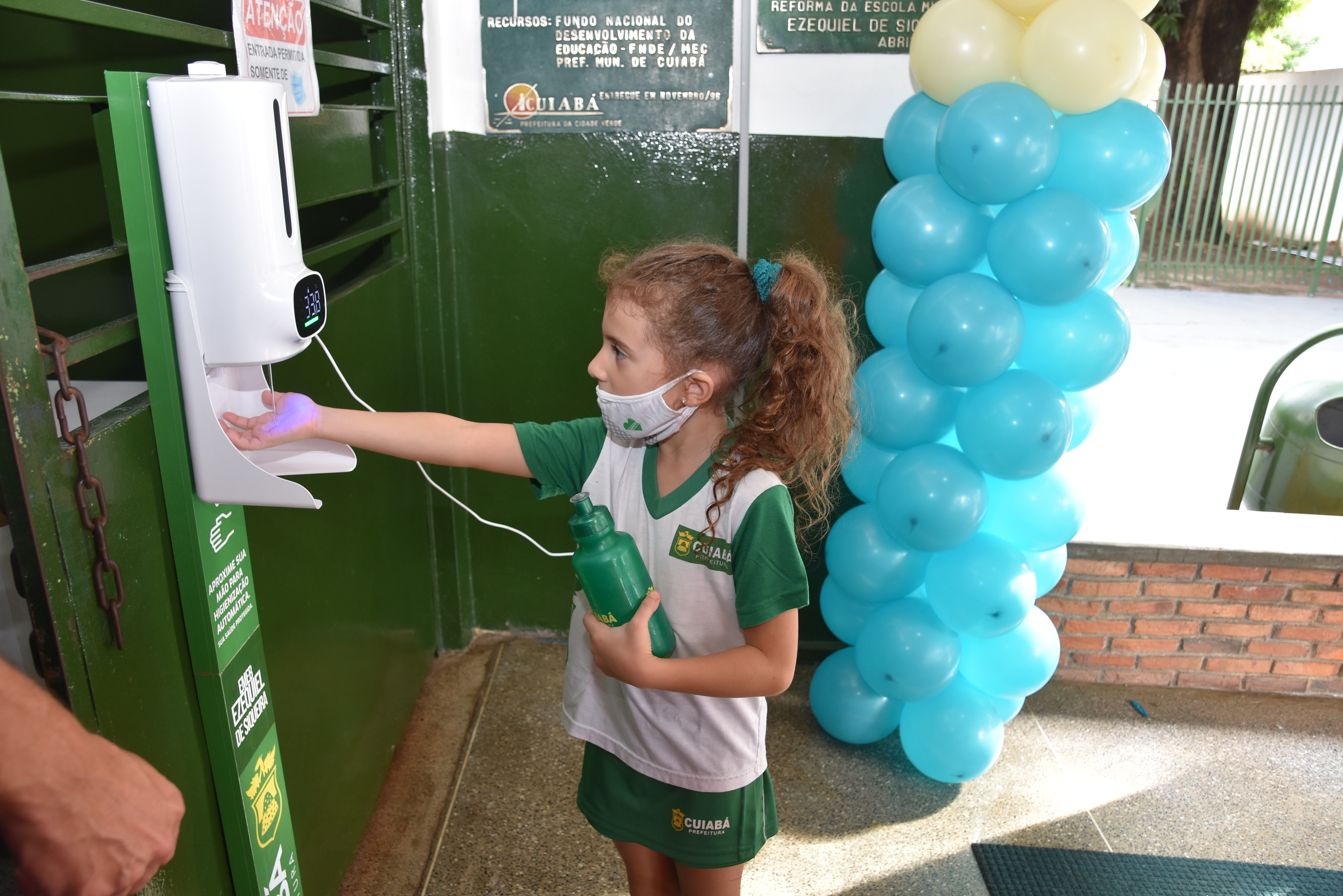Na Escola Cívico Militar Cuiabana (ECIMC) Profª. Maria Dimpina Lobo Duarte, no bairro Coxipó, com cerca de 400 estudantes, a movimentação começou cedo. Os estudantes chegaram acompanhados pelos pais e foram encaminhados para o ginásio onde foi feita a acolhida. Na unidade, assim como nas demais da rede pública municipal, os pais ou responsáveis deixam os filhos no portão, é verificada a temperatura e todos utilizam máscaras.